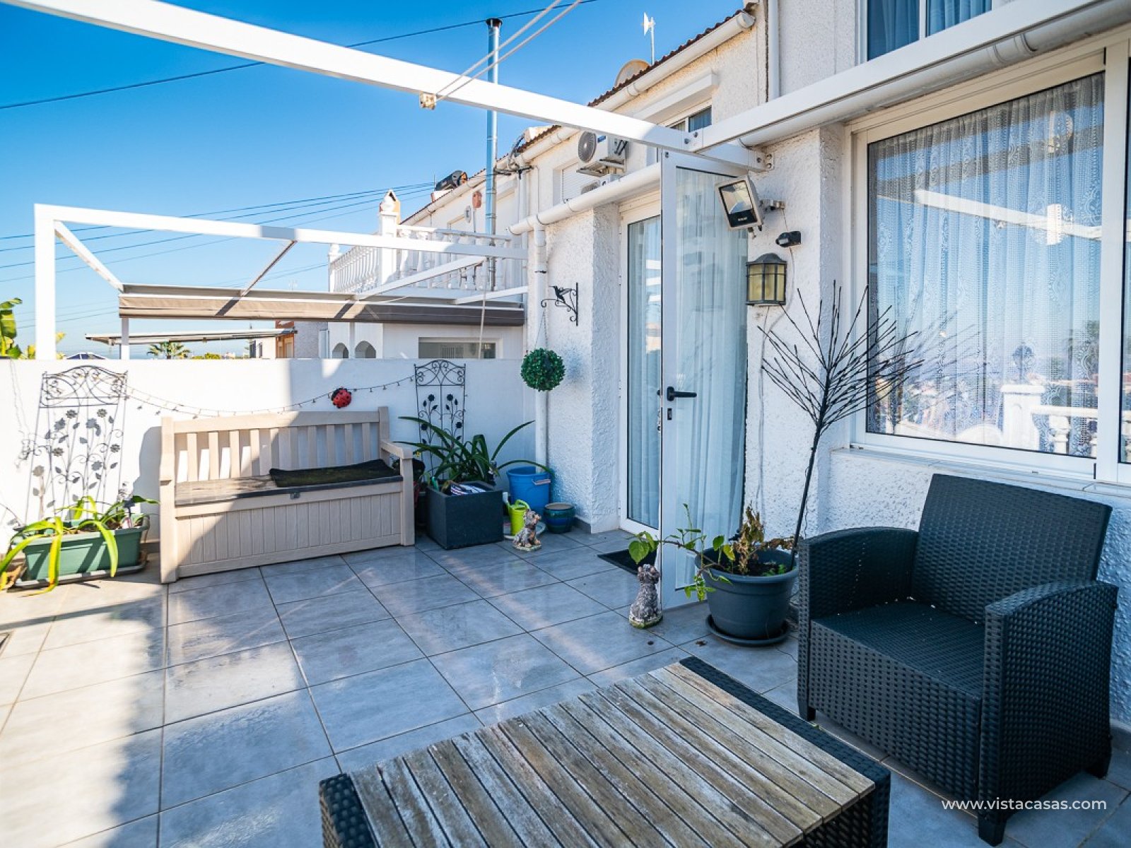 Te koop: Charmante rijwoning in Los Balcones (Torrevieja) Deze verzorgde rijwoning is gelegen in het gewilde Los Balcones, een residentiële wijk die deel uitmaakt van Torrevieja (Alicante), op slechts maximaal 3 km van de kust. De woning biedt een ideale combinatie van ruimte, comfort en een rustige woonomgeving met alle nutsvoorzieningen in de nabije omgeving. Indeling & kenmerken 3 slaapkamers – ruim opgezet en perfect voor gezinnen of als tweede verblijf. 2 badkamers – comfortabel en praktisch, waardoor ochtendspits geen probleem is. Ruime living – lichte en open woonkamer, ideaal voor ontspanning en gasten. Volledig uitgeruste keuken – voldoende bergruimte en functionaliteit. Voor- en achtertuin – privé buitenruimtes om te genieten van de zon, buiten eten of ontspannen. Parkeermogelijkheid – vaak beschikbaar binnen de woonwijk (afhankelijk van specifieke kavel). Locatie Los Balcones – Torrevieja: een rustige en residentiële buurt met goede infrastructuur. Max. 3 km van de kust: snelle toegang tot stranden, boulevard en recreatie. Alle nutsvoorzieningen in de buurt: Supermarkten en winkels Restaurants en cafés Scholen en gezondheidszorg Openbaar vervoer Waarom deze woning? ✔ Perfect als gezinswoning, vakantiehuis of investering ✔ Rustige woonomgeving met toch uitstekende bereikbaarheid ✔ Buitenruimte voor en achter – zeldzame plus in residentiële segment ✔ Dicht bij kust en voorzieningen