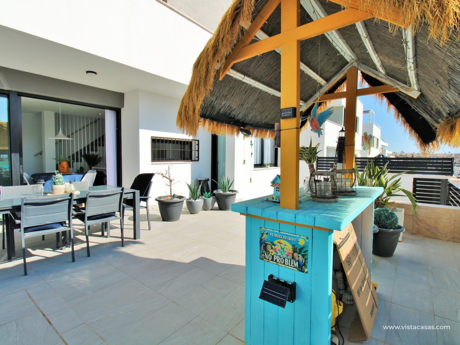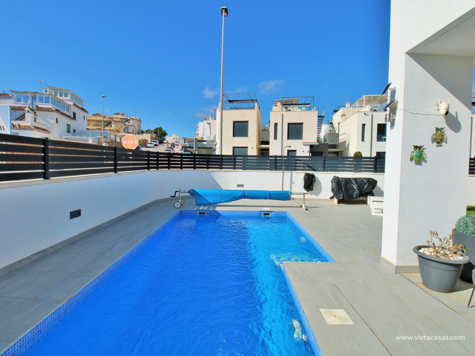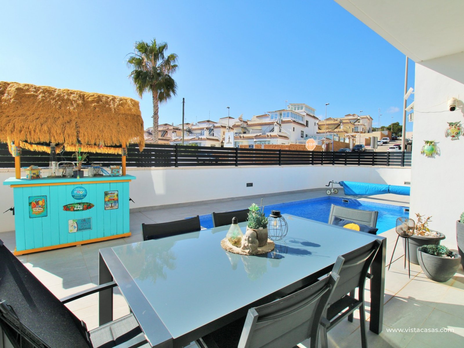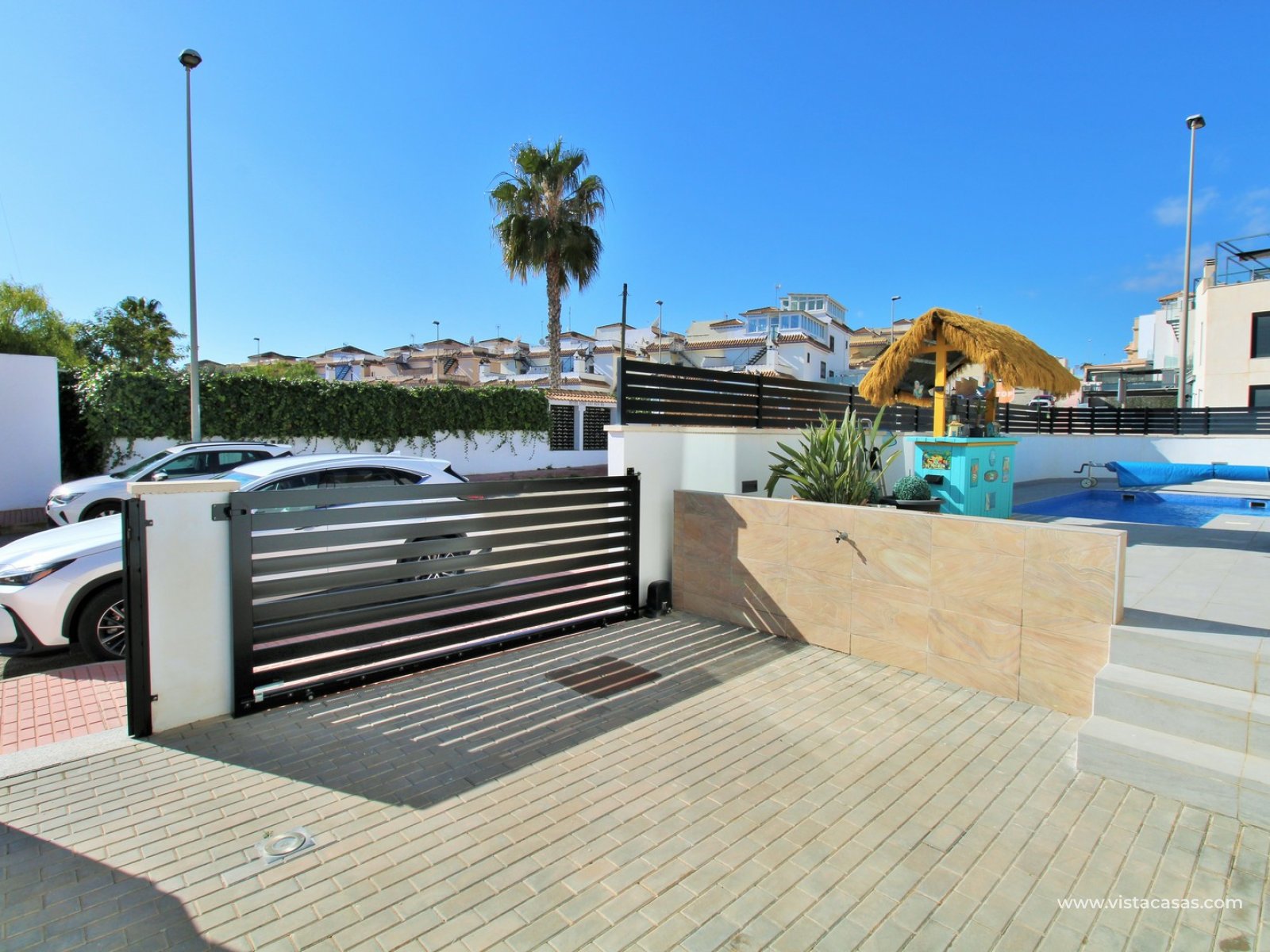 Ta pięknie prezentująca się willa wolnostojąca z 3 sypialniami i 2 łazienkami, zwrócona w stronę południową, w Villamartin, oferuje idealne połączenie nowoczesnego komfortu i życia na świeżym powietrzu. Nieruchomość położona na dużej działce narożnej, posiada prywatny basen, parking, balkon i przestronne solarium na dachu z panoramicznym widokiem na słone jeziora Torrevieja. Dzięki idealnemu położeniu willa cieszy się słońcem przez cały dzień.
