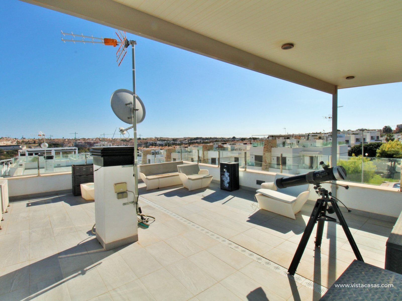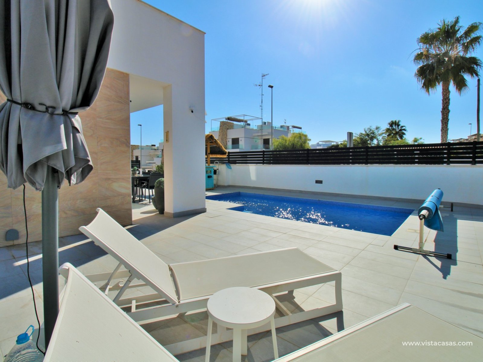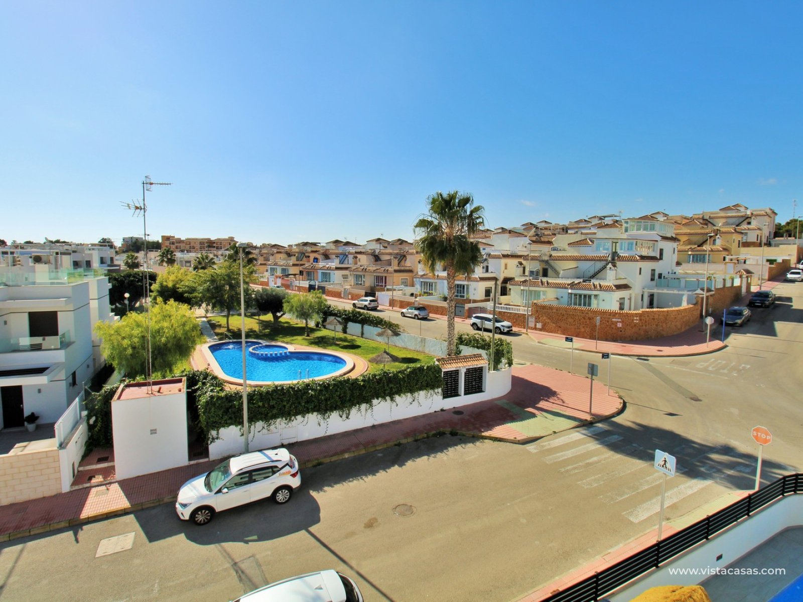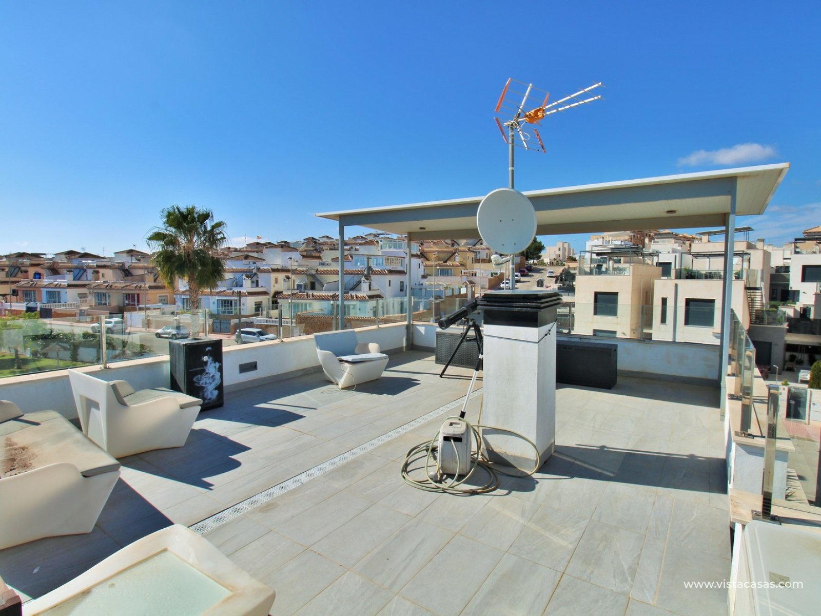 Ta pięknie prezentująca się willa wolnostojąca z 3 sypialniami i 2 łazienkami, zwrócona w stronę południową, w Villamartin, oferuje idealne połączenie nowoczesnego komfortu i życia na świeżym powietrzu. Nieruchomość położona na dużej działce narożnej, posiada prywatny basen, parking, balkon i przestronne solarium na dachu z panoramicznym widokiem na słone jeziora Torrevieja. Dzięki idealnemu położeniu willa cieszy się słońcem przez cały dzień.
