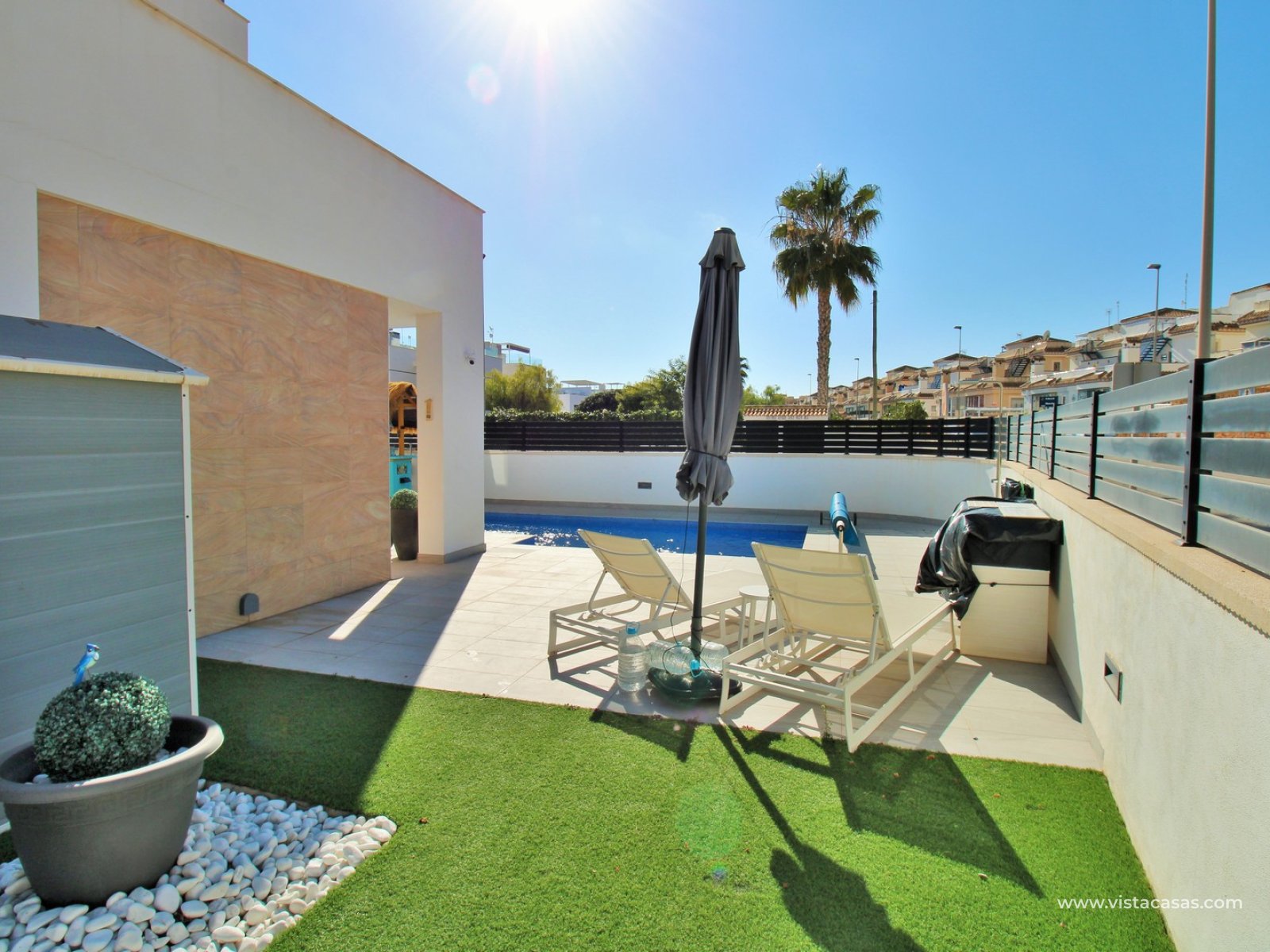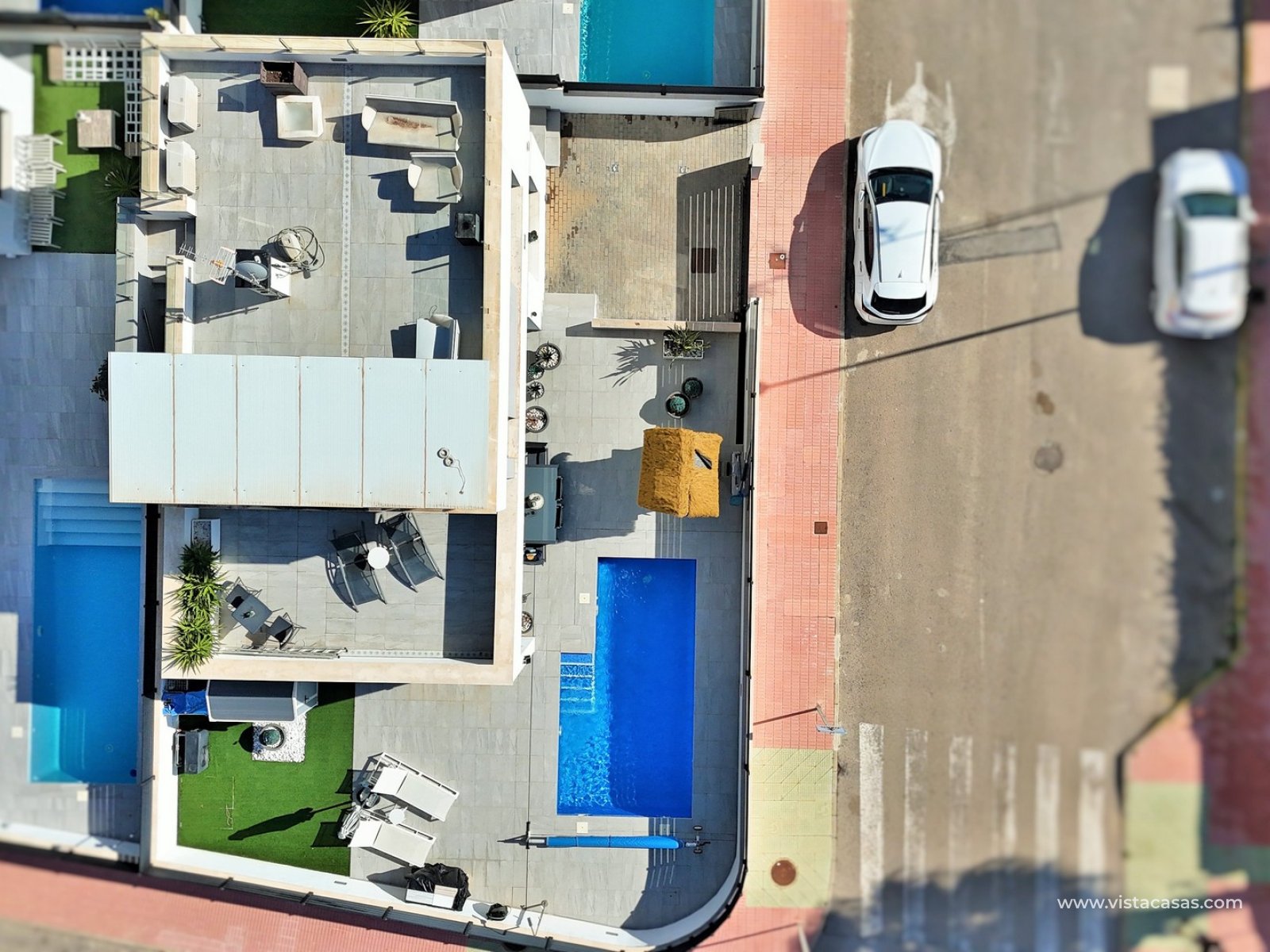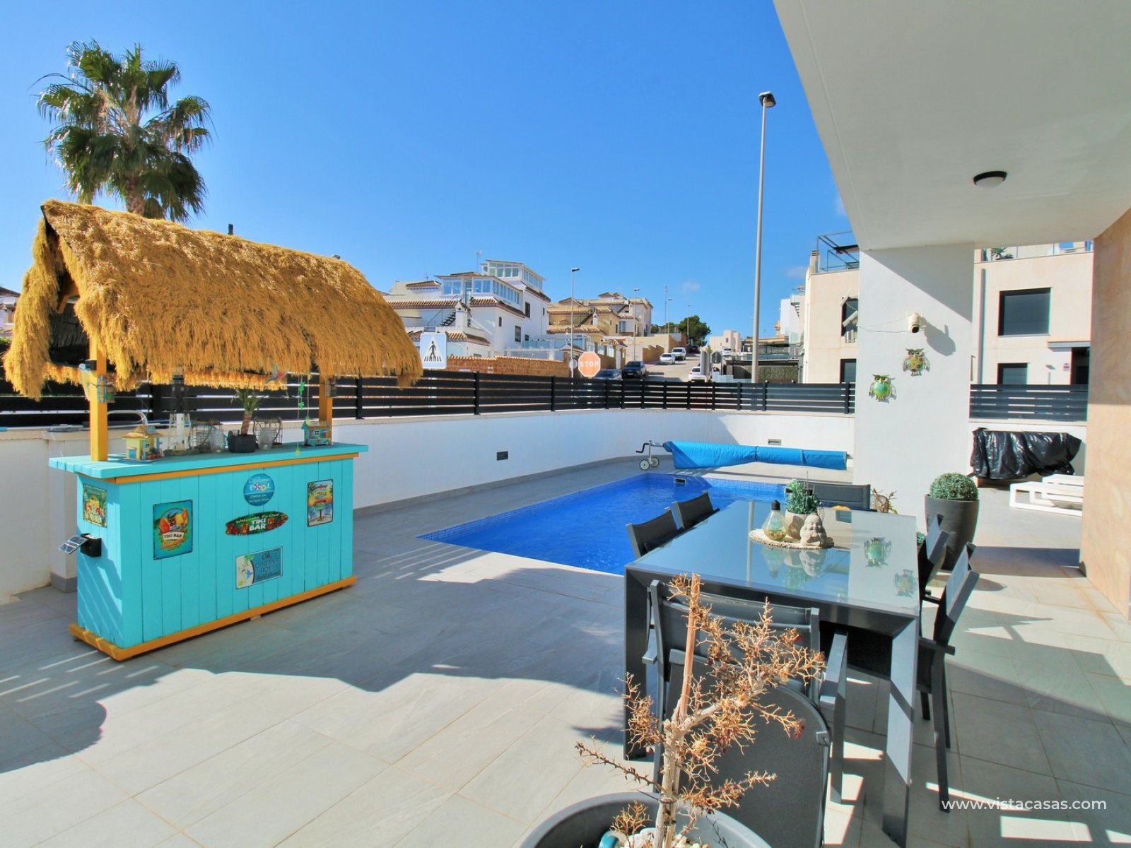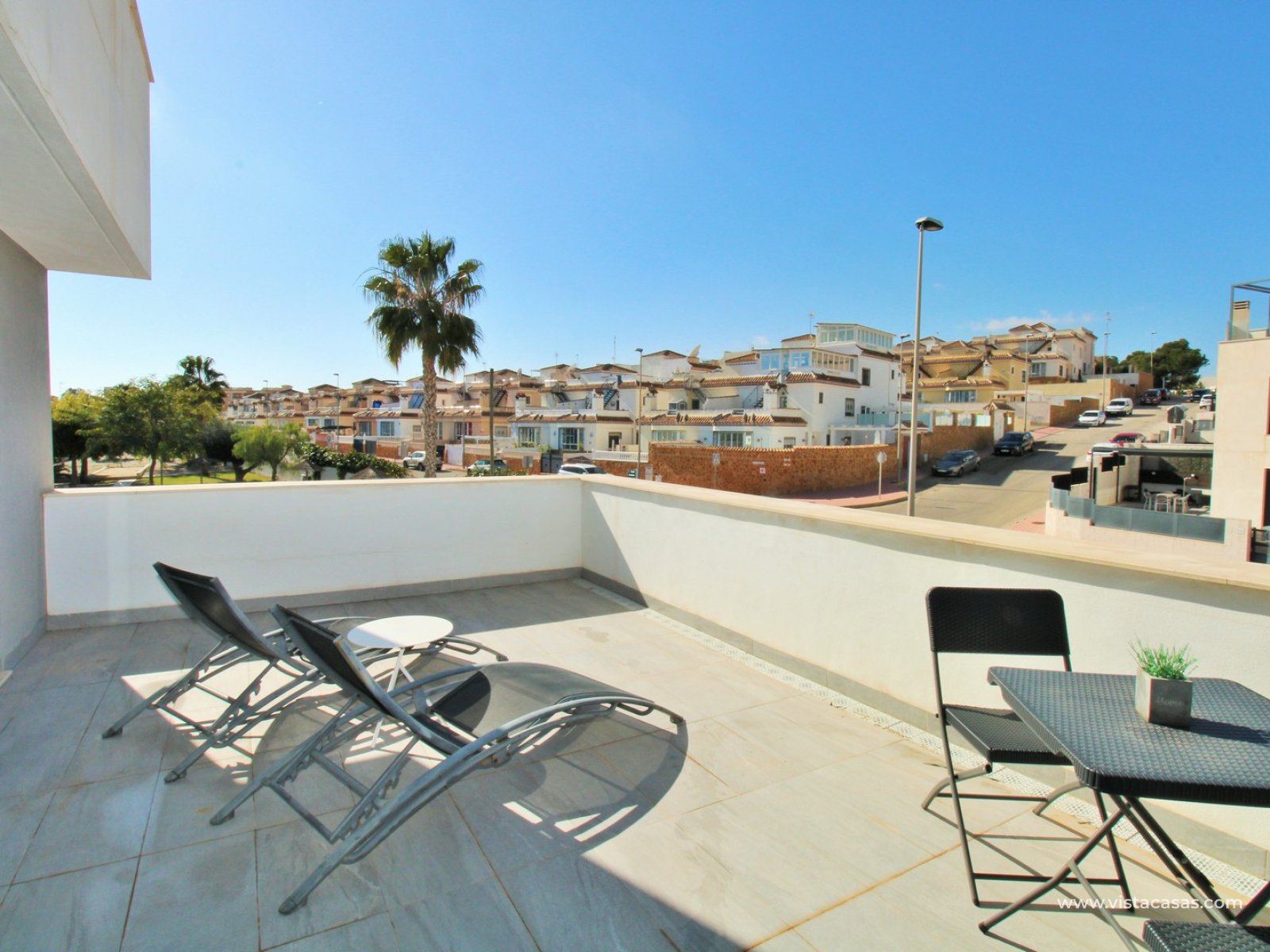 Ta pięknie prezentująca się willa wolnostojąca z 3 sypialniami i 2 łazienkami, zwrócona w stronę południową, w Villamartin, oferuje idealne połączenie nowoczesnego komfortu i życia na świeżym powietrzu. Nieruchomość położona na dużej działce narożnej, posiada prywatny basen, parking, balkon i przestronne solarium na dachu z panoramicznym widokiem na słone jeziora Torrevieja. Dzięki idealnemu położeniu willa cieszy się słońcem przez cały dzień.