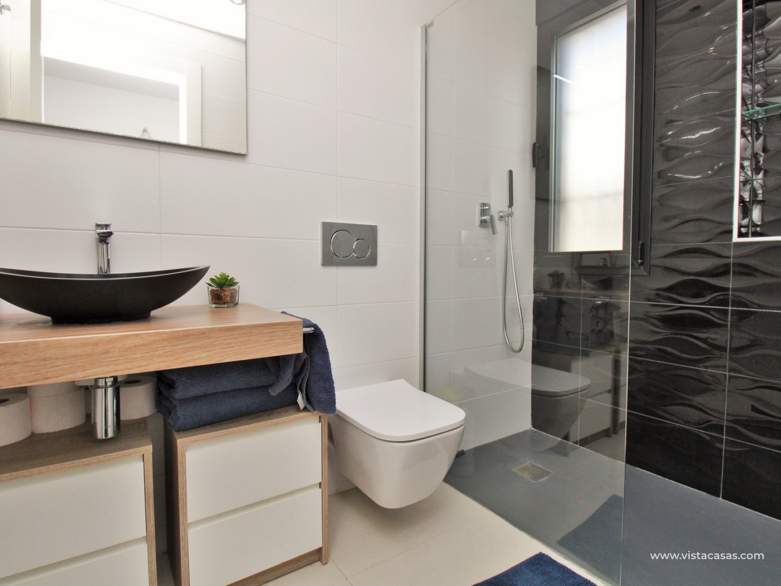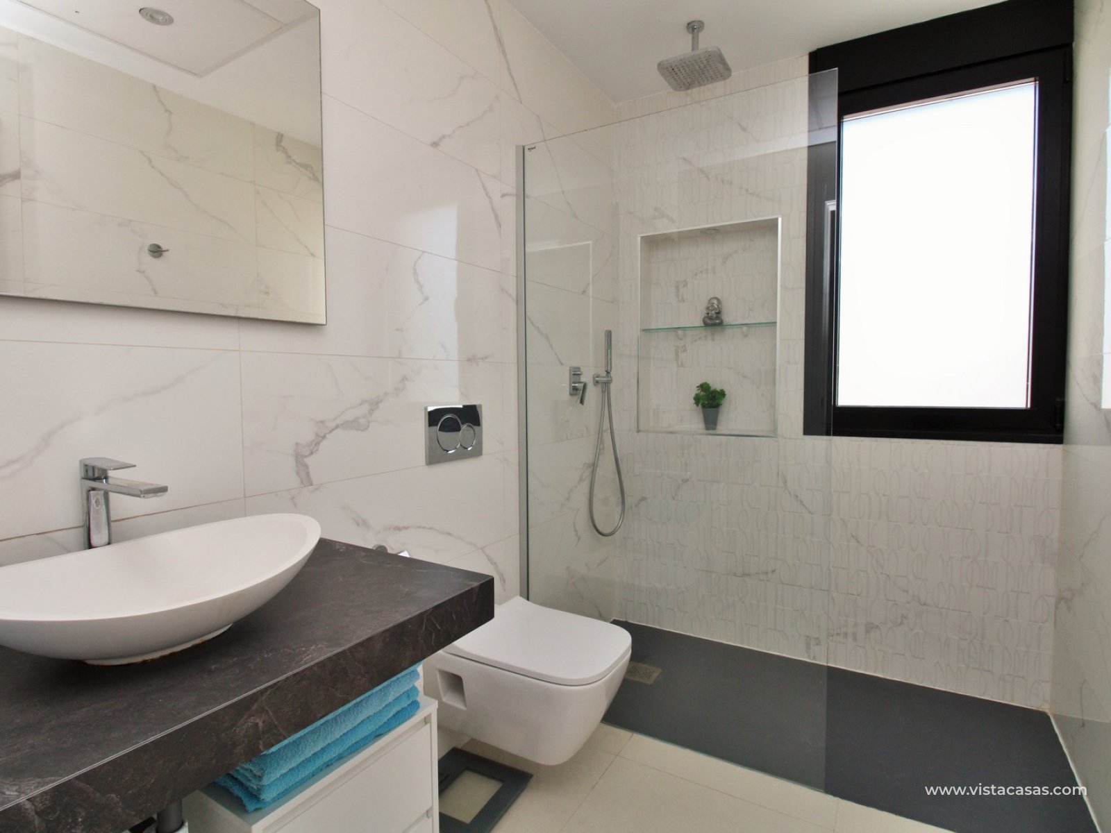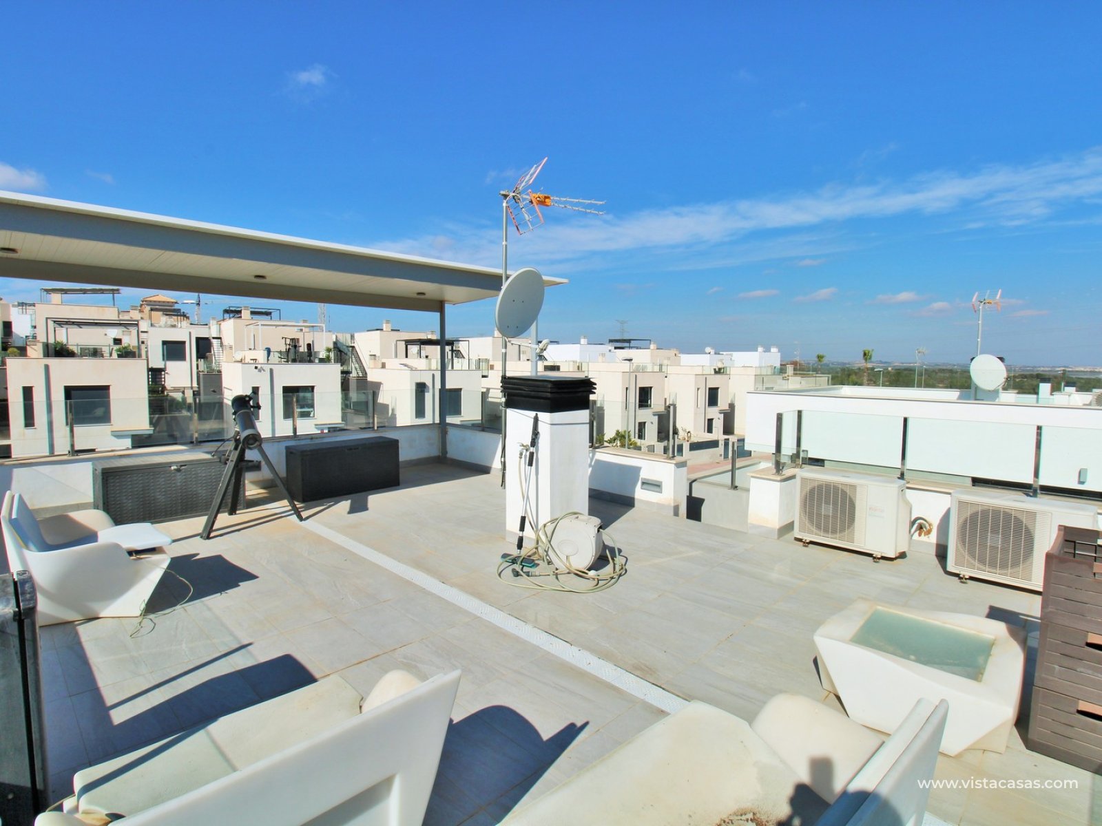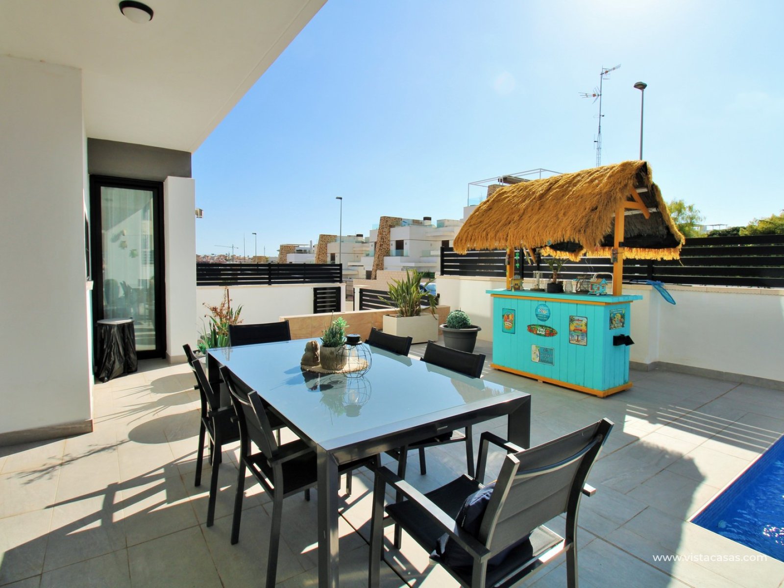 Ta pięknie prezentująca się willa wolnostojąca z 3 sypialniami i 2 łazienkami, zwrócona w stronę południową, w Villamartin, oferuje idealne połączenie nowoczesnego komfortu i życia na świeżym powietrzu. Nieruchomość położona na dużej działce narożnej, posiada prywatny basen, parking, balkon i przestronne solarium na dachu z panoramicznym widokiem na słone jeziora Torrevieja. Dzięki idealnemu położeniu willa cieszy się słońcem przez cały dzień.