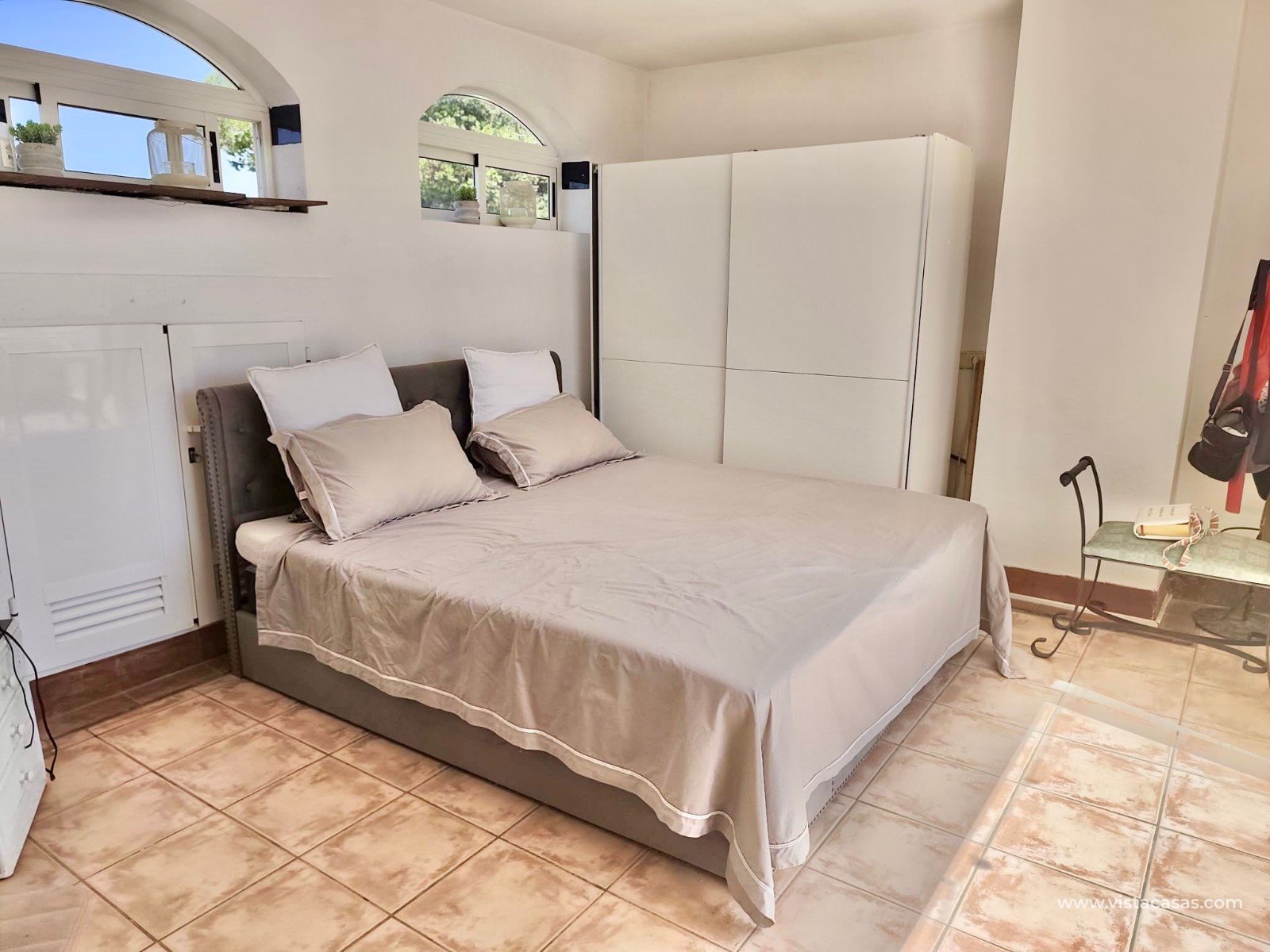 Schody z balkonu prowadzą do dużej, trzeciej sypialni z własną łazienką z prysznicem i prywatnym tarasem, z którego można podziwiać niczym niezakłócony widok.
