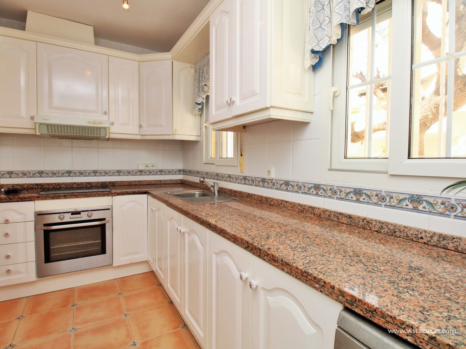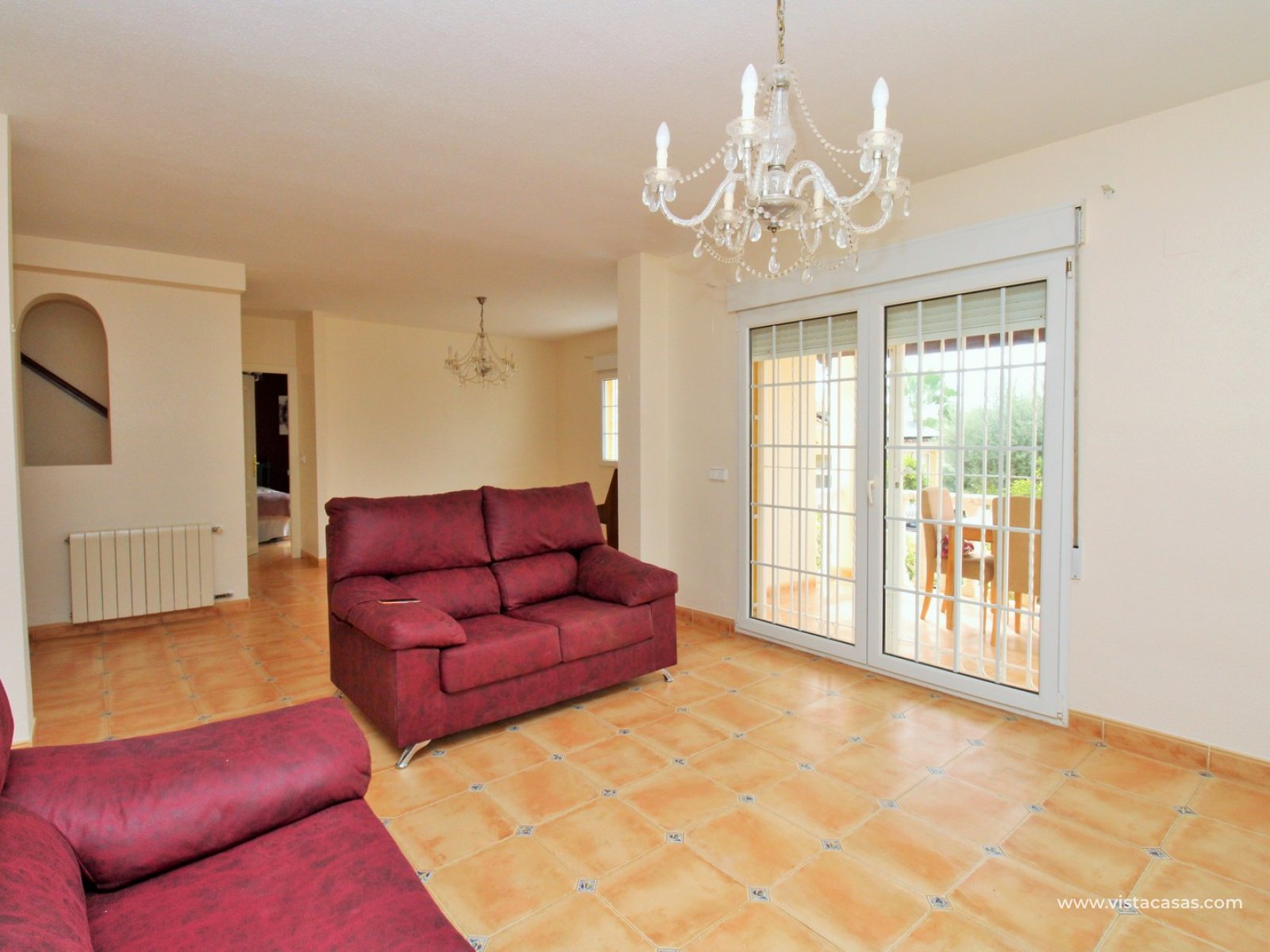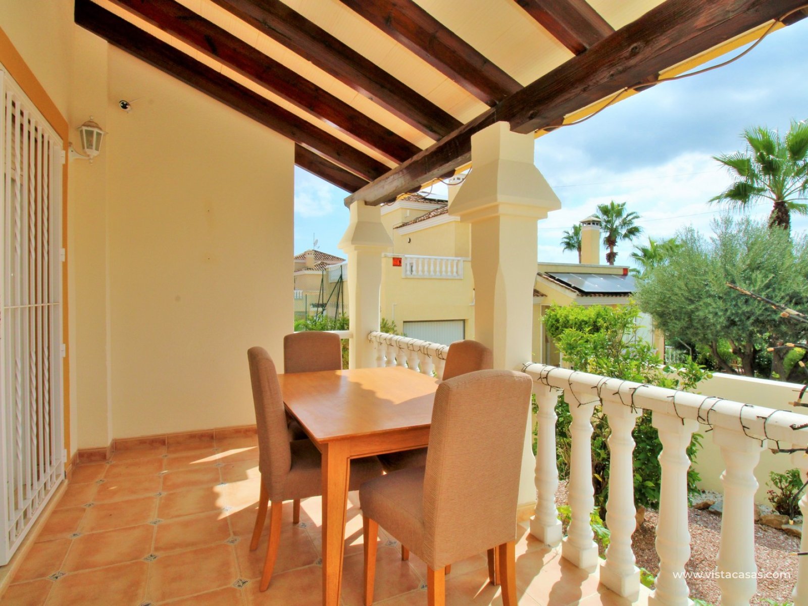 Na zewnątrz willa oferuje duży basen 10 × 5 m, ogród łatwy w utrzymaniu oraz zadaszoną wiatę garażową. Dodatkowo jest instalacja centralnego ogrzewania gazowego oraz liczne tarasy do wypoczynku na świeżym powietrzu. Położenie blisko udogodnień lokalnych, pól golfowych oraz plaż na Costa Orihuela sprawia, że nieruchomość doskonale nadaje się zarówno jako dom stały, jak i dom wakacyjny.