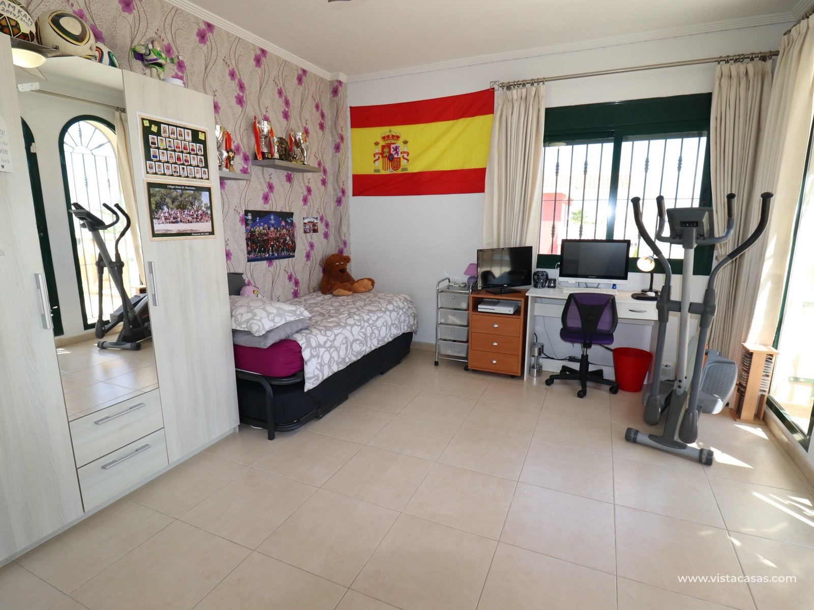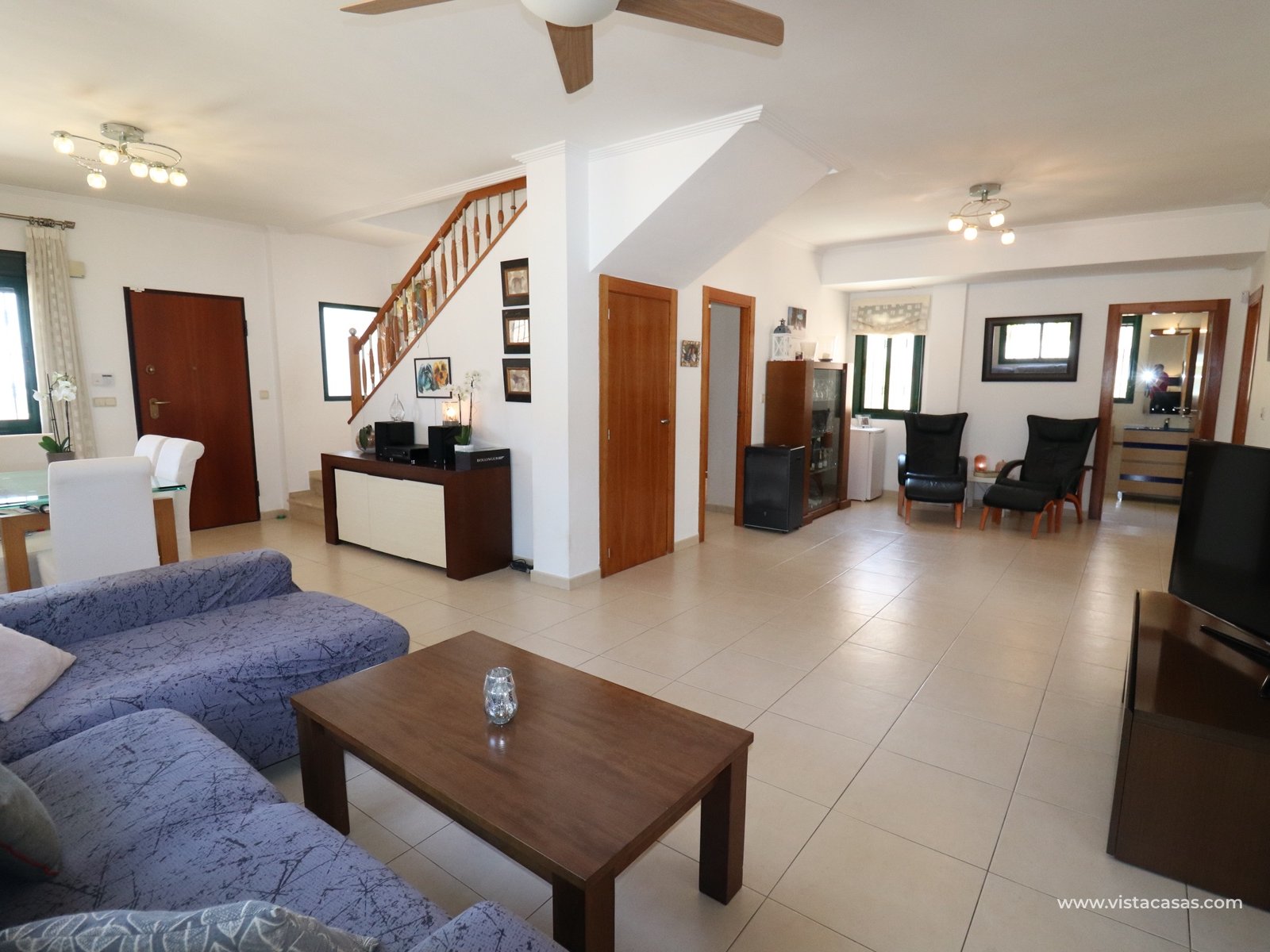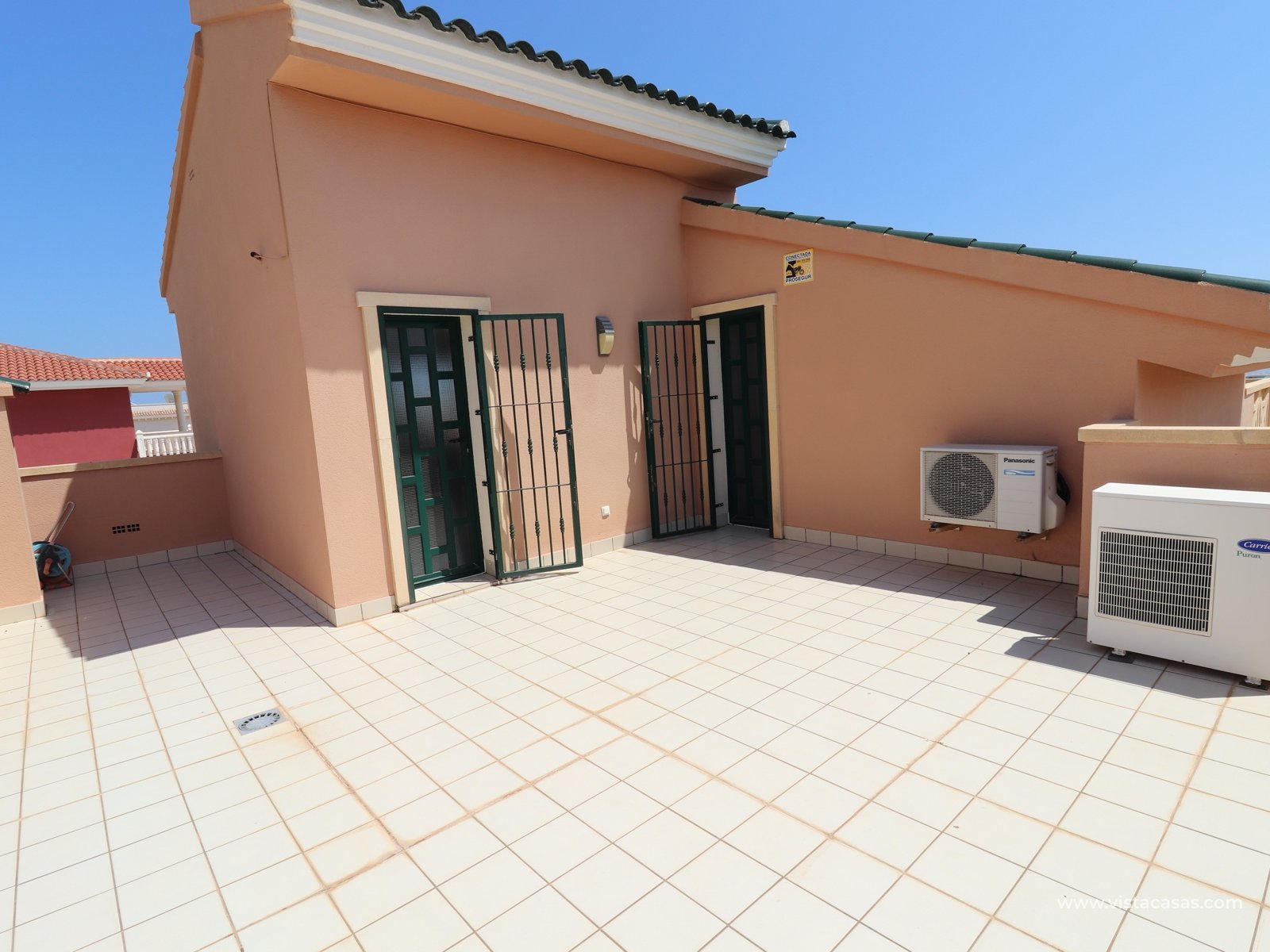 Constructed in 2007 with Euromarina, this is a Modern and spacious 4 (5) bed villa is located in a quiet area of Quesada with Stunning Salt lake views. From the Private sun terrace you see across the Salt Lakes and out toward the Sea and Costa Blanca coast line, this property is located in a quiet area of Quesada, but only a short drive from all the amenities of Quesada and Dona Pepa. On entrance this is a 4 bed villa arranged across 2 floors, accessed from a large front terrace. On the ground floor we have a modern and bright living space, here the large and modern kitchen, dining and living space offers plenty of room to arrange a layout of these areas as suits your needs. Here also we have the Master bedroom with en suite and 2 double size bedrooms with fitted wardrobes, and a family bathroom, also some additional separate storage space, and outside separate from the kitchen a additional utility or laundry room. On the 2nd floor there is a further 4th bedroom, and this has double access to the terraces/solarium of the property facing forwards towards the Salt lakes and at the rear across Quesada. On this floor also there is an additional room, currently used as an office but equally could be a 5th bedroom or any space that you would prefer. This villa is well maintained and very well presented with excellent building quality, integrated hot and cold air-conditioning, electric gates and security grills, alarm and a private, secure and fully wall plot. This property can be sold part furnished. Outside the large covered terraces looks out over the bespoke designed and built swimming pool, and the rest of the property. The villa is well situated on the 525 square meter plot, with spaces and areas around the villa at varying points throughout the day offering the sun and shade which provide quiet spaces to enjoy, to BBQ, or just relax. The plot is designed and tiled in some areas for easy maintenance, and planted with fruit trees, the electric gates open to off street parking with plenty of space for 2 cars. Quesada is a large multi-national, multi cultural town offering a wide diversity of properties as well as bars & restaurants offering a wide variety of cuisines, all of this located 10 minutes by car from the golden sandy beaches of the Costa Blanca South.