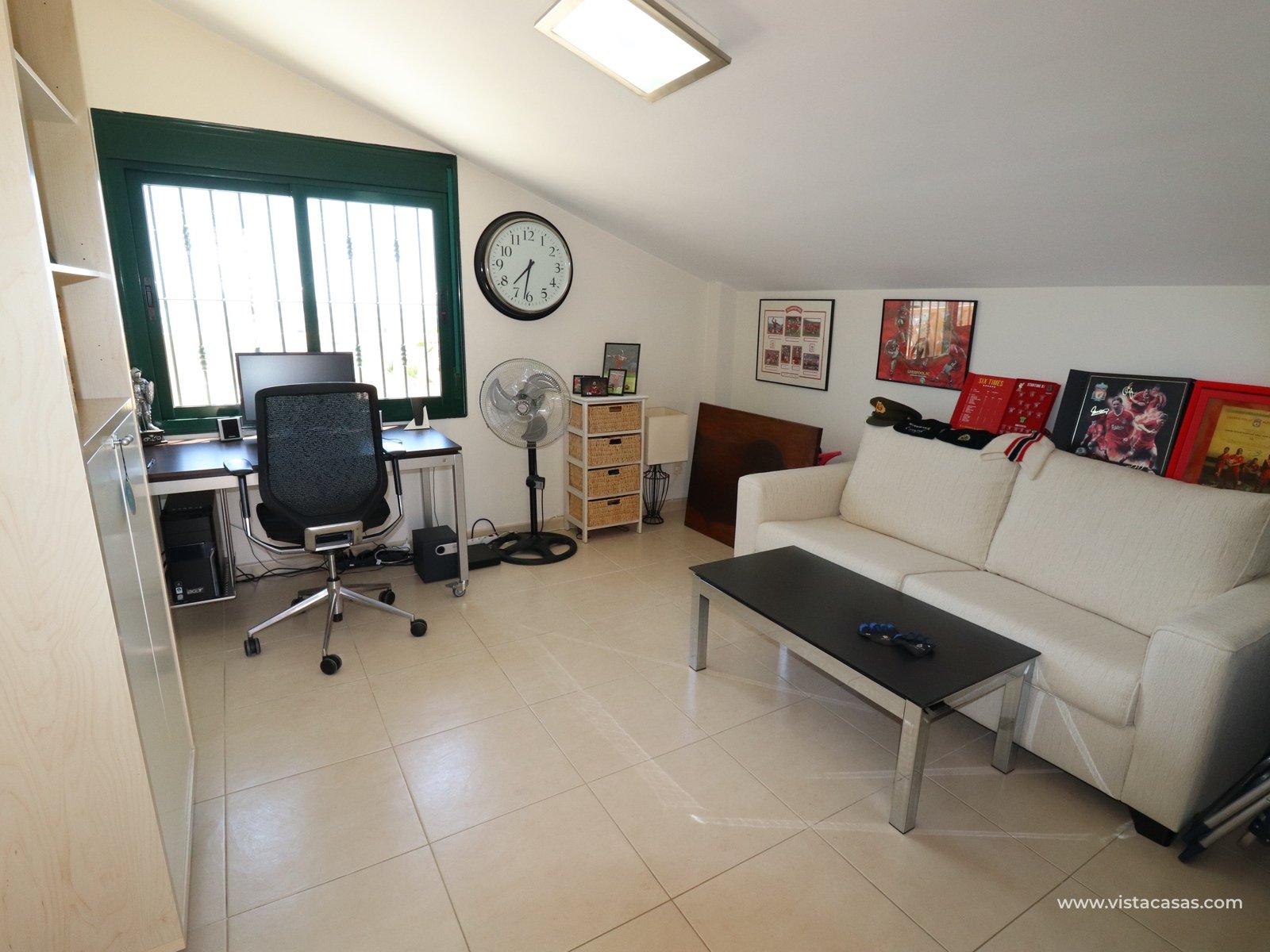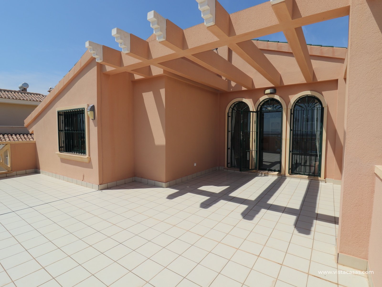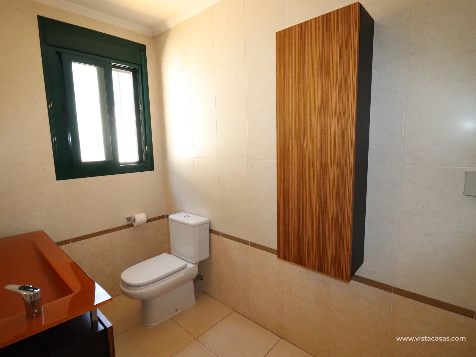 Constructed in 2007 with Euromarina, this is a Modern and spacious 4 (5) bed villa is located in a quiet area of Quesada with Stunning Salt lake views. From the Private sun terrace you see across the Salt Lakes and out toward the Sea and Costa Blanca coast line, this property is located in a quiet area of Quesada, but only a short drive from all the amenities of Quesada and Dona Pepa. On entrance this is a 4 bed villa arranged across 2 floors, accessed from a large front terrace. On the ground floor we have a modern and bright living space, here the large and modern kitchen, dining and living space offers plenty of room to arrange a layout of these areas as suits your needs. Here also we have the Master bedroom with en suite and 2 double size bedrooms with fitted wardrobes, and a family bathroom, also some additional separate storage space, and outside separate from the kitchen a additional utility or laundry room. On the 2nd floor there is a further 4th bedroom, and this has double access to the terraces/solarium of the property facing forwards towards the Salt lakes and at the rear across Quesada. On this floor also there is an additional room, currently used as an office but equally could be a 5th bedroom or any space that you would prefer. This villa is well maintained and very well presented with excellent building quality, integrated hot and cold air-conditioning, electric gates and security grills, alarm and a private, secure and fully wall plot. This property can be sold part furnished. Outside the large covered terraces looks out over the bespoke designed and built swimming pool, and the rest of the property. The villa is well situated on the 525 square meter plot, with spaces and areas around the villa at varying points throughout the day offering the sun and shade which provide quiet spaces to enjoy, to BBQ, or just relax. The plot is designed and tiled in some areas for easy maintenance, and planted with fruit trees, the electric gates open to off street parking with plenty of space for 2 cars. Quesada is a large multi-national, multi cultural town offering a wide diversity of properties as well as bars & restaurants offering a wide variety of cuisines, all of this located 10 minutes by car from the golden sandy beaches of the Costa Blanca South.