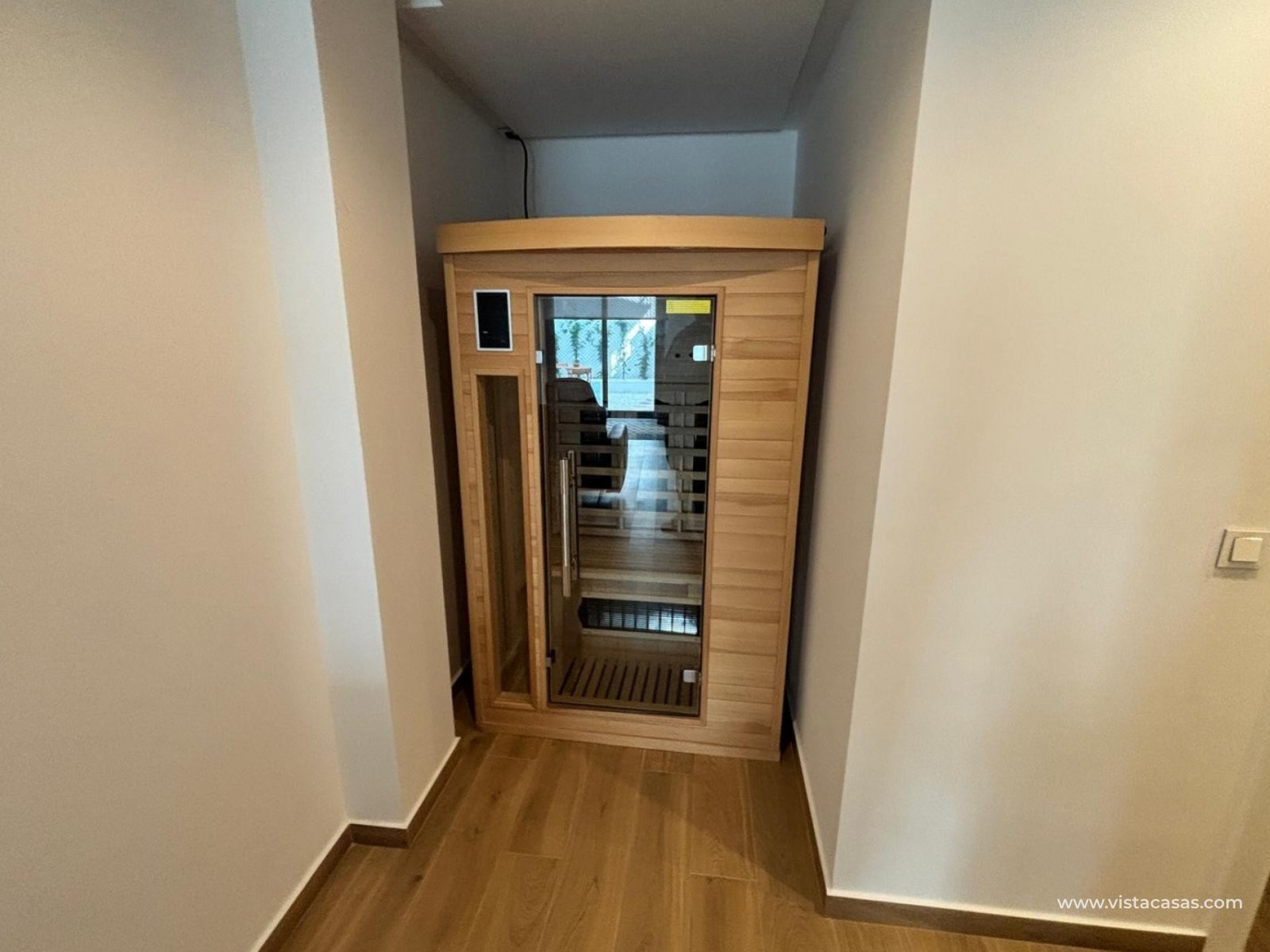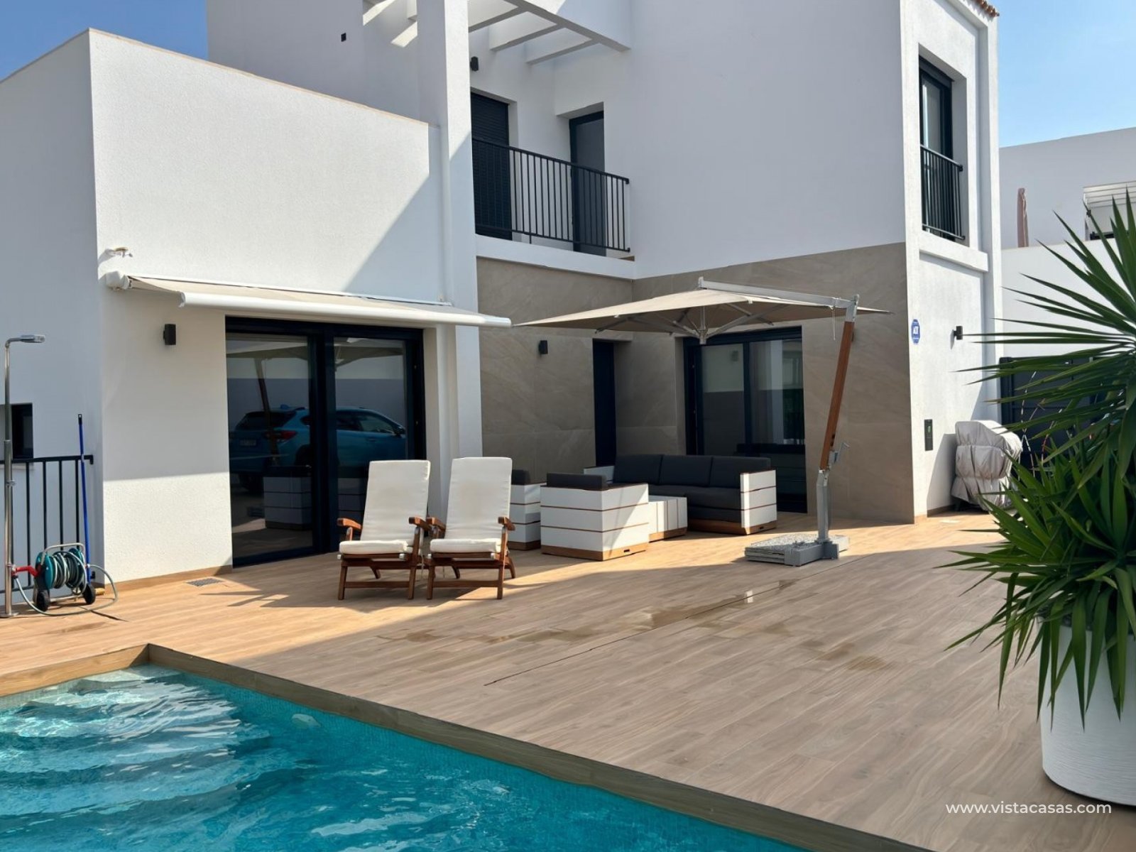 Here we have this amazing Villa On Quesada brand new and finished to a very high standard. This property is split over 3 levels. On the ground level you have a stunning fully equipped luxury kitchen diner with patio doors leading to the Pool and garden. A double bedroom and a shower room and toilet with under floor heating. on the upper level there is a further 2 bedrooms and another shower room and toilet, here is access to a private terrace with Jacuzzi. On the lower level there is a large lounge with access to private court yard, a further shower room with Toilet and a Sauna. The property has ducted air-con underfloor heating electric blinds and much much more.