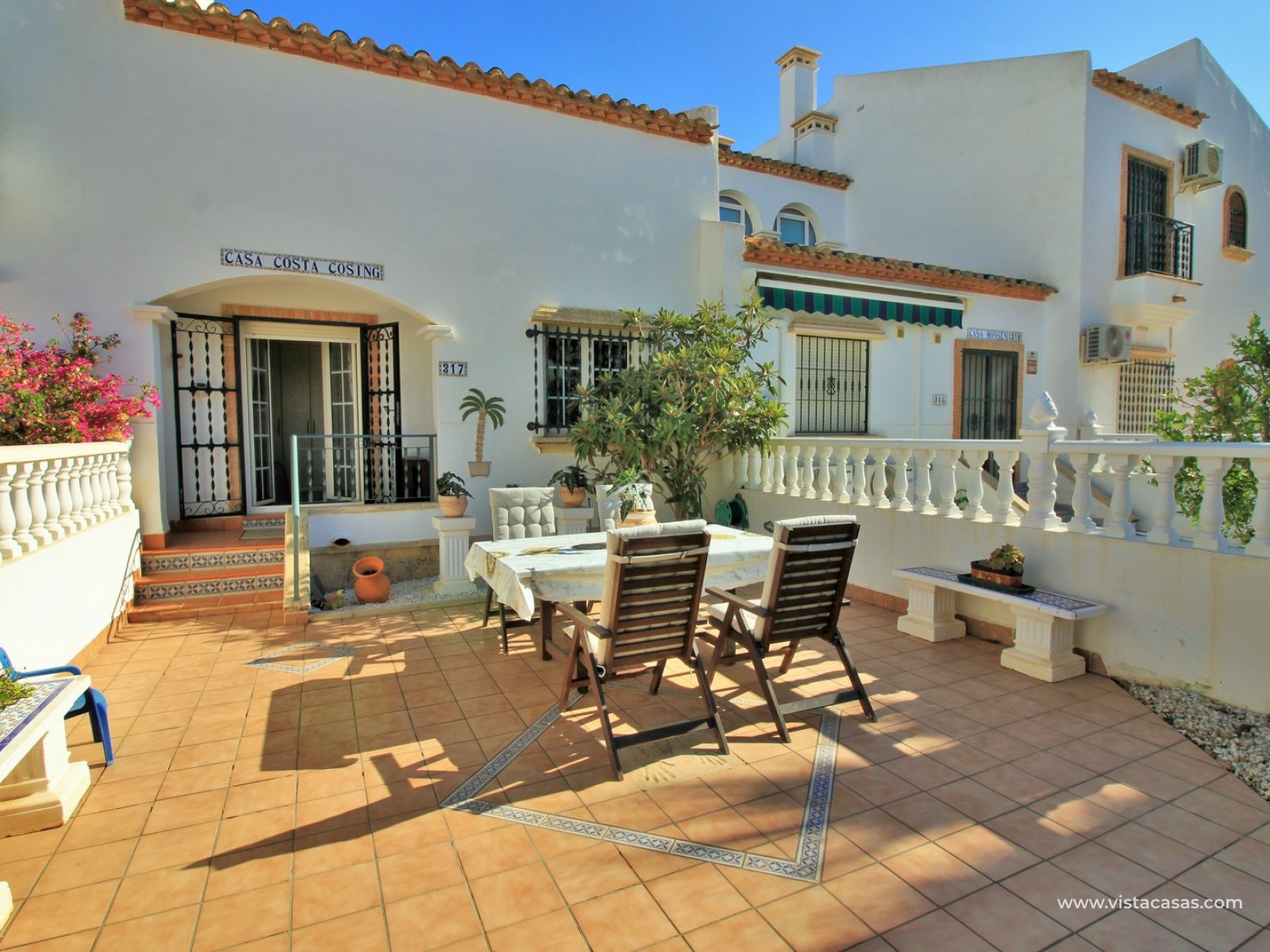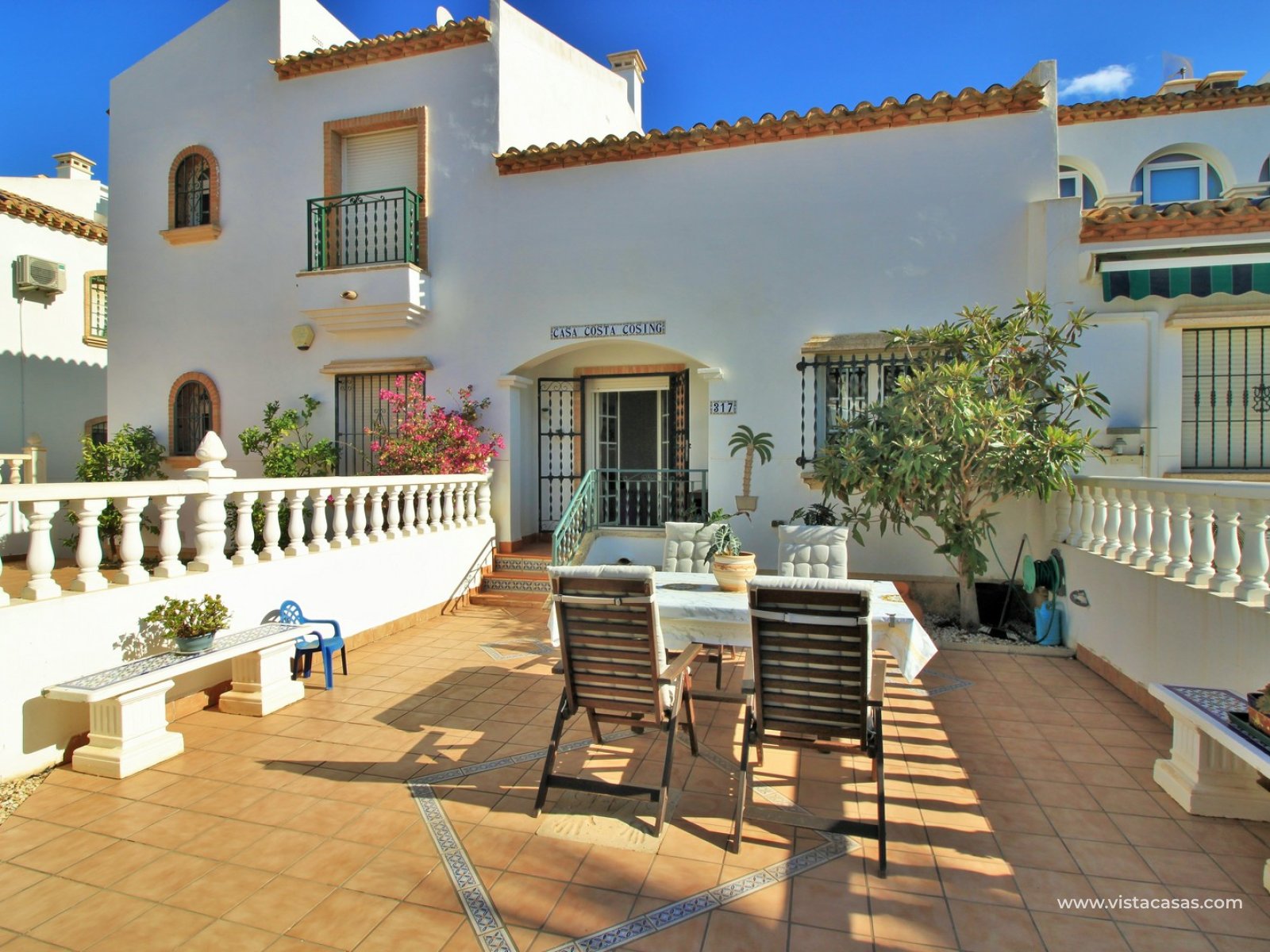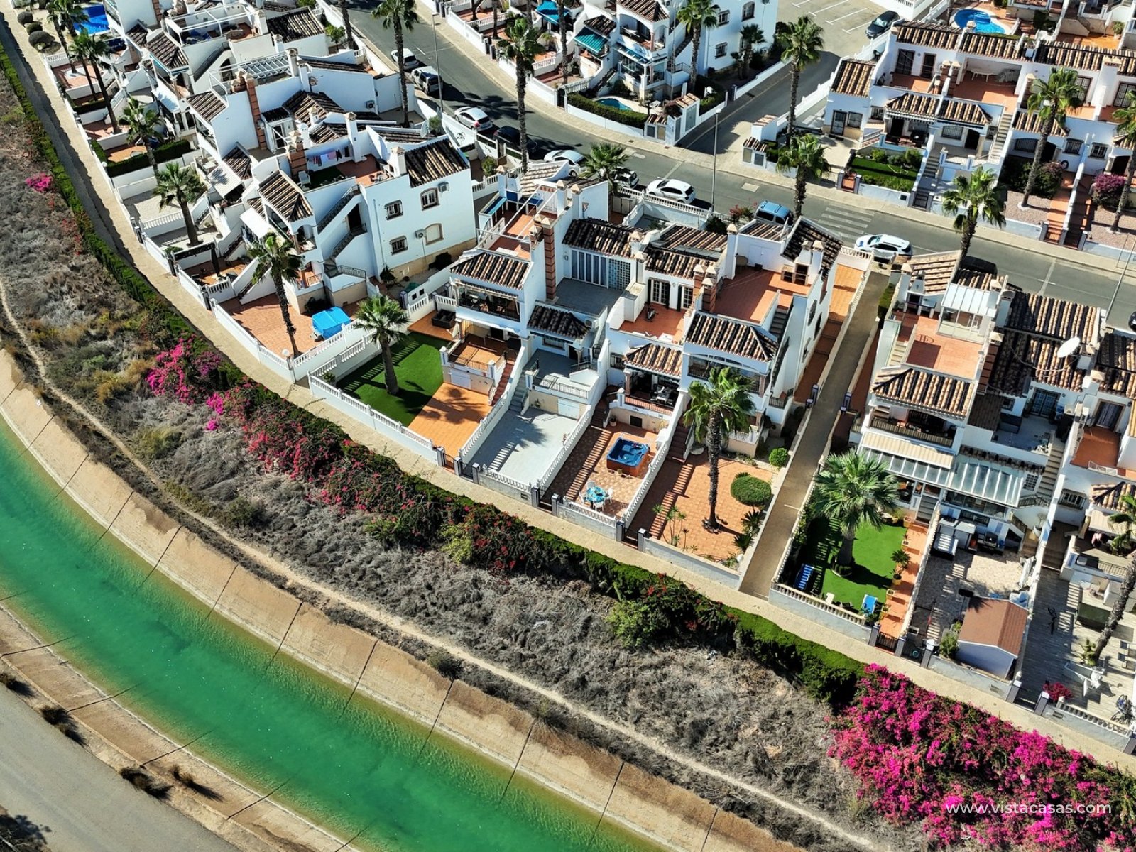 EXCEPTIONAL 3 bedroom Buhardilla style townhouse for sale in the highly-sought after area of Las Violetas in Villamartin. The property is located in a prime position, facing towards the canal with unobstructed views! The house has a large front and rear garden, which offer plenty of sunshine throughout the day. These Buhardilla model townhouses are in very high demand so quick viewings are highly advised!