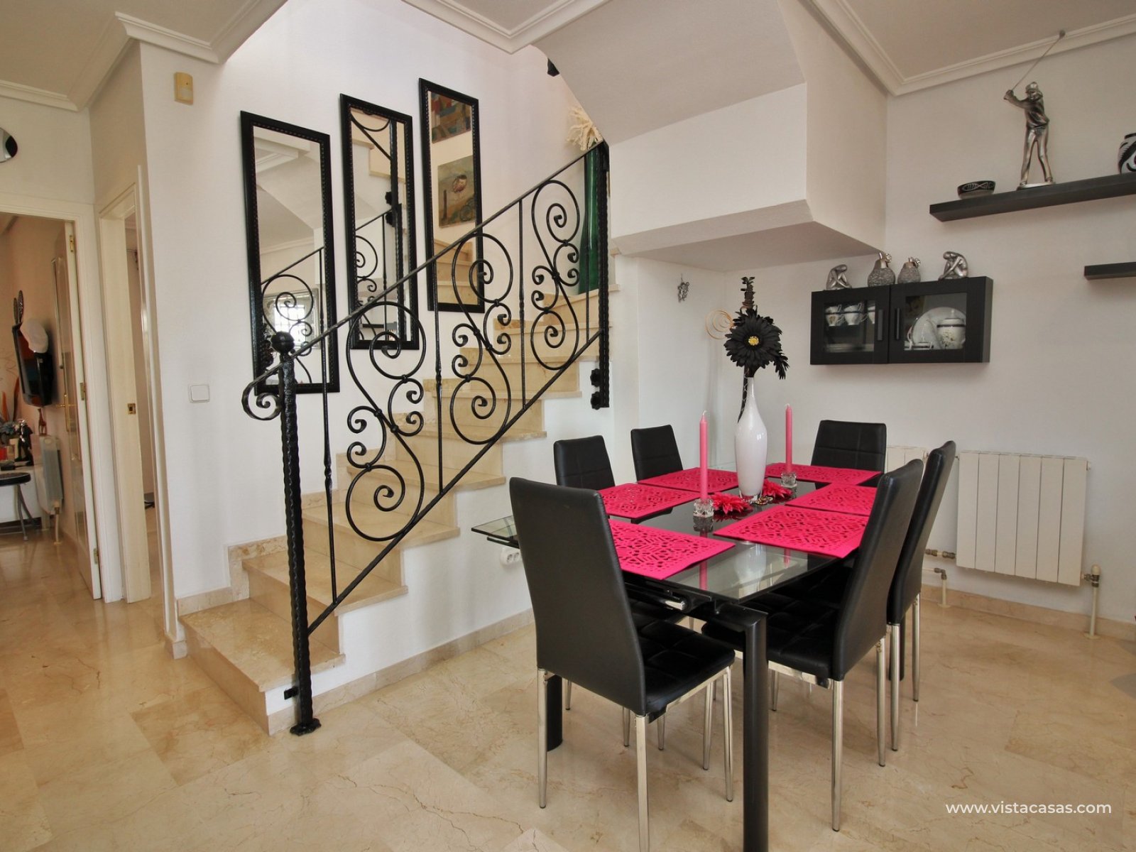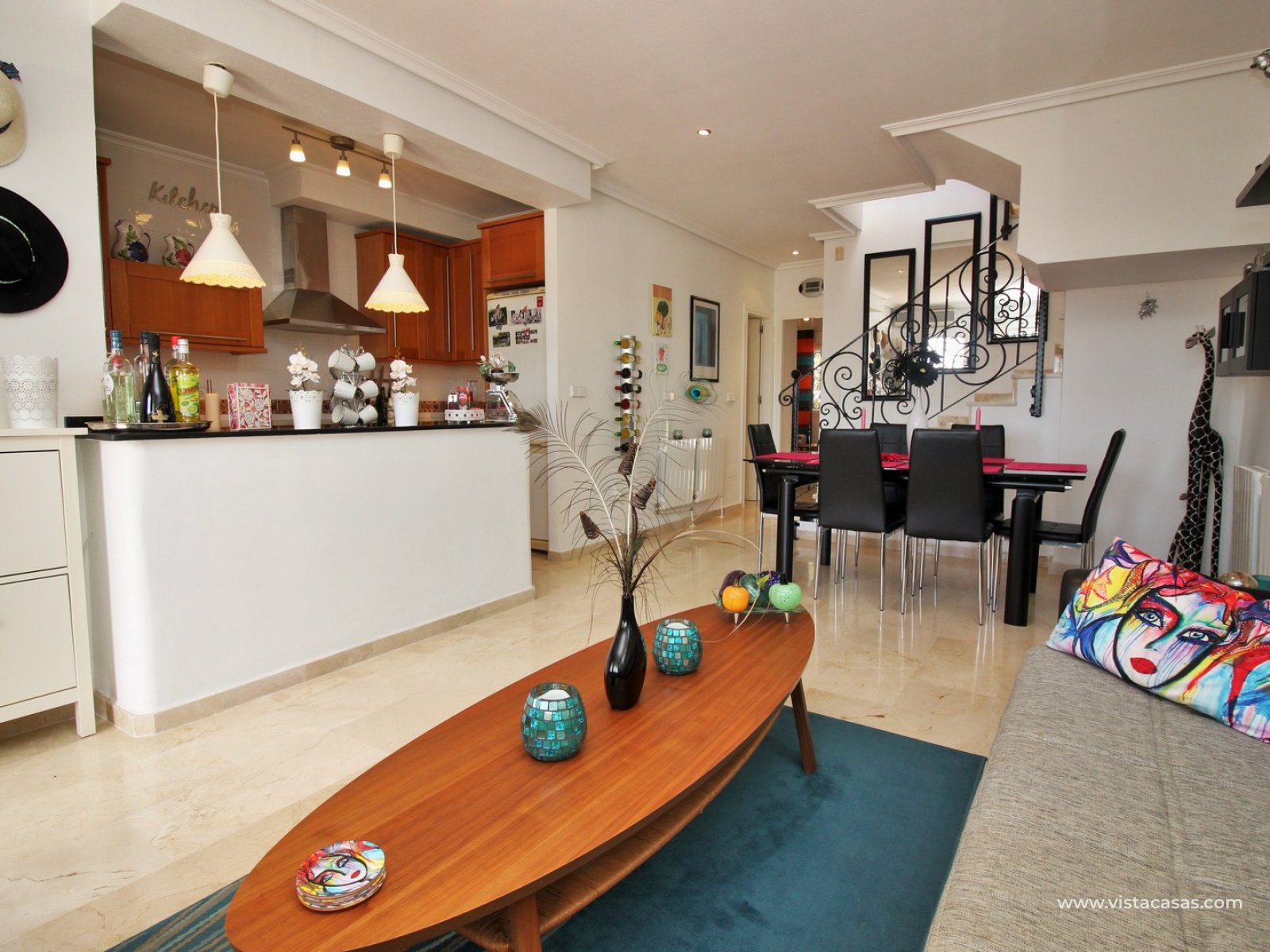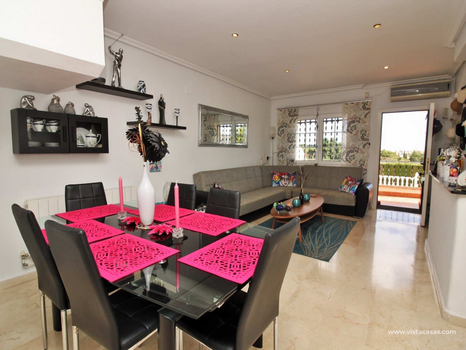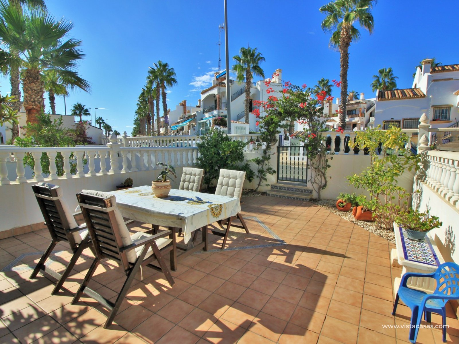 EXCEPTIONAL 3 bedroom Buhardilla style townhouse for sale in the highly-sought after area of Las Violetas in Villamartin. The property is located in a prime position, facing towards the canal with unobstructed views! The house has a large front and rear garden, which offer plenty of sunshine throughout the day. These Buhardilla model townhouses are in very high demand so quick viewings are highly advised!