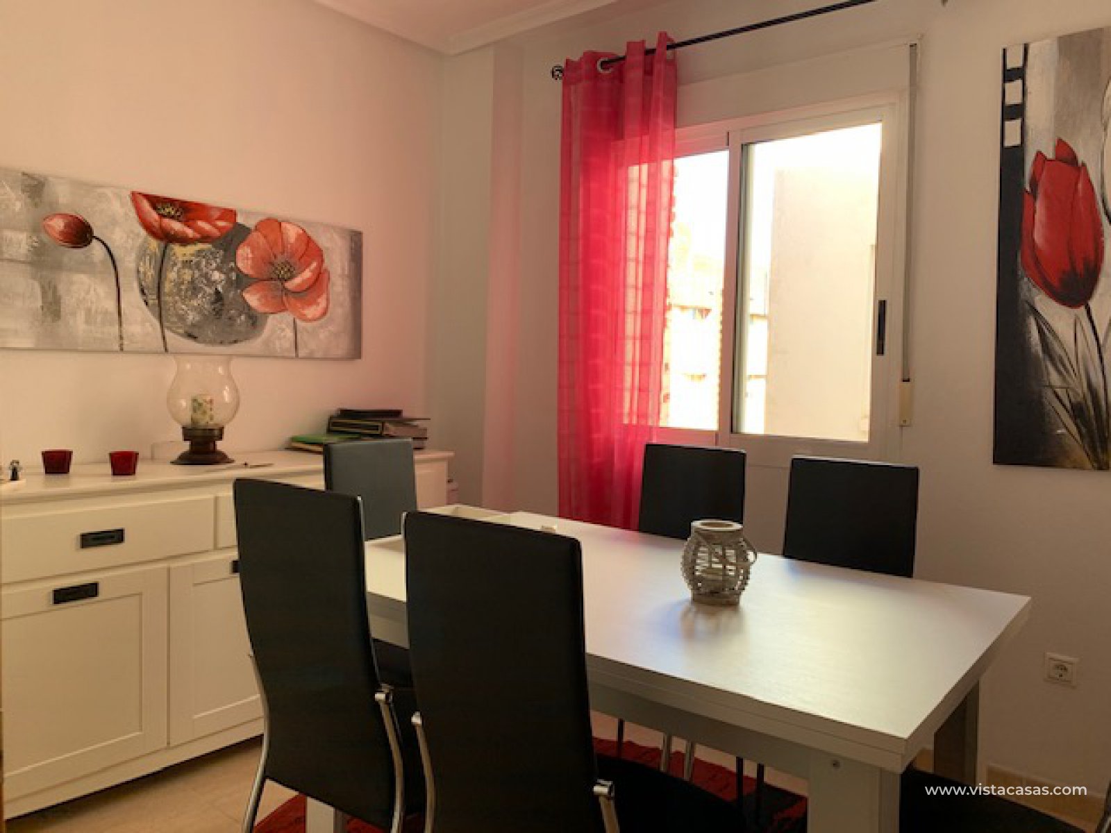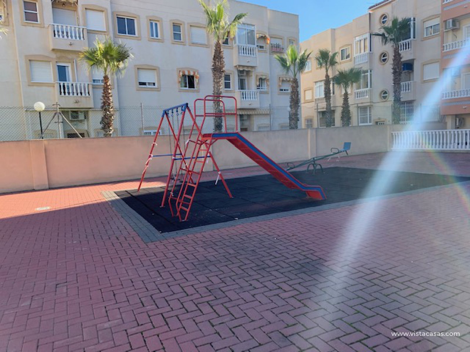 Lovely south facing penthouse apartment with large balcony, located in the center of Torrevieja, within walking distance to the beach and very close to all amenities. The property consists of 3 bedrooms, 1 bathroom, living room with open plan kitchen and a spacious balcony to enjoy the Spanish sunshine. The apartment has its own garage space and storage. There is community pool area, tennis court and playground.