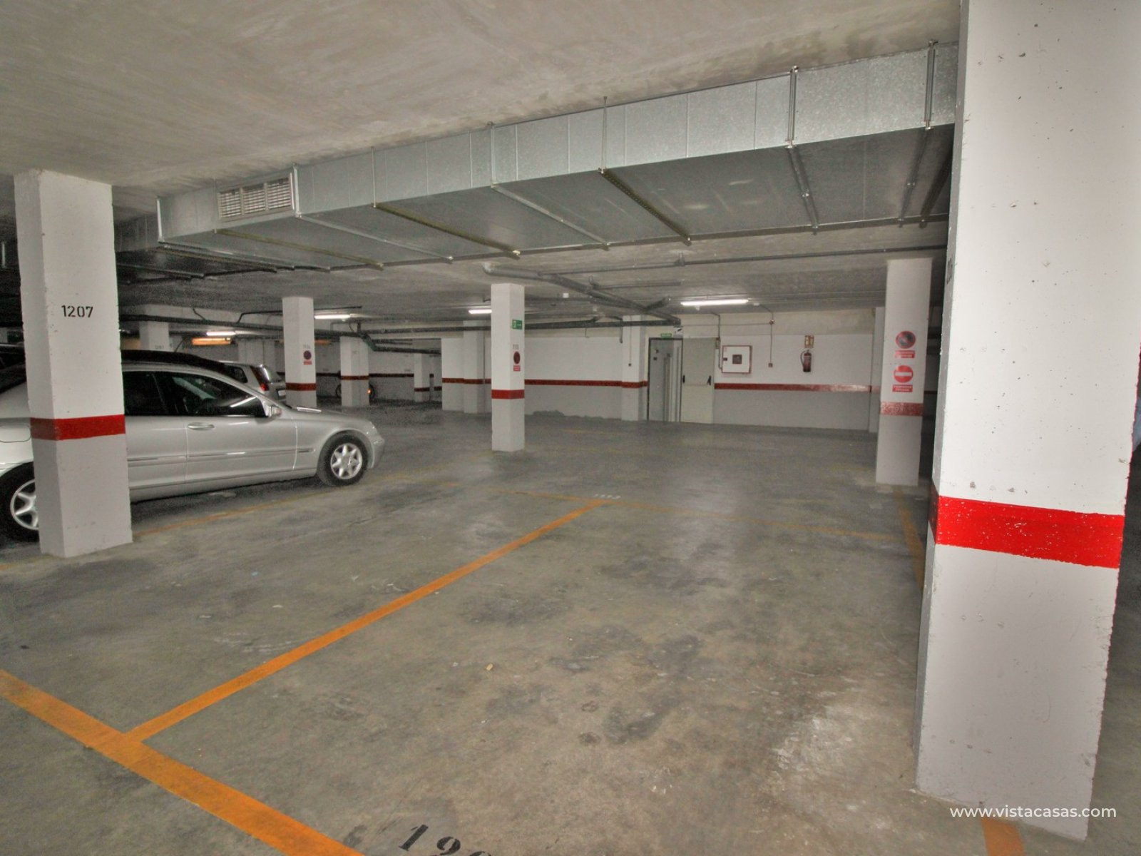 The living accommodation comprises of an entrance hallway which leads into the open plan lounge-dining area with a fully fitted kitchen, 2 bedrooms with fitted wardrobes and a family bathroom. From the lounge, you have direct access to a private balcony, which offers all day sunshine! The apartment is sold furnished with air-conditioning, plus a private underground parking space is included in the price! The apartment is located on the second floor with lift access to all floors, including the parking area.