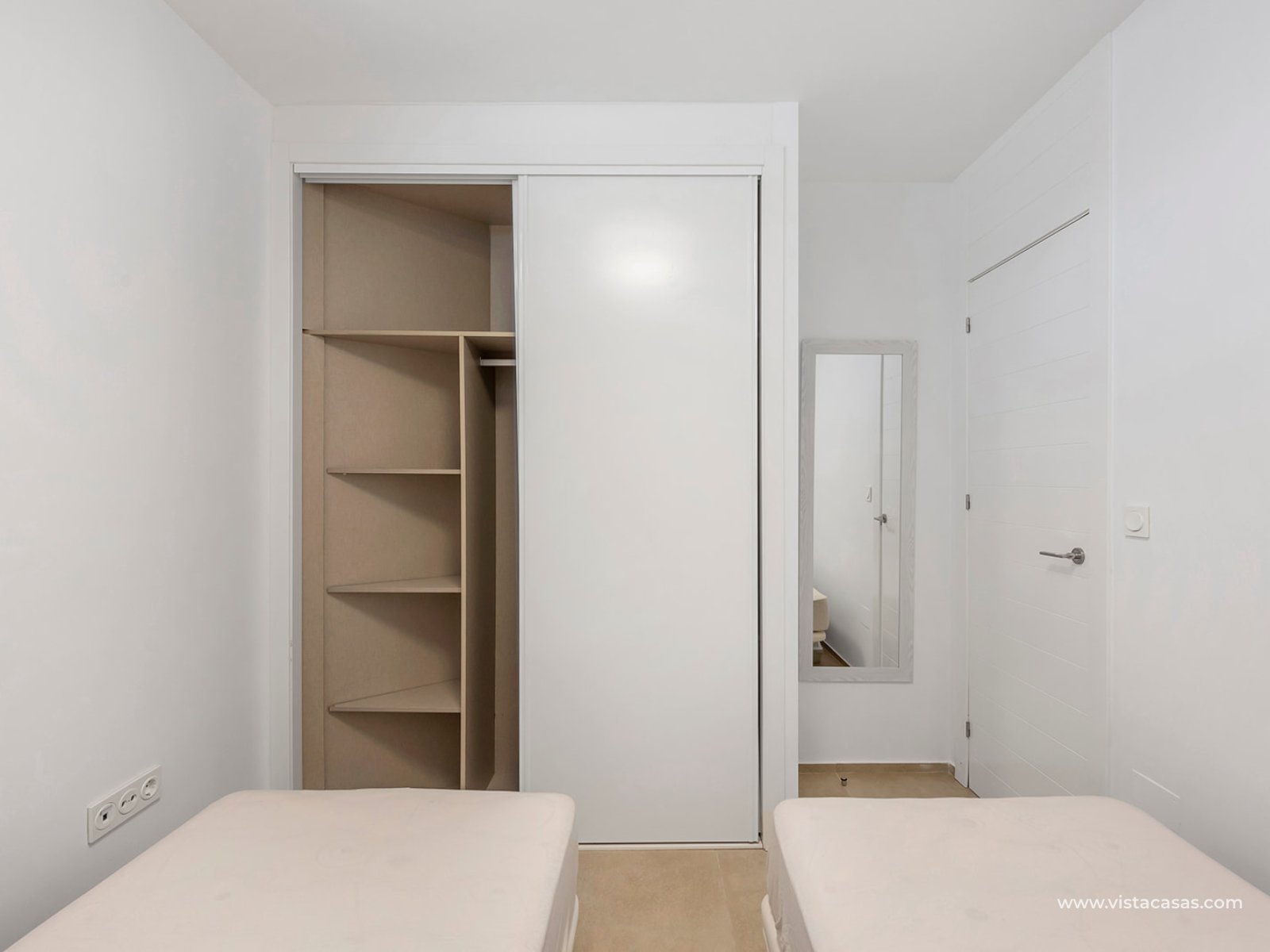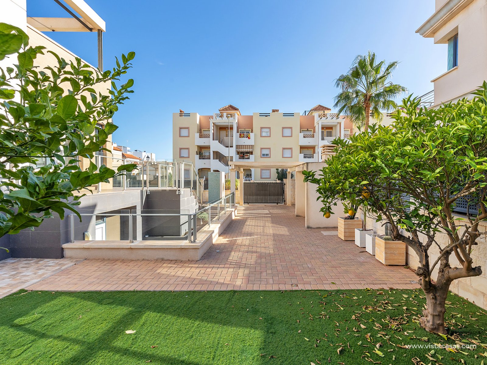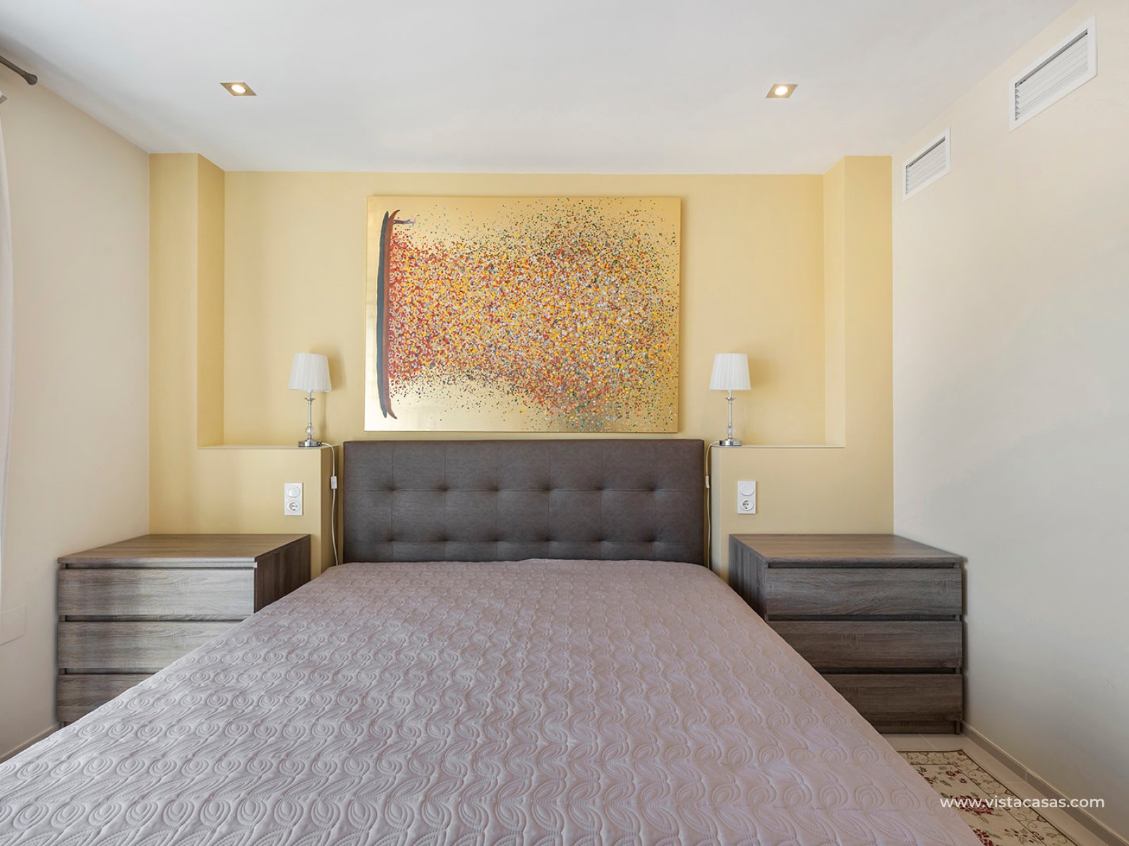 Luxury villa in La Zenia, Orihuela Costa. This villa is situated in an exclusive residential area and has its own private pool and a plot of 410m2. The property has 250m2 built area divided into 4 floors. On the ground floor there is a spacious living room with open plan kitchen, 1 bedroom, 1 bathroom and terrace with access to the pool. On the semi-basement floor there is a living room with open plan kitchen, 2 bedrooms and 1 bathroom. This floor also has a sauna and shower. On the first floor there are 2 bedrooms, each with en-suite bathroom and a large terrace. On the top floor there is a large solarium of 46m2. La Zenia is close to Cabo Roig, Campoamor and Playa Flamenca. It is a tourist area located close to all amenities of the famous La Zenia Boulevard shopping centre. A few minutes from the N-332 and the Mediterranean motorway AP-7 towards Alicante and Cartagena. There are also around the golf courses of Villamartin, Las Ramblas, Campoamor and Las Colinas.