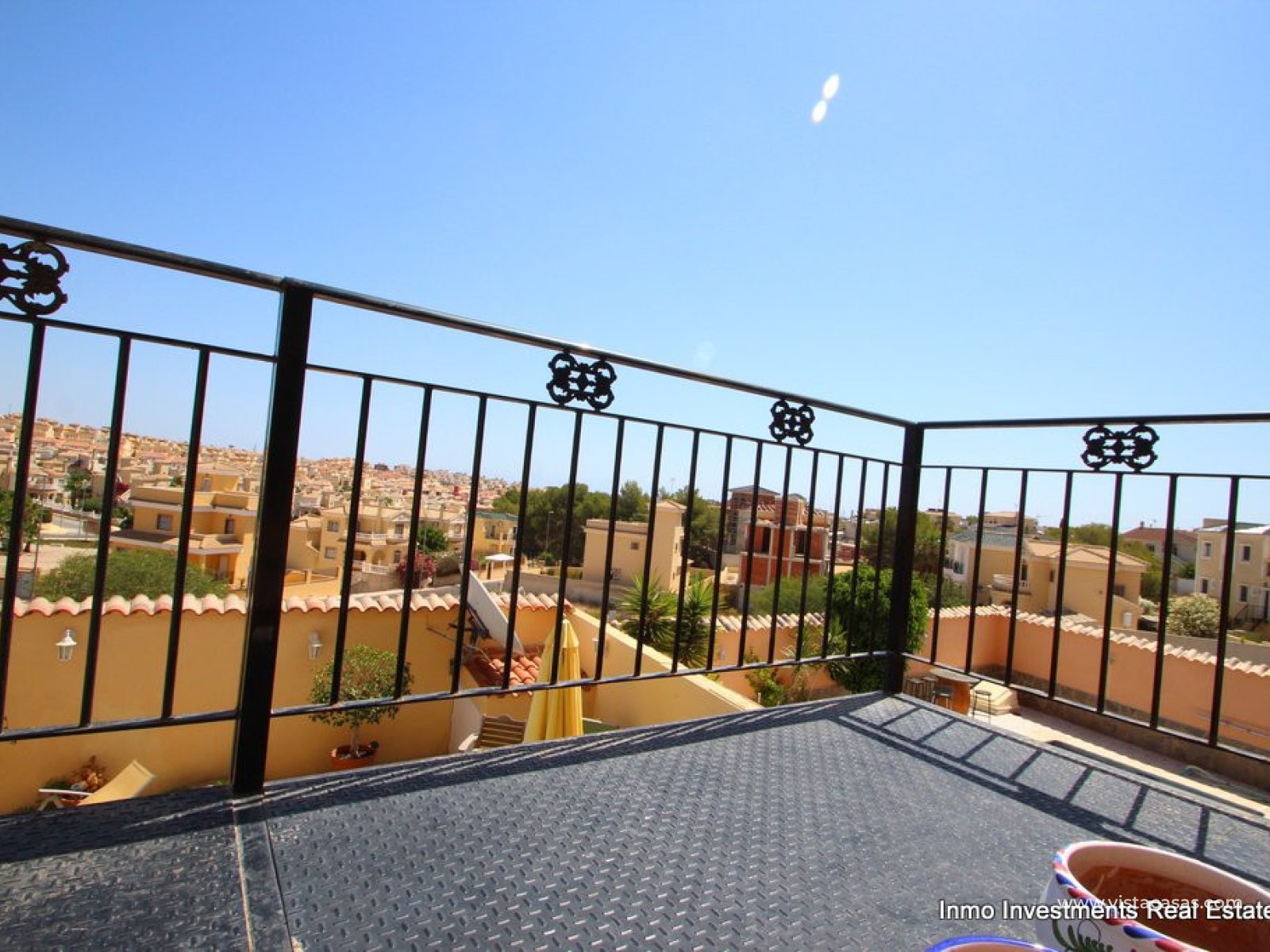 Beautiful detached villa for sale with under build apartment in Villamartin. This beautiful family home offers in the main living area 3 double bedrooms, family bathroom, WC, cloakroom, spacious lounge/dining room, fully fitted kitchen with breakfast bar and storage area. The villa also boasts a private under build apartment with direct access to the pool area and offers double bedroom, spectacular bathroom, sleek and modern open plan kitchen with breakfast bar and spacious lounge/dining area. Outside space boasts numerous terraces, wrap around balcony, established garden and private 8 x 3m swimming pool. Built in 2004 the property is maintained to a high standard and will be sold part furnished including white goods, security shutters, grilles, air conditioning, satellite TV, gas fire and much more. Located in a quiet residential area and just a short drive to the popular Villamartin Plaza, golf course and numerous beaches on the Orihuela Costa. A must see family home. Contact us today for a viewing.