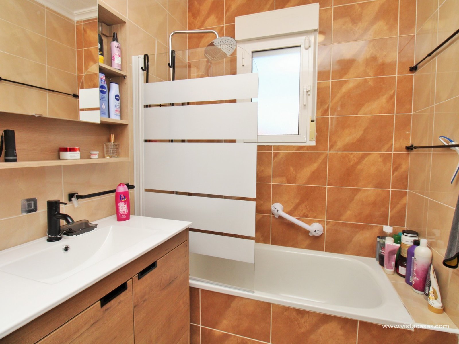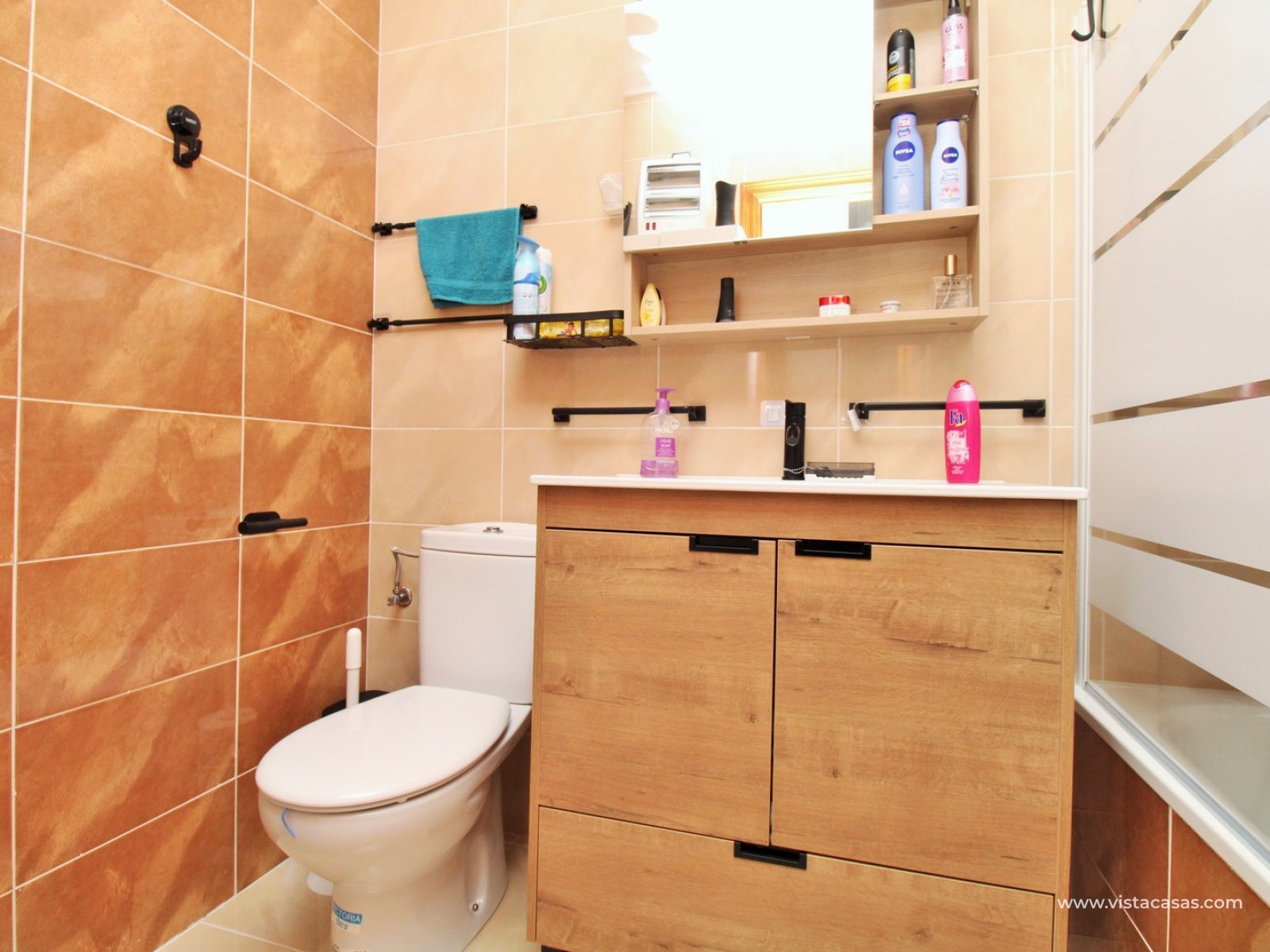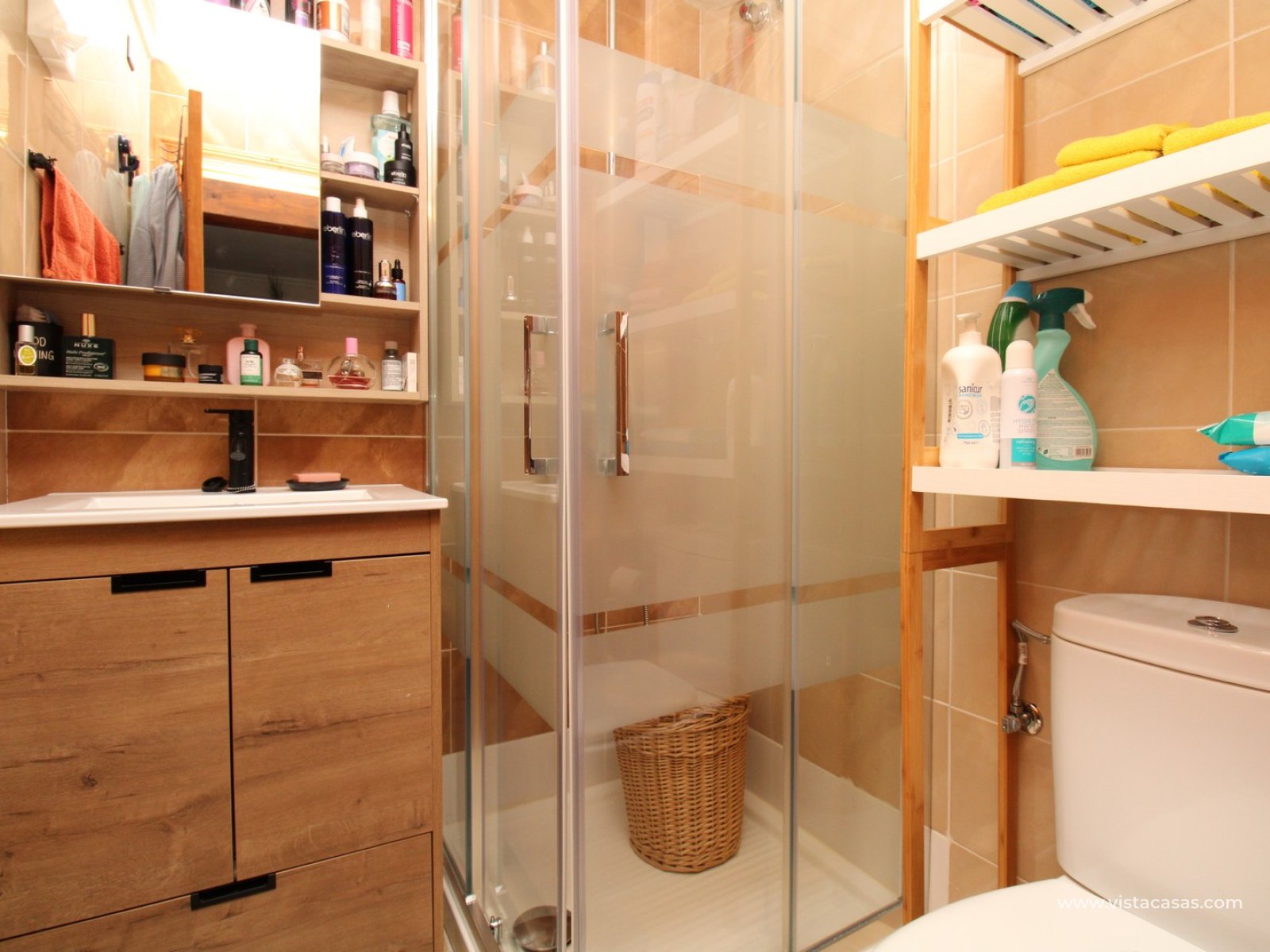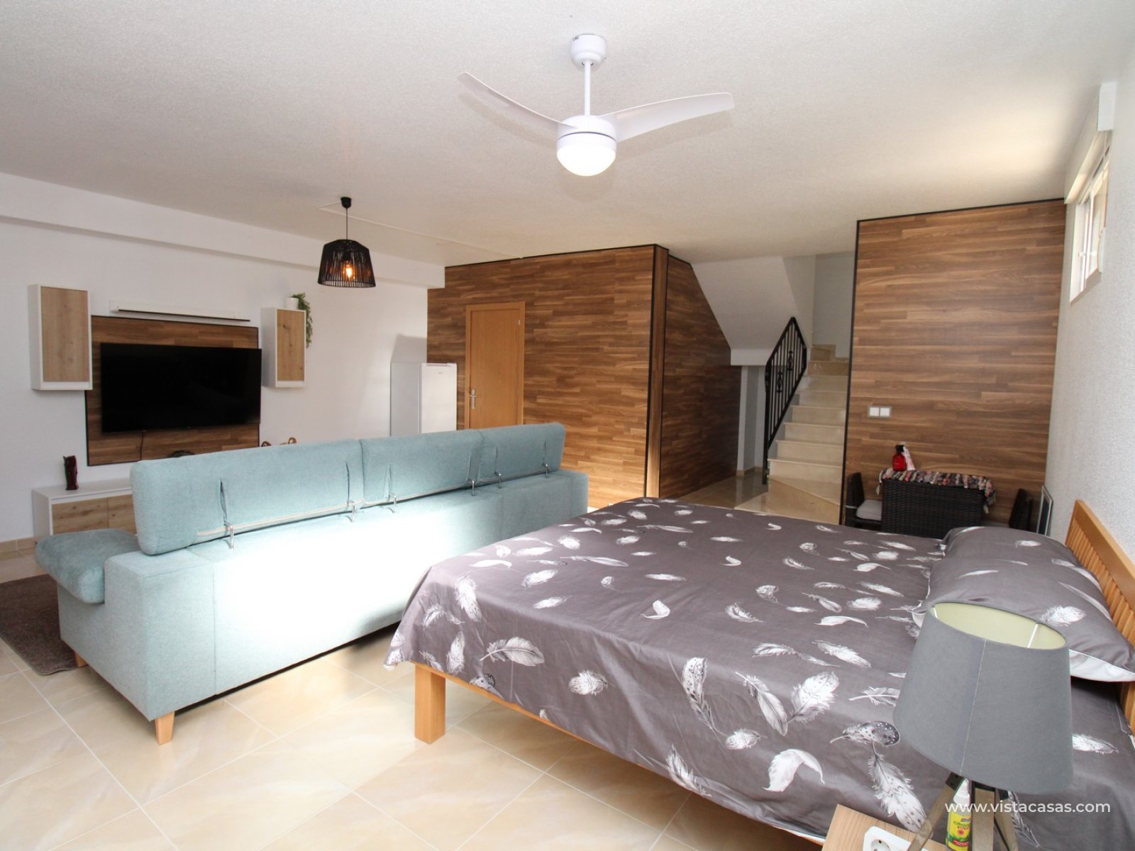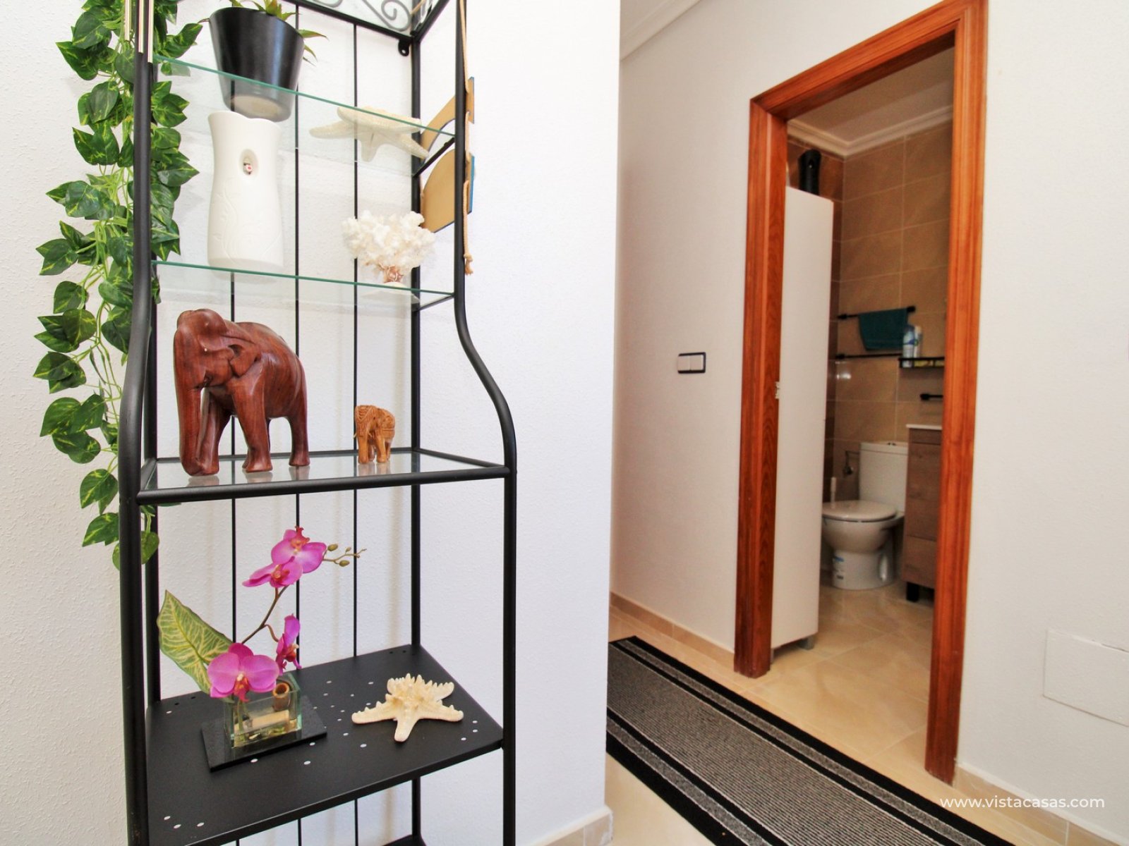 Upstairs, the first floor features two spacious double bedrooms with fitted wardrobes and a family bathroom. The master bedroom opens onto a private balcony, while a second balcony, accessible from the landing, provides yet another quiet outdoor retreat. Crowning the home is the rooftop solarium, offering panoramic views of the Mediterranean coastline, rolling countryside, and the famous Torrevieja salt lakes—a perfect space for soaking in the sunshine and enjoying the scenery.