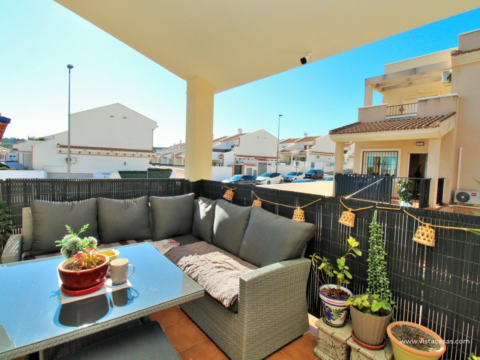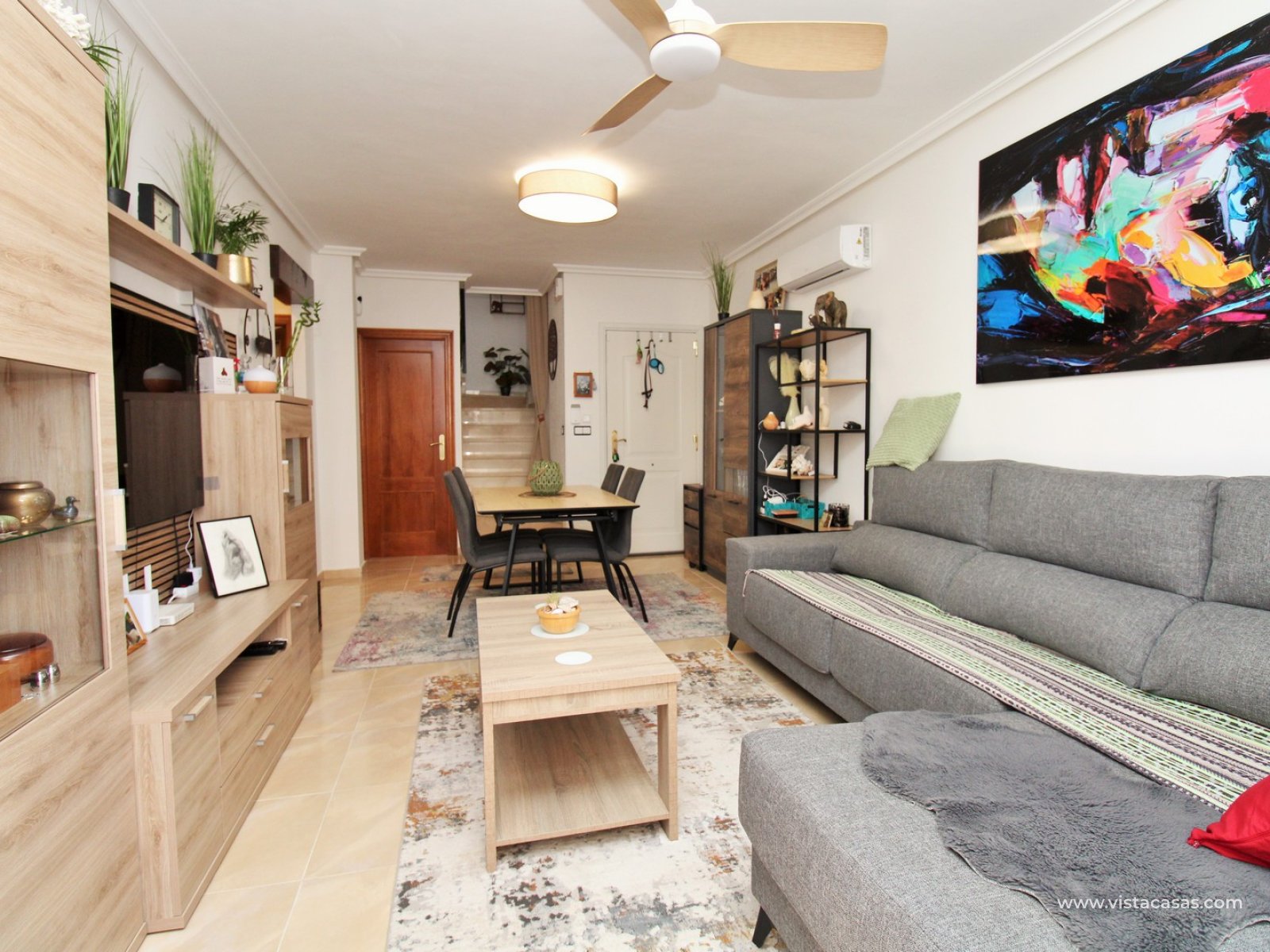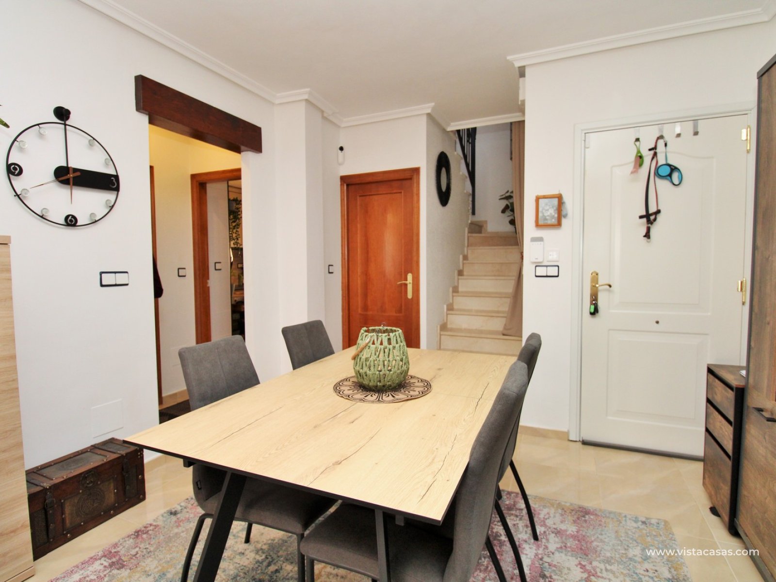 Located just 3km from the center of San Miguel de Salinas, this townhouse offers a peaceful setting while remaining close to essential amenities. The vibrant Villamartin Plaza, known for its dining options and prestigious golf course, is easily accessible, and the golden beaches of Orihuela Costa are only a 15-minute drive away.
