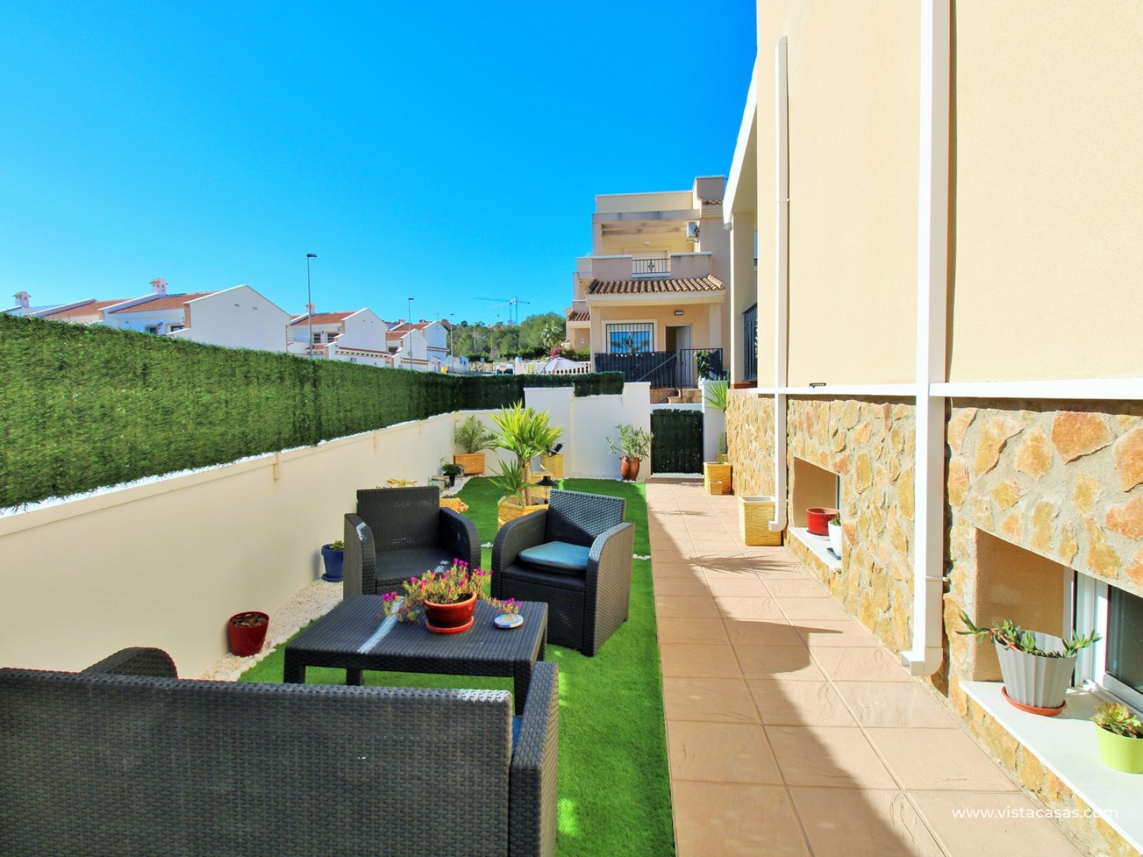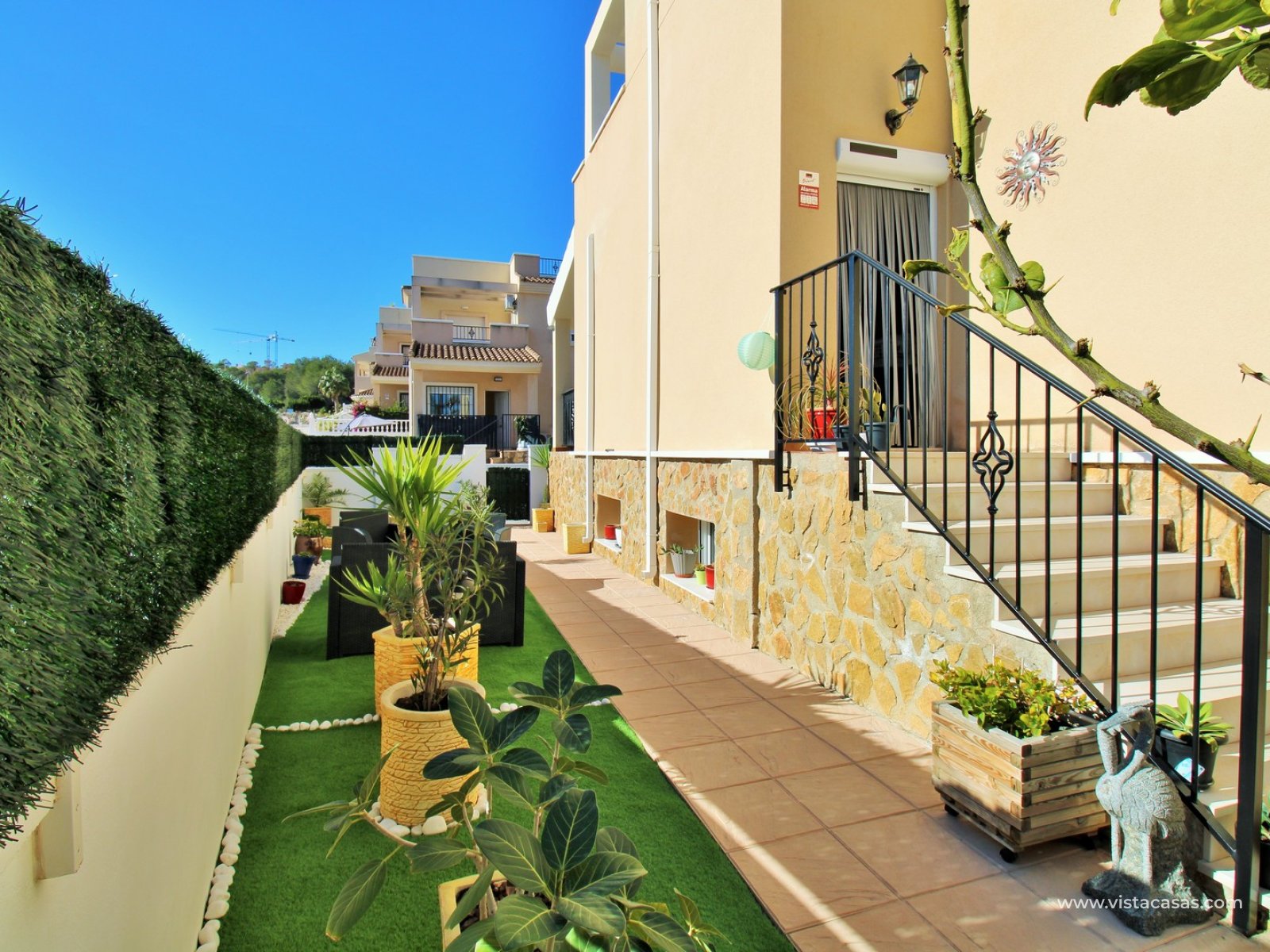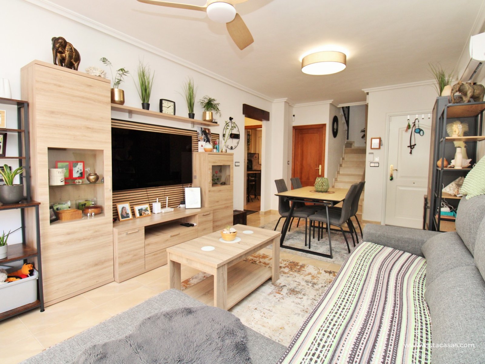 Located just 3km from the center of San Miguel de Salinas, this townhouse offers a peaceful setting while remaining close to essential amenities. The vibrant Villamartin Plaza, known for its dining options and prestigious golf course, is easily accessible, and the golden beaches of Orihuela Costa are only a 15-minute drive away.