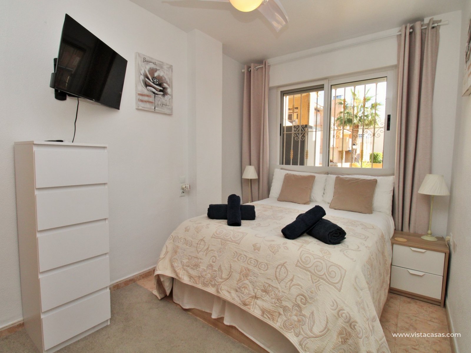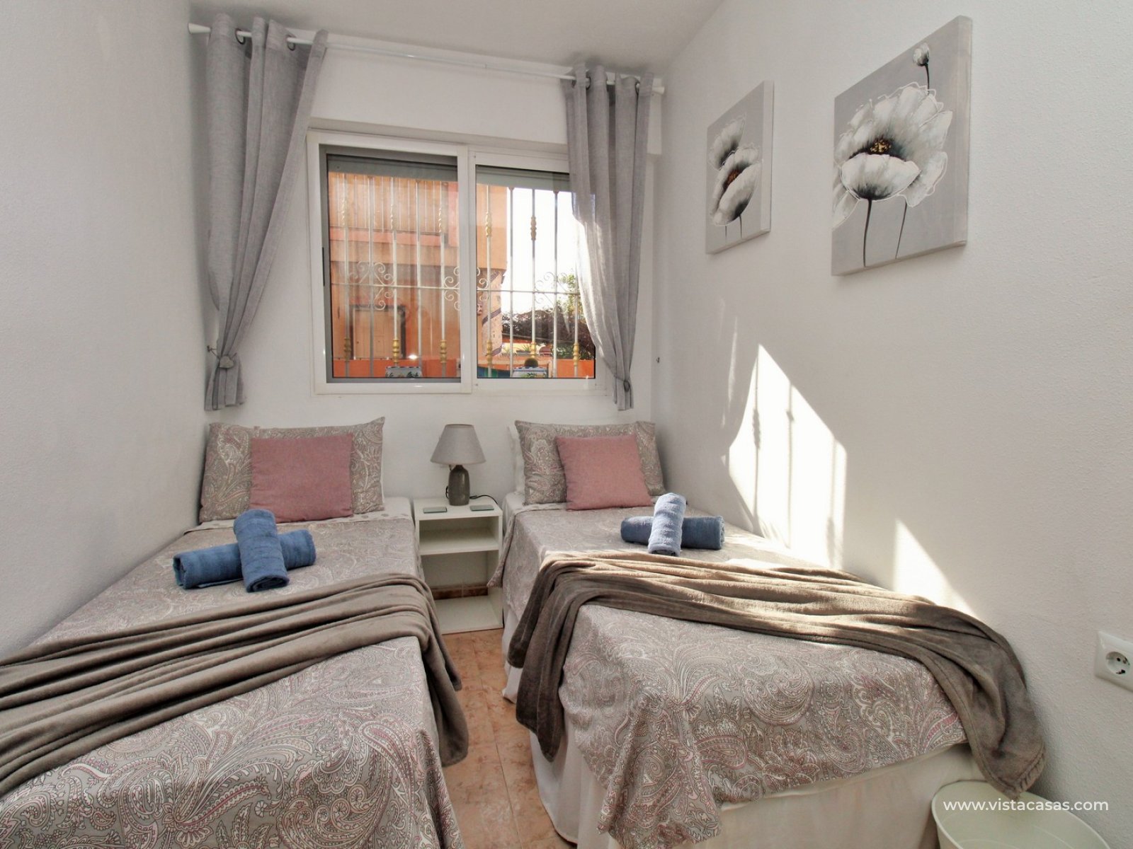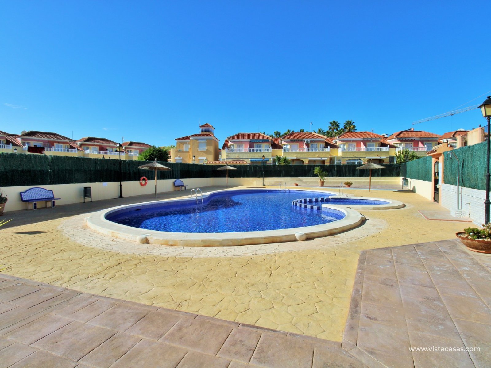 This charming two-bedroom ground-floor apartment is situated in the sought-after gated community of Amapolas I in La Zenia. Ideally positioned within walking distance of La Zenia’s popular Zenia Boulevard, a variety of restaurants, shops, and amenities, as well as the bustling Cabo Roig strip renowned for its vibrant nightlife, this property offers the perfect blend of convenience and lifestyle. Tucked away at the end of a quiet cul-de-sac with no passing traffic, the location is both peaceful and highly desirable. Residents also enjoy access to a beautifully maintained communal pool and secure off-road parking within the gated complex.