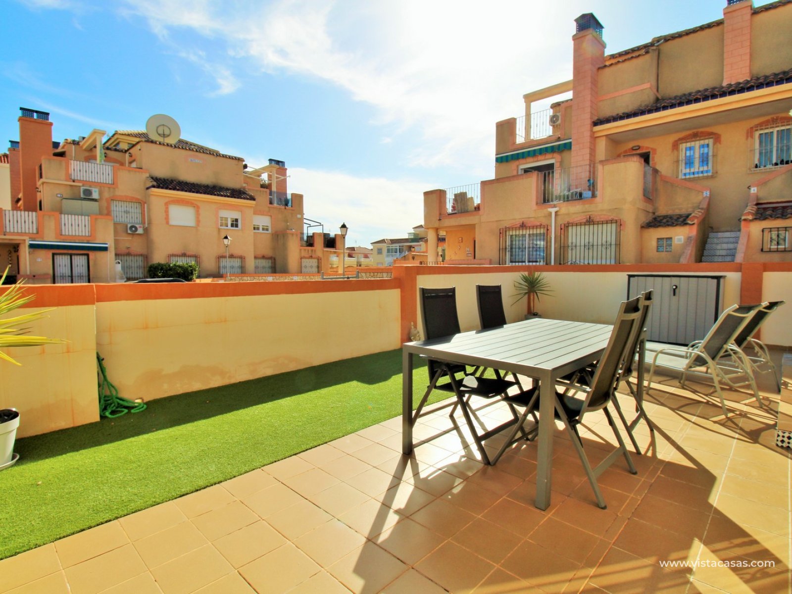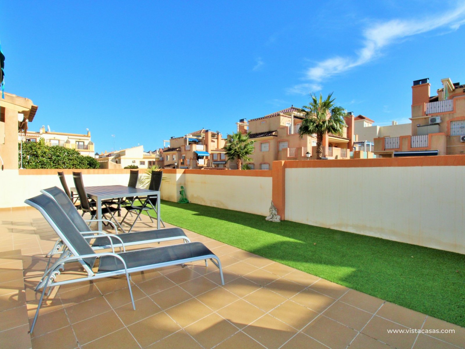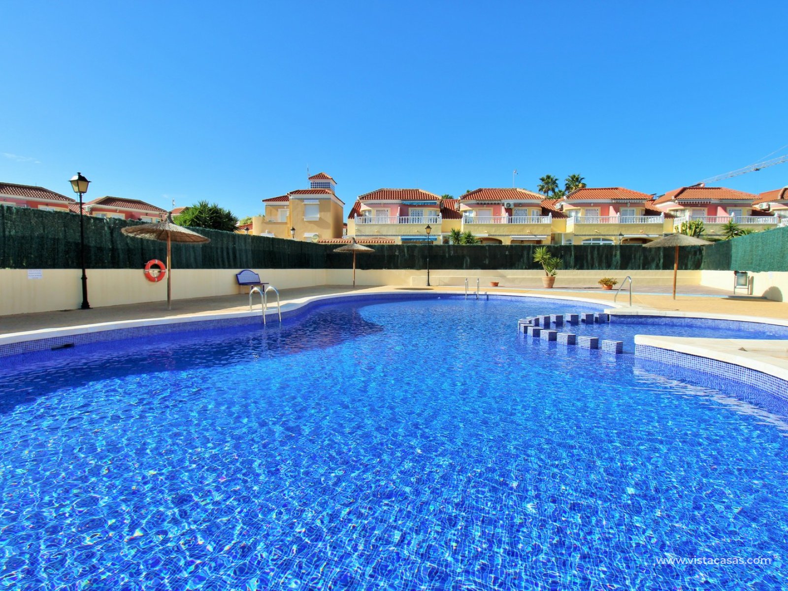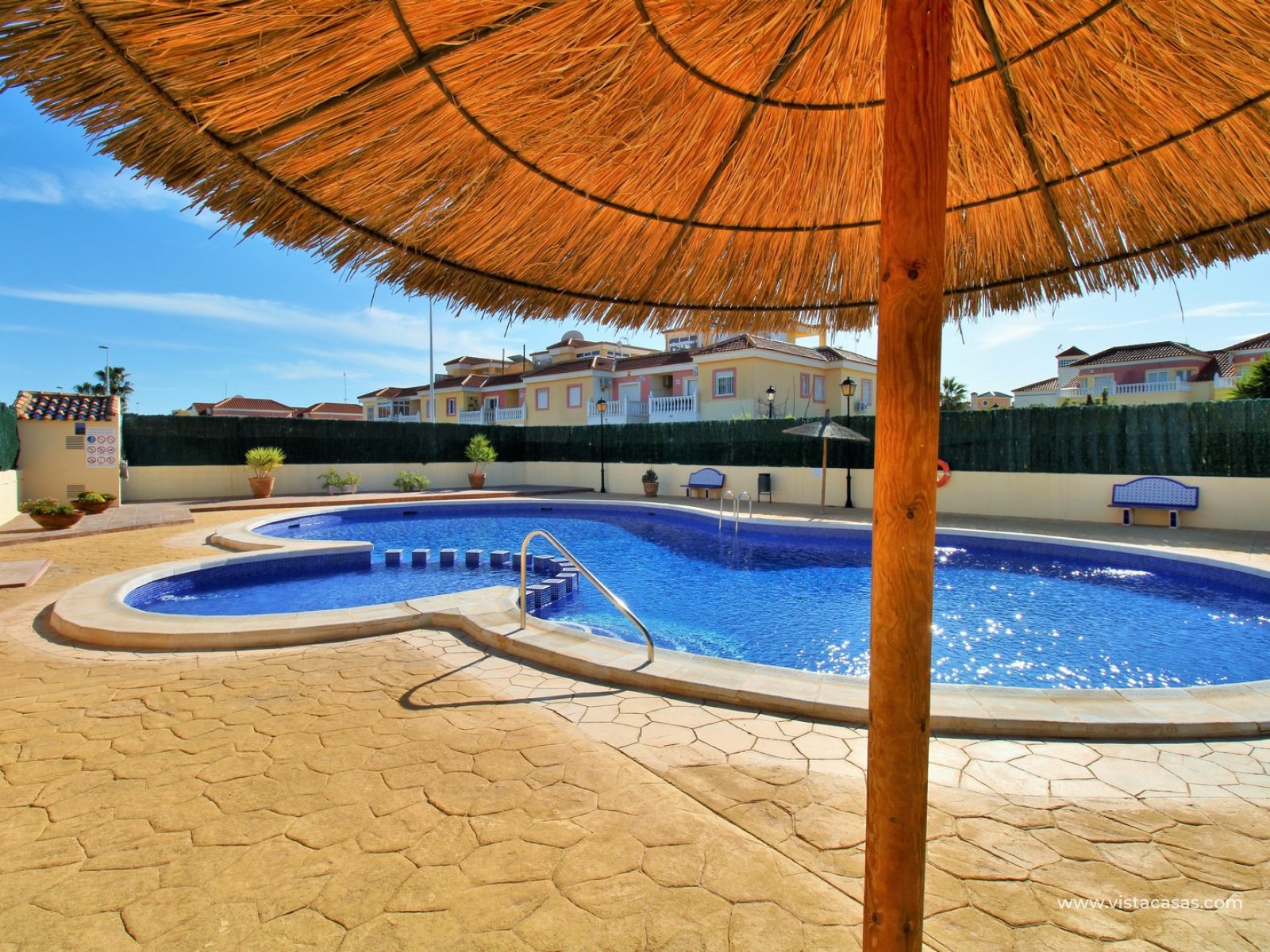 This charming two-bedroom ground-floor apartment is situated in the sought-after gated community of Amapolas I in La Zenia. Ideally positioned within walking distance of La Zenia’s popular Zenia Boulevard, a variety of restaurants, shops, and amenities, as well as the bustling Cabo Roig strip renowned for its vibrant nightlife, this property offers the perfect blend of convenience and lifestyle. Tucked away at the end of a quiet cul-de-sac with no passing traffic, the location is both peaceful and highly desirable. Residents also enjoy access to a beautifully maintained communal pool and secure off-road parking within the gated complex.