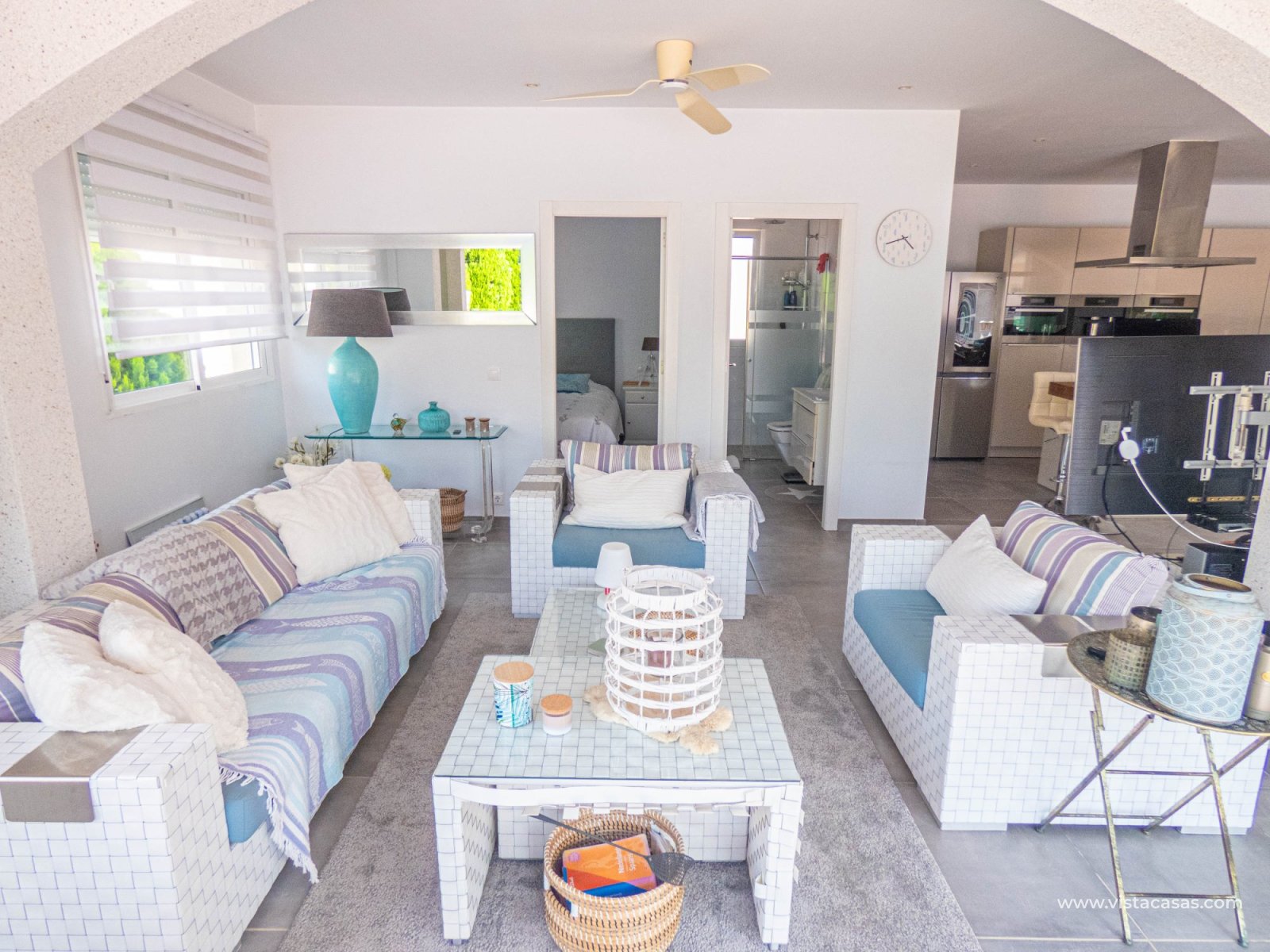 We offer for sale this BEAUTIFUL DETACHED VILLA & SUMMER HOUSE, which consists of a total of six bedrooms and four bedrooms and has an internal build size of 330m2. The plot is enclosed and is 1,400m2, which provides you with privacy as well as security, plus a double garage. As you walk up and through the main entrance, you have steps up to an enclosed glazed terrace which then provides you access to the villa. As you enter the main property, you walk into a large rectangular living room which sets the scene for what this property truly offers you! There is a fireplace to your left of the living area and at the other end there is a stairway that takes you up to the first floor. Immediately to your left you have the first of the bedrooms, which is a good size and has fitted wardrobes plus the benefit of your own private en-suite shower room, as you come back and walk past the elegant fireplace you have a small hallway that provides access to the family bathroom and then the next bedroom with fitted wardrobes, this is then followed by the third bedroom, which the current owners have made into an office, but can easily put back to its former use as a bedroom. As you walk back to the living area and further down you come into what we feel is a beautiful relaxing area, with some amazing views over the private pool and towards the Summer House, walking further round you have a good size kitchen with a storeroom plus a utility room providing ample room for cooking. Coming out of the kitchen you then have the stairway that takes you up to the first floor, where you have another bedroom which is a decent size and has fitted wardrobes and access out to an upper terrace/solarium. Moving downstairs and out of the main house, there is an outer stairway that takes you down to a unique Man Cave/Bar, with seating and a bar at the far end, this is followed by a toilet and then another bedroom to your right with fitted wardrobes and a shower, lastly on this level you have a traditional wooden sauna, what more can I say, apart from if you think this is it, you are mistaken. Walking up and outside, this where you are taken to a new level of comfortability and luxury, you have a double garage to your right, with ample space for two cars, this is followed by a gorgeous pool which is 18m by 5m, then the gardens, that wrap around the walls providing some beautiful planting and colour throughout the year. Standing there, thinking it can´t get any better, your eyes are drawn to what is simple the BEST SUMMER HOUSE I have seen since listing properties for sale in Spain. There is a terrace to sit and watch what is happening in the pool with an awning above to provide some shade as and when required. There are glass sliding doors that can provide a fully enclosed summer house or they can be moved to the side creating a seamless transition from the outside area to the summer house itself, it really does take your breathe away. You have a relaxing lounge area to your left and to your right you have a dining area for entertaining your friends and family, there is a modern well thought kitchen area with a breakfast bar area providing a natural break between the kitchen and the dining area, the left of the kitchen is a shower room followed by another bedroom. This Summer House has been designed and constructed to an extremely high standard and offers YOU an opportunity, you will want to see, and includes the following benefits: Sold Part Furnished Amazing Private Pool Double Garage Fabulous Plot Air-conditioning throughout Oli Central Heating Traditional Wooden Sauna Stunning Summer House The villa is close to all the local amenities, such as bars, restaurants, and shops and less than a 10 minute drive from the beach, this once in a lifetime opportunity has come available and is listed to sell at 887,500 euros, viewing is by appointment only as you would imagine for a property such as this, so do not wait, contact us now to see this AMAZING OPPORTUNITY.