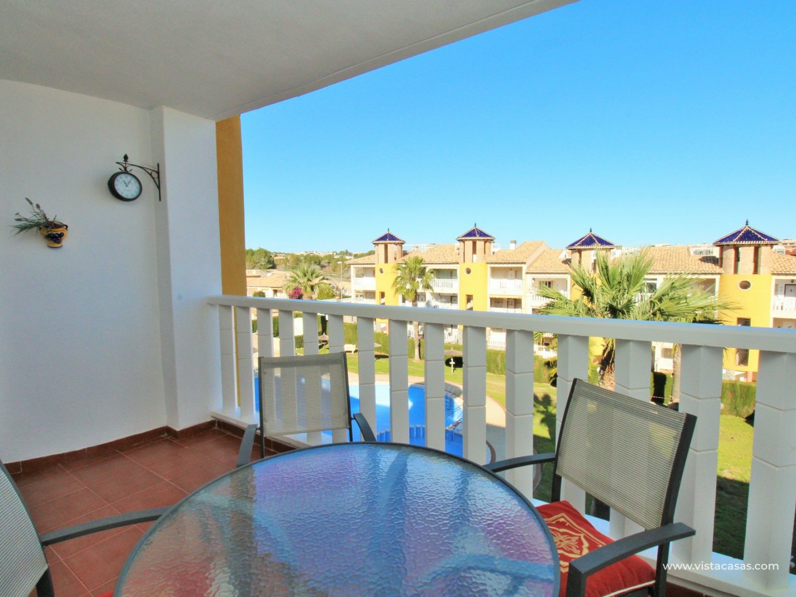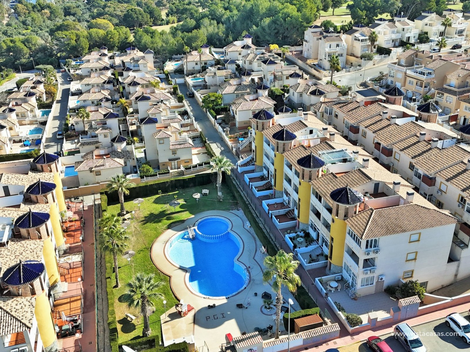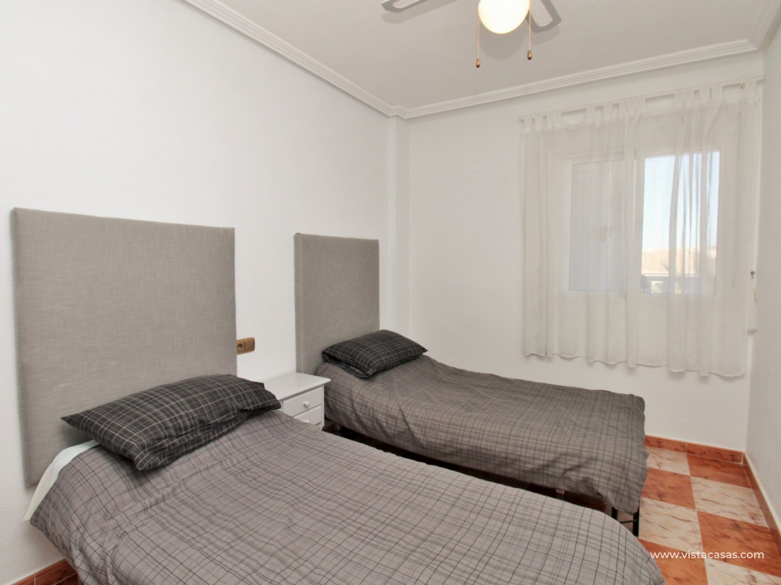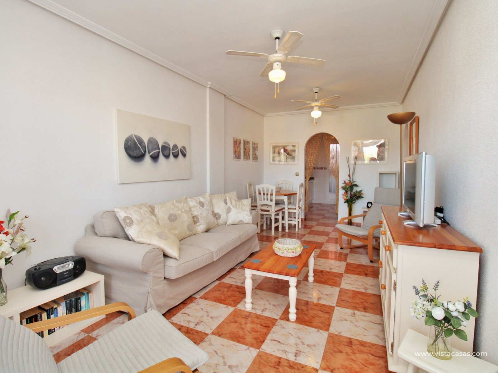 Well presented 2 bedroom top floor Violeta style apartment with an 18,87m2 roof solarium overlooking the communal pool & gardens for sale in the popular urbanisation of Pinada Golf I in Villamartin, just a short stroll to the Villamartin Plaza and golf course. The property has been well kept, with one owner since new, and is sold furnished.