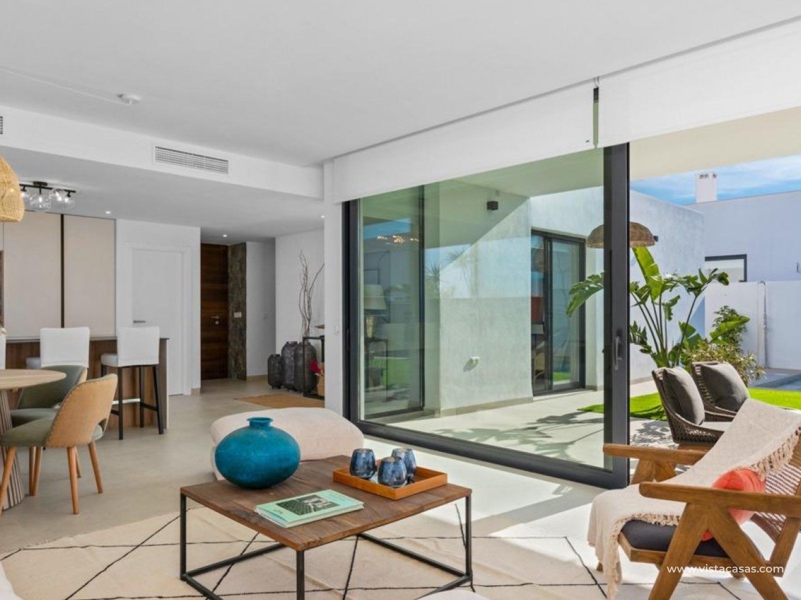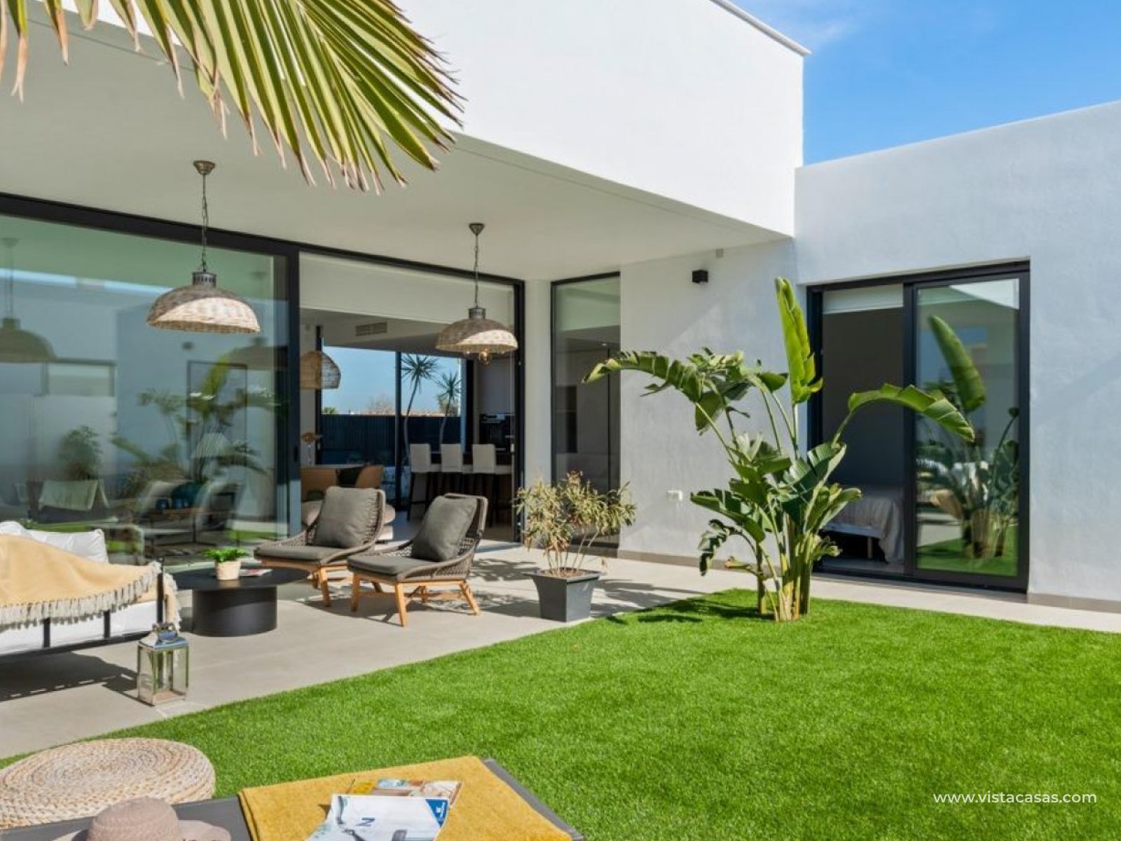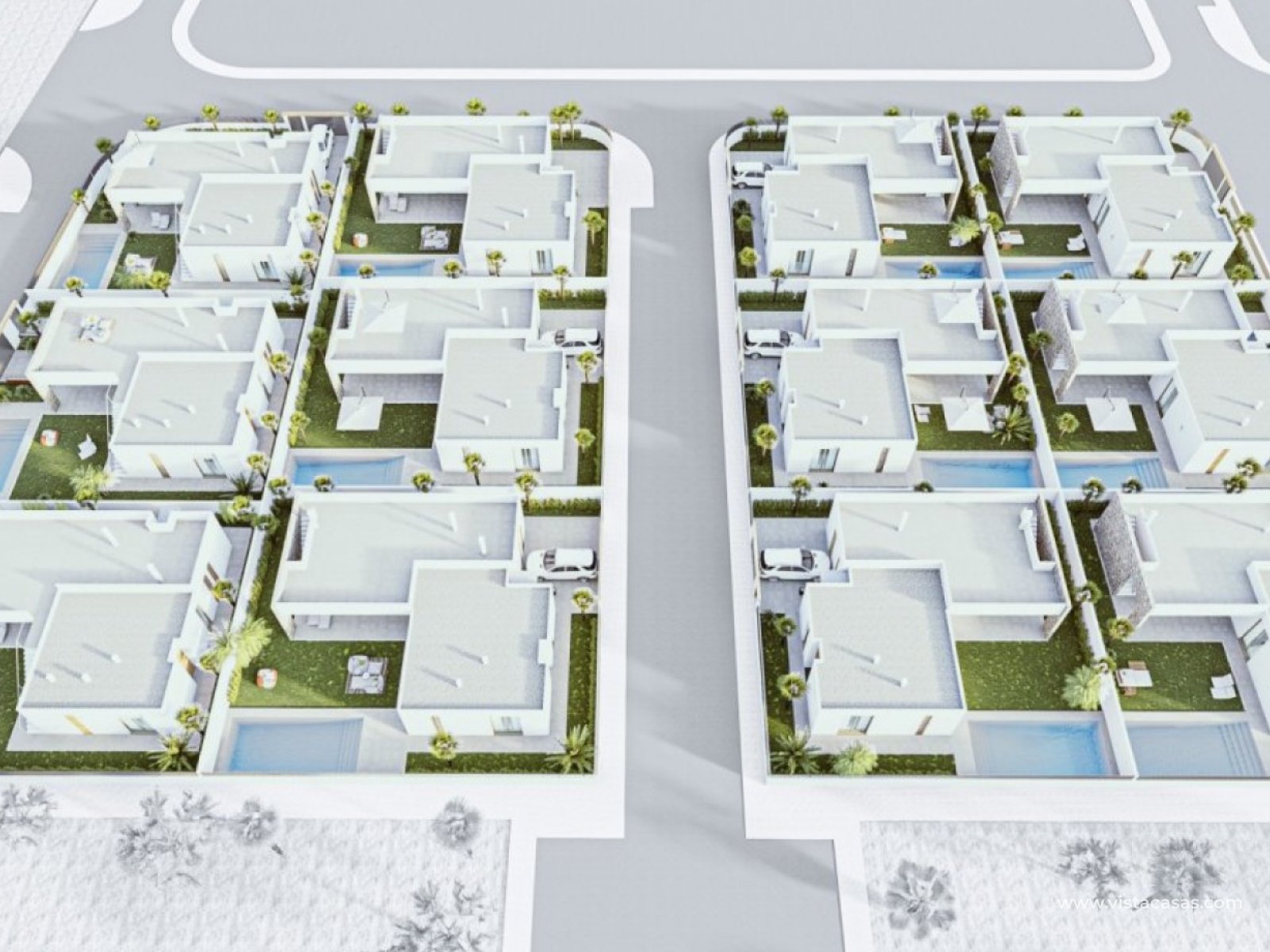 NEW BUILD VILLAS IN MAR DE CRISTAL New Build one level villa with 3 bedrooms, 2 bathrooms and private solarium at 500 meters from the Mar De Cristal beaches. Villas has modern open plan kitchen with the living room, where high sliding windows has access to the garden with private swimming pool and parking space. Mar De Cristal is a coastal town in the middle of beautiful nature and nature parks of which you find photo’s added. This is one of the most beautiful places in Spain and the whole world. In Mar De Cristal you will find some nice restaurants and a supermarket. The nice restaurants of Los Belones are only 2 km’s away, The 36 km beaches of La Manga are a 5 minutes drive. Magical Cabo De Palos and Portman is only a 5 minutes drive. The big shopping centre of Cartagena is less than a 10 minutes drive. Murcia Corvera airport is 30 minutes away, Alicante airport 55 minutes.