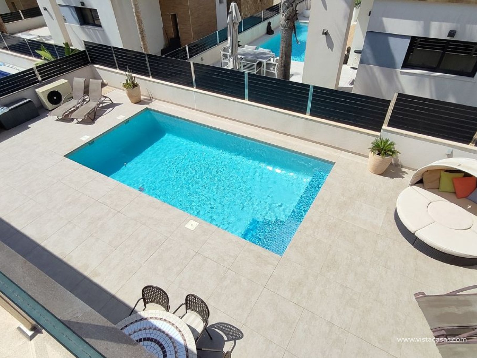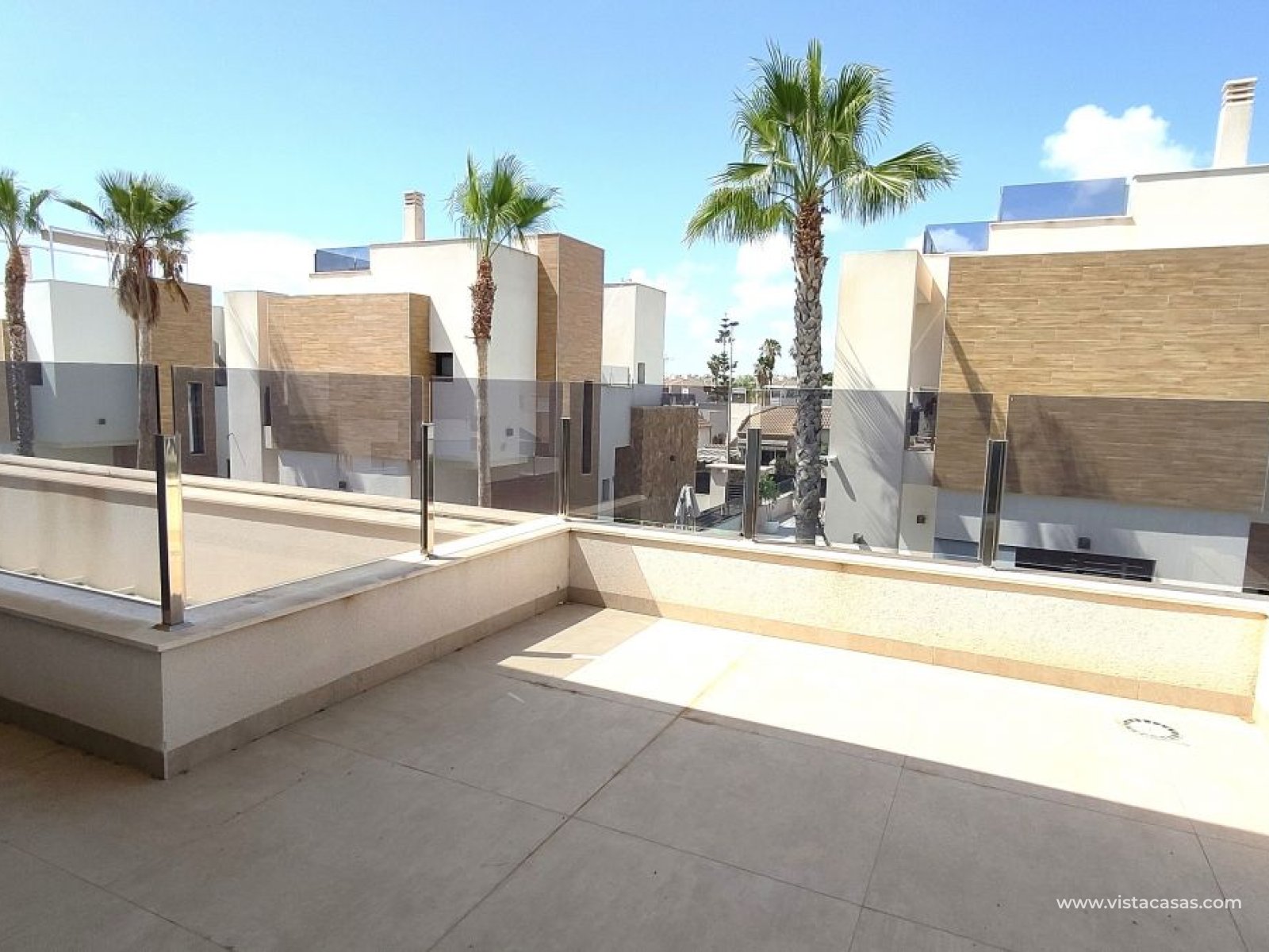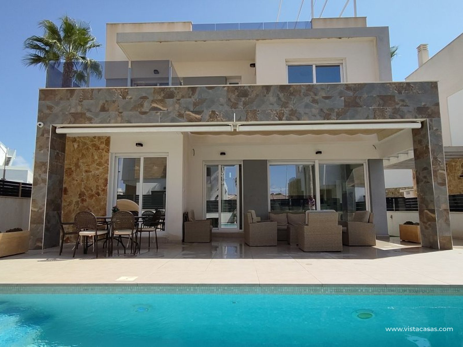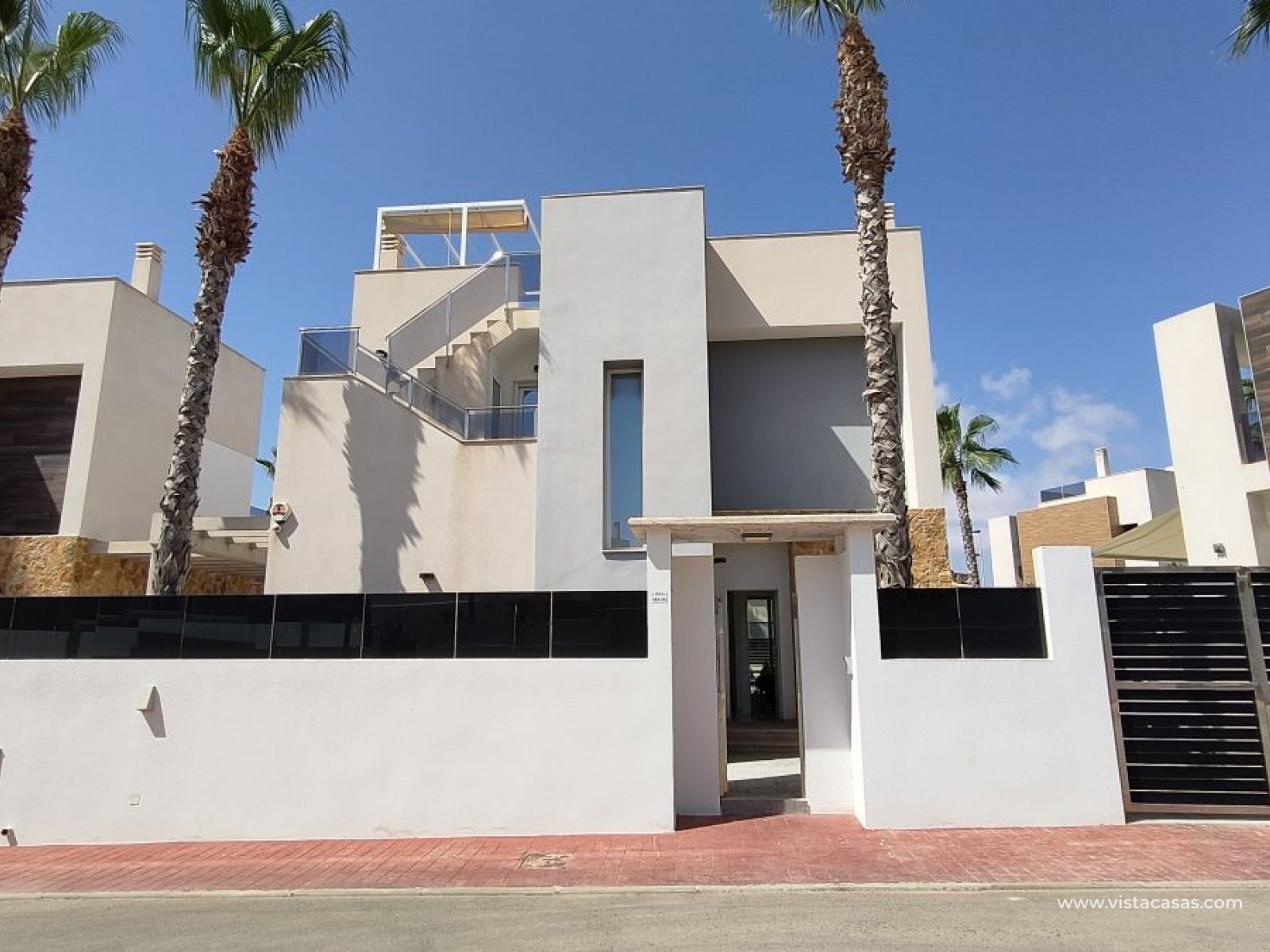 Exclusive South-Facing Villa Near La Mata Beach – Prime Location & Stunning Sea Views Discover this magnificent luxury villa, built in 2018, in one of the most sought-after areas of the southern Costa Blanca. Ideally positioned just a 5-minute walk from La Mata Beach, this stunning home offers a prime coastal location, breathtaking sea views, and sun all day thanks to its perfect south-facing orientation. Situated within the prestigious El Amanecer I Villas complex, this property is surrounded by pristine beaches, beautiful coastal landscapes, fine dining restaurants, charming cafés, and all essential amenities—ensuring a relaxed and vibrant Mediterranean lifestyle. This spacious villa features 3 elegantly designed bedrooms with fitted wardrobes and 3 modern bathrooms. The bright open-plan living area seamlessly connects to a stylish fully equipped kitchen, while large windows flood the space with natural light, enhancing the home’s warm and inviting atmosphere. Step onto the covered terrace, where you can unwind while overlooking your heated private pool, surrounded by a lush, beautifully landscaped garden—your own piece of paradise. The upper level offers access to a large terrace from both bedrooms (both with en-suit bathrooms), leading to the expansive rooftop solarium. From here, enjoy unparalleled panoramic sea views, complemented by a BBQ area and outdoor dining space—ideal for relaxing or entertaining while soaking in the Mediterranean breeze. Designed for maximum comfort and luxury, this villa is equipped with high-tech appliances, ducted air conditioning (hot & cold), underfloor heating, electric shutters & awnings, heated pool and a state-of-the-art alarm system. It also features private covered parking within a secure gated community with access to two streets.