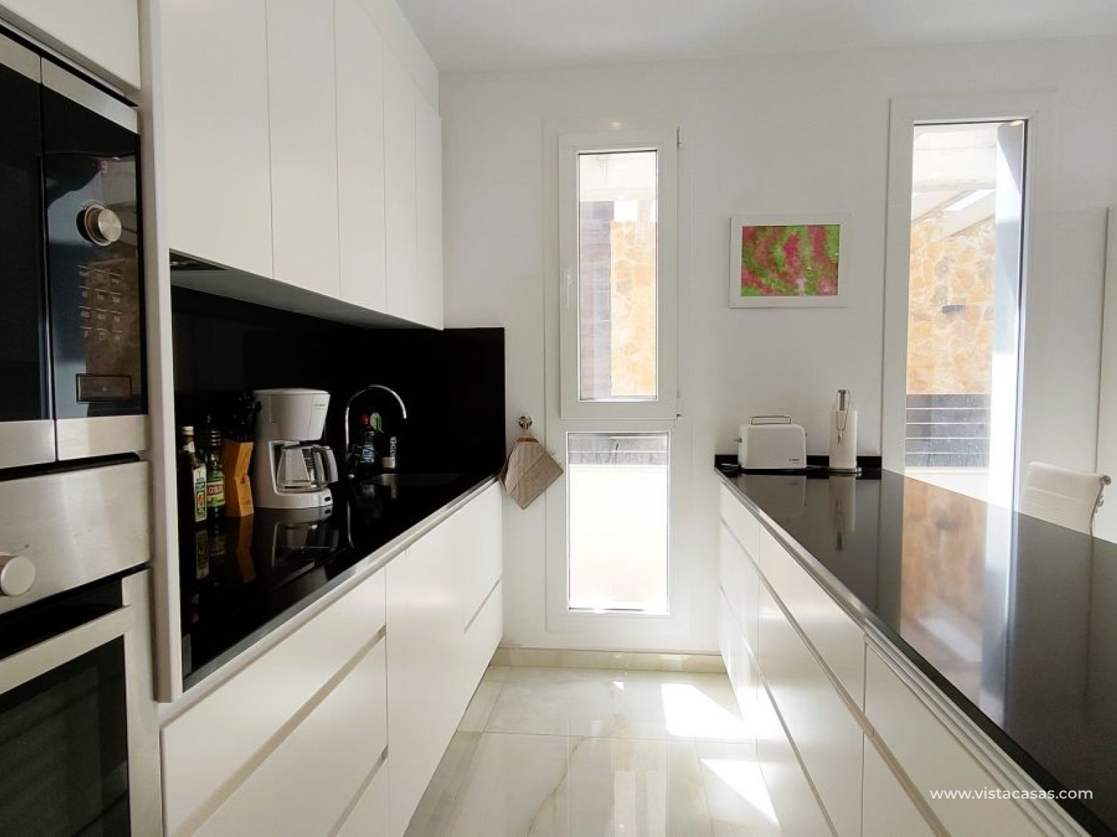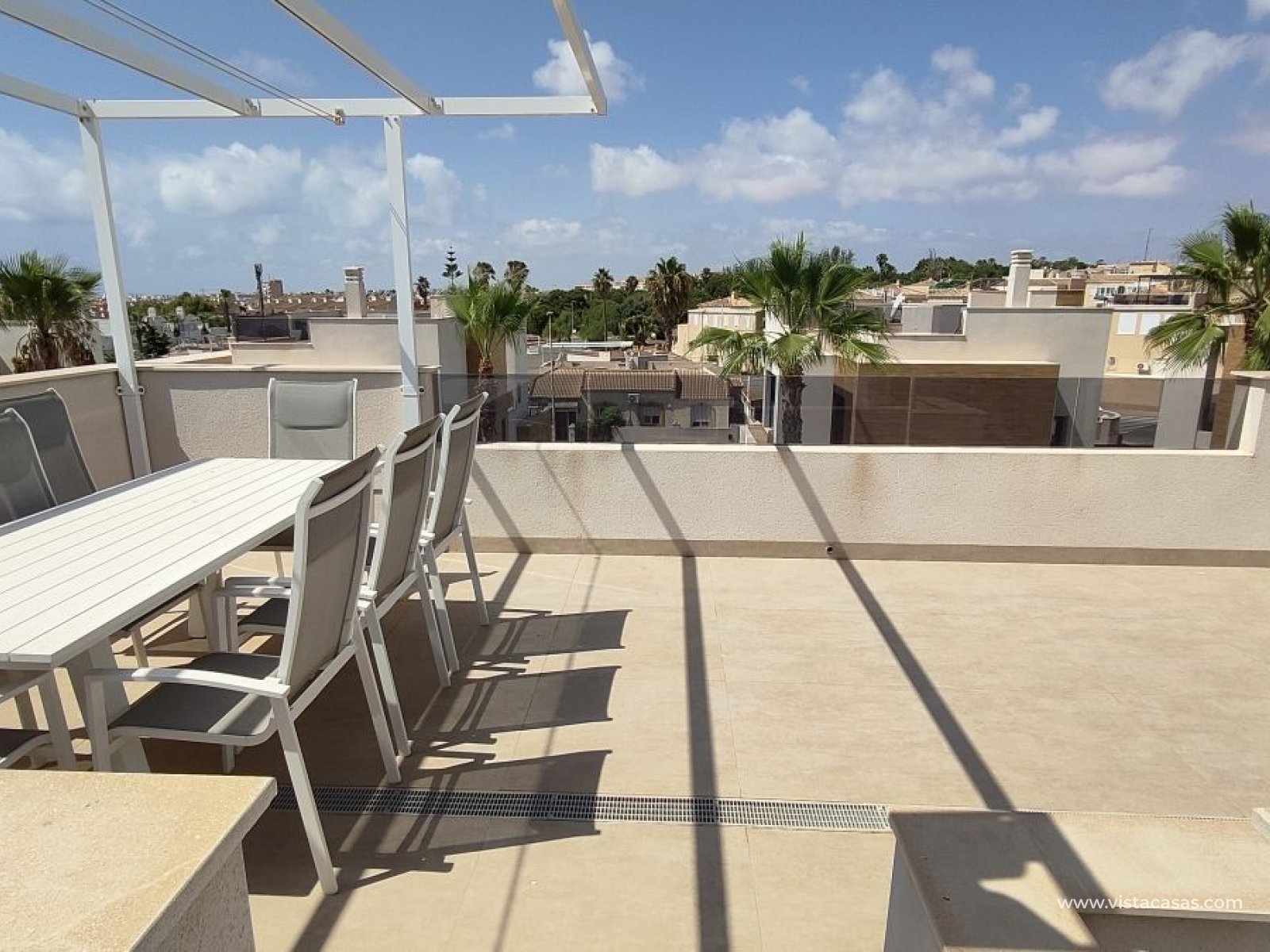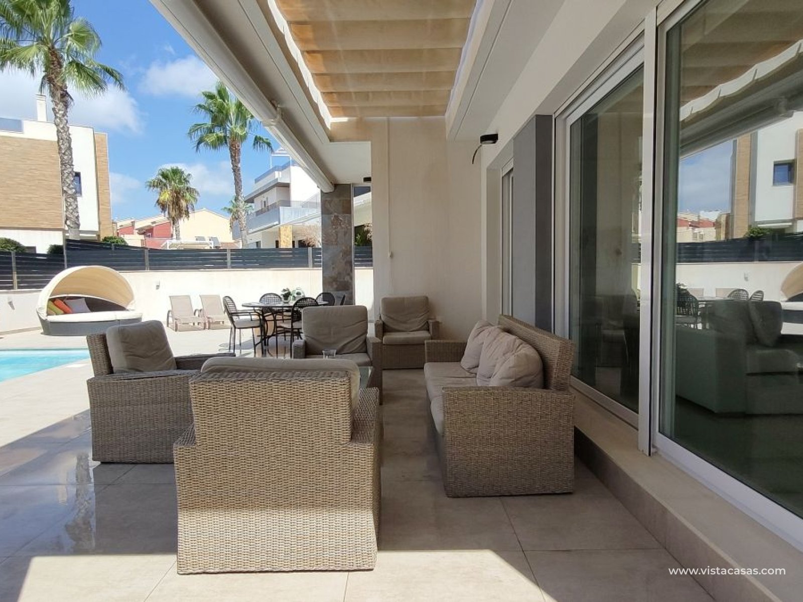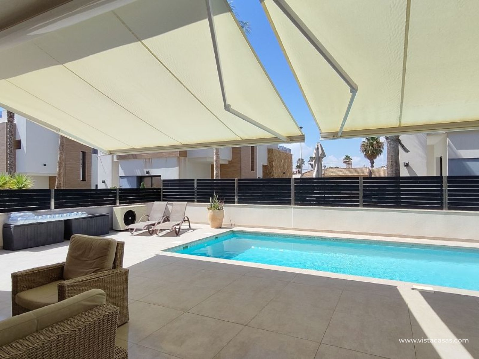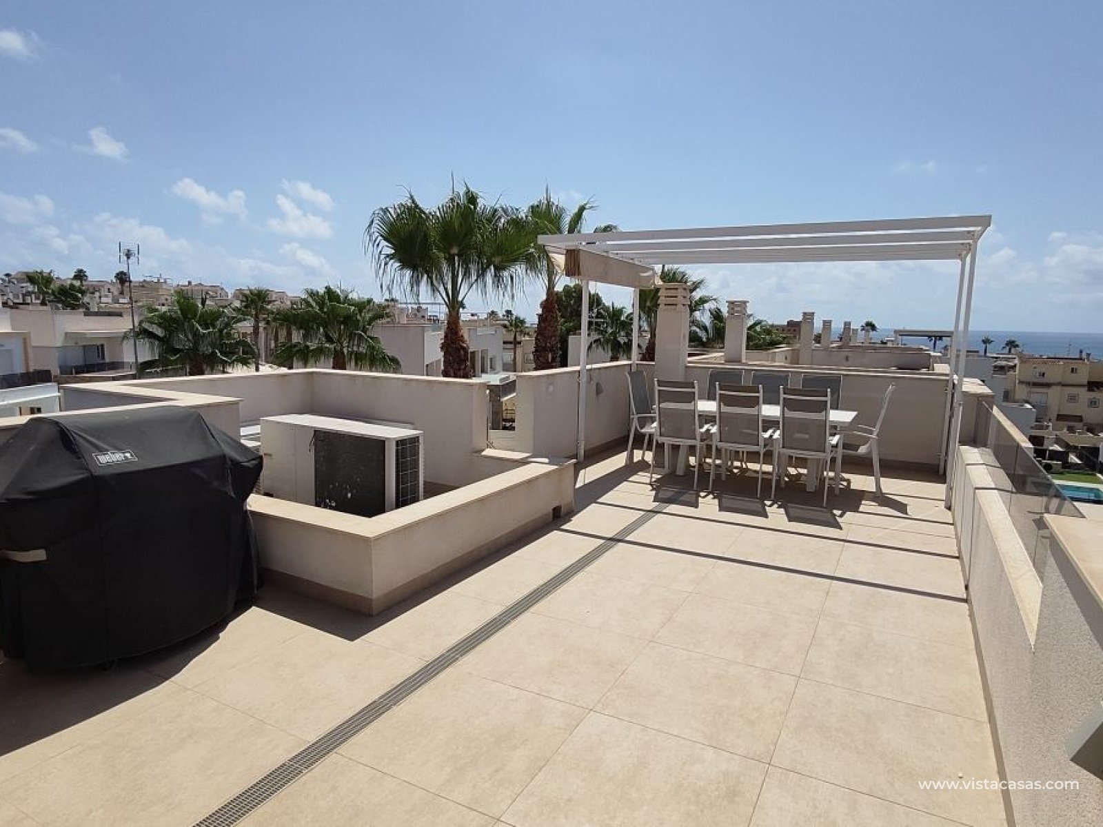 Exclusive South-Facing Villa Near La Mata Beach – Prime Location & Stunning Sea Views Discover this magnificent luxury villa, built in 2018, in one of the most sought-after areas of the southern Costa Blanca. Ideally positioned just a 5-minute walk from La Mata Beach, this stunning home offers a prime coastal location, breathtaking sea views, and sun all day thanks to its perfect south-facing orientation. Situated within the prestigious El Amanecer I Villas complex, this property is surrounded by pristine beaches, beautiful coastal landscapes, fine dining restaurants, charming cafés, and all essential amenities—ensuring a relaxed and vibrant Mediterranean lifestyle. This spacious villa features 3 elegantly designed bedrooms with fitted wardrobes and 3 modern bathrooms. The bright open-plan living area seamlessly connects to a stylish fully equipped kitchen, while large windows flood the space with natural light, enhancing the home’s warm and inviting atmosphere. Step onto the covered terrace, where you can unwind while overlooking your heated private pool, surrounded by a lush, beautifully landscaped garden—your own piece of paradise. The upper level offers access to a large terrace from both bedrooms (both with en-suit bathrooms), leading to the expansive rooftop solarium. From here, enjoy unparalleled panoramic sea views, complemented by a BBQ area and outdoor dining space—ideal for relaxing or entertaining while soaking in the Mediterranean breeze. Designed for maximum comfort and luxury, this villa is equipped with high-tech appliances, ducted air conditioning (hot & cold), underfloor heating, electric shutters & awnings, heated pool and a state-of-the-art alarm system. It also features private covered parking within a secure gated community with access to two streets.