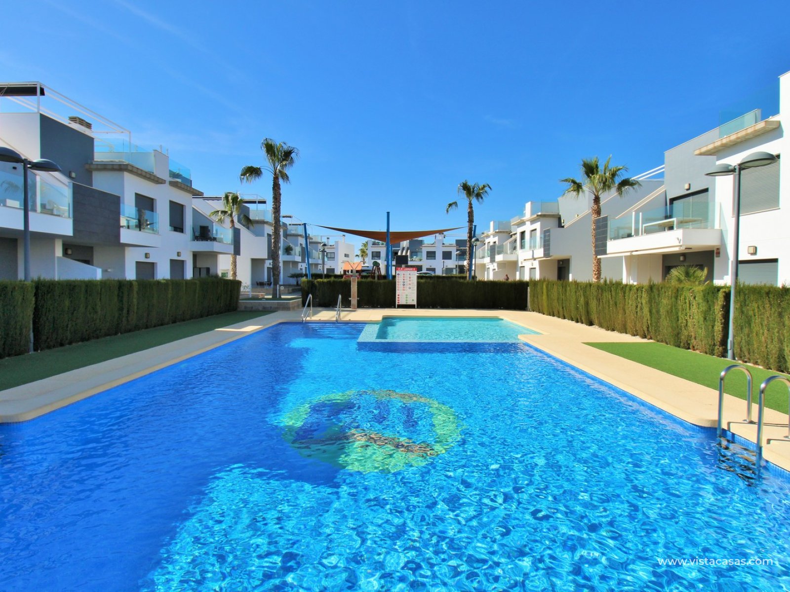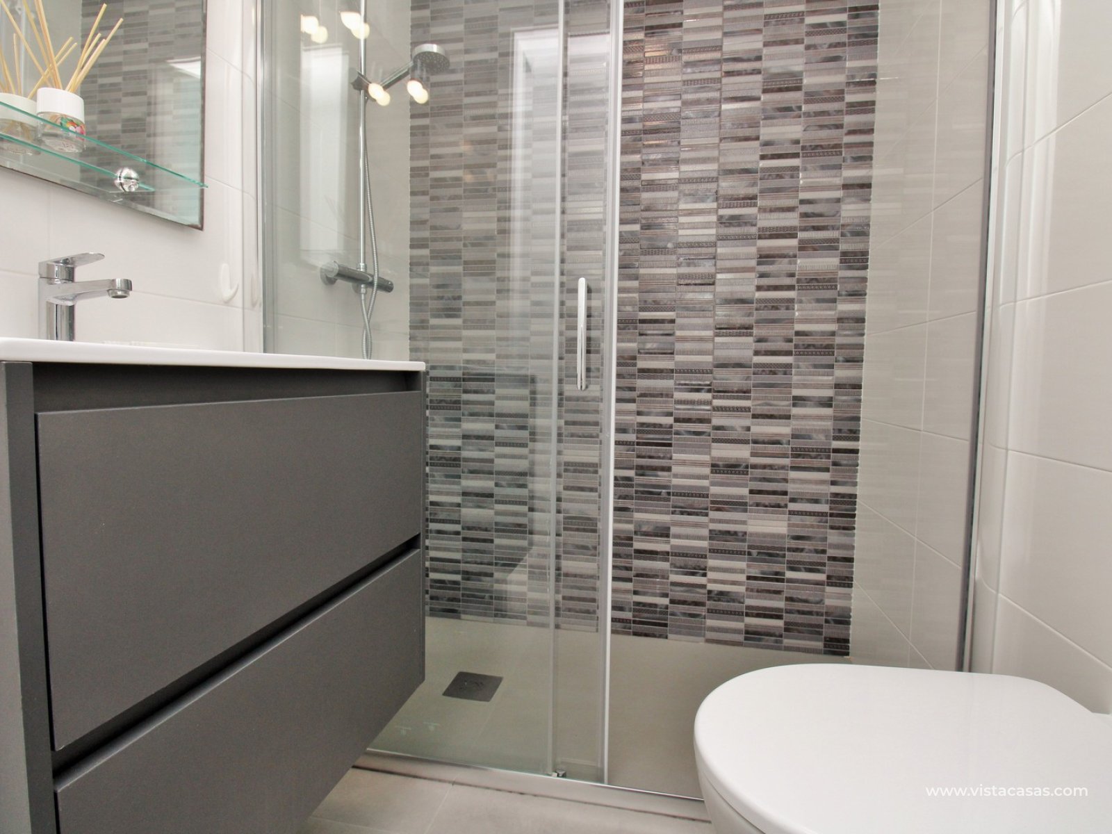 Beautifully presented modern two-bedroom, two-bathroom ground-floor apartment situated in a the highly sought-after gated community of Lamar Resort II in Pilar de la Horadada. Just a few metres from the property, you’ll find two stunning communal pool areas, offering the perfect spot to unwind and soak up the sun. The apartment benefits from two private terraces—one east-facing and one west-facing—so you can enjoy the sunshine throughout the day or find shade when needed. Whether you’re sunbathing, dining al fresco, or simply relaxing with a drink and watching the world go by, these outdoor spaces provide a wonderful extension of your living area.