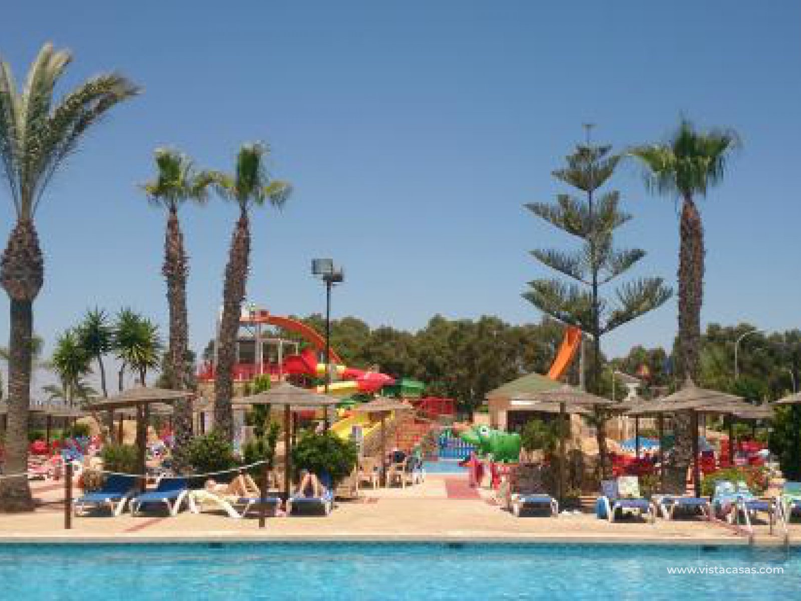 The bus stop is 30 metres away and the local shops, bars and restaurants are a short, flat walk. There is even an aquapark for the children!