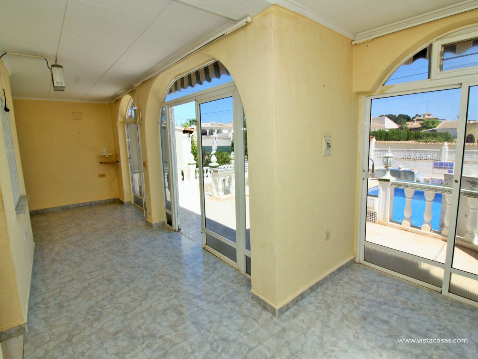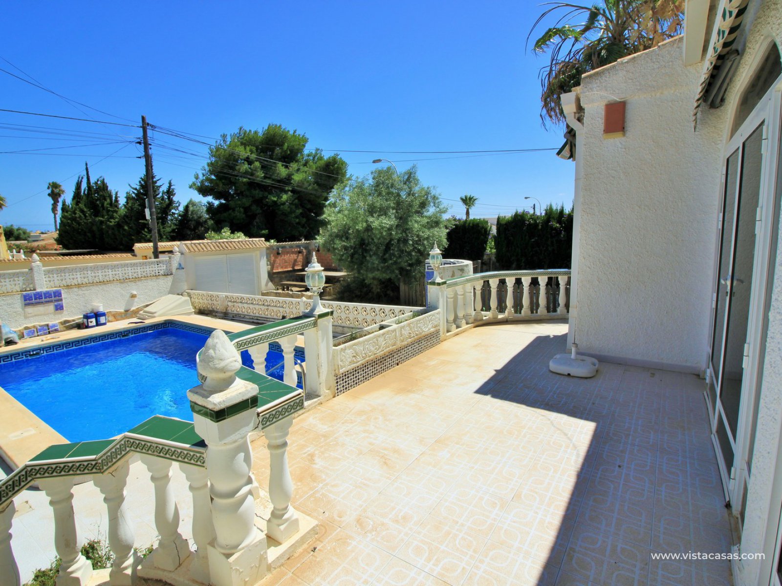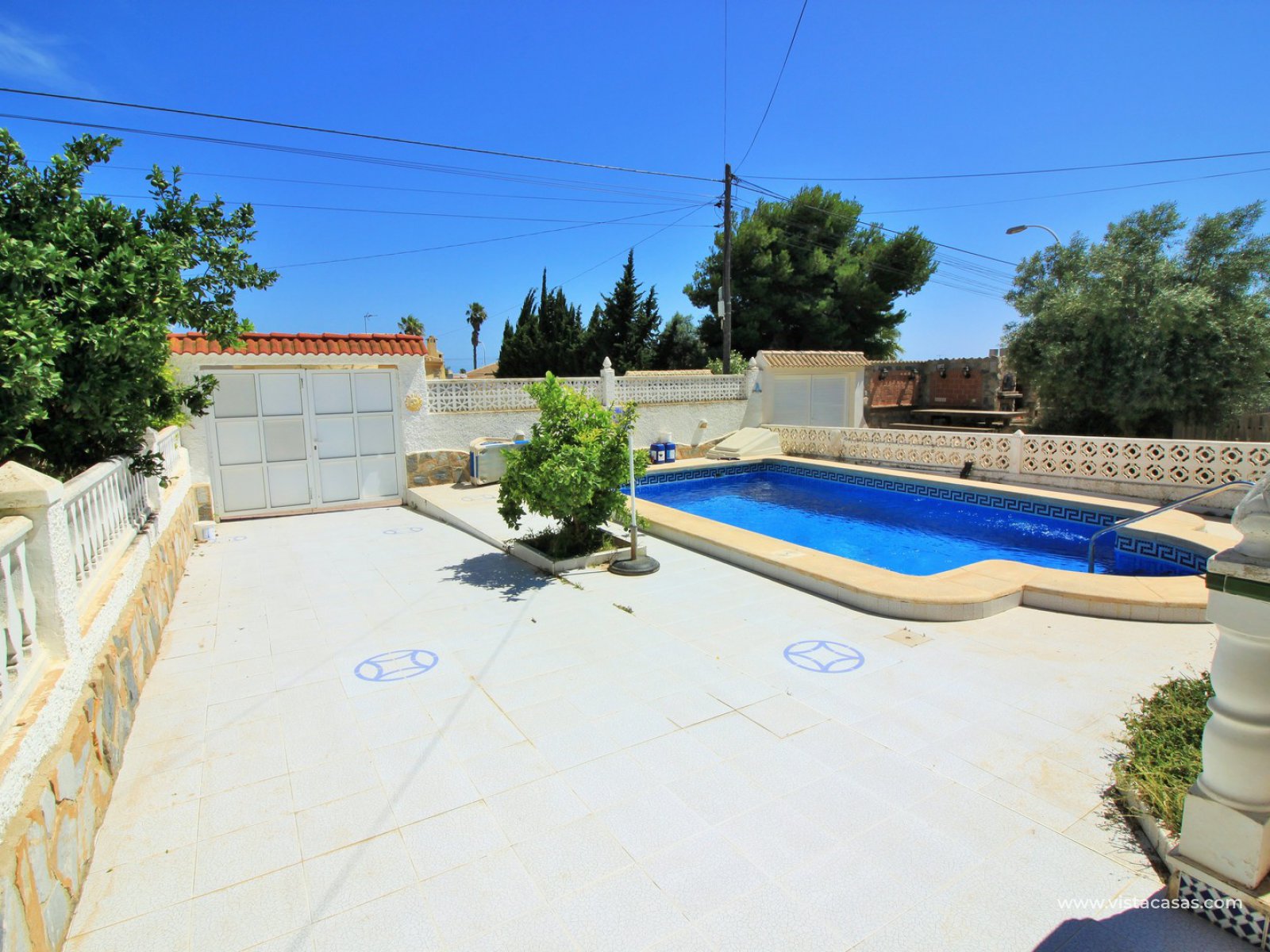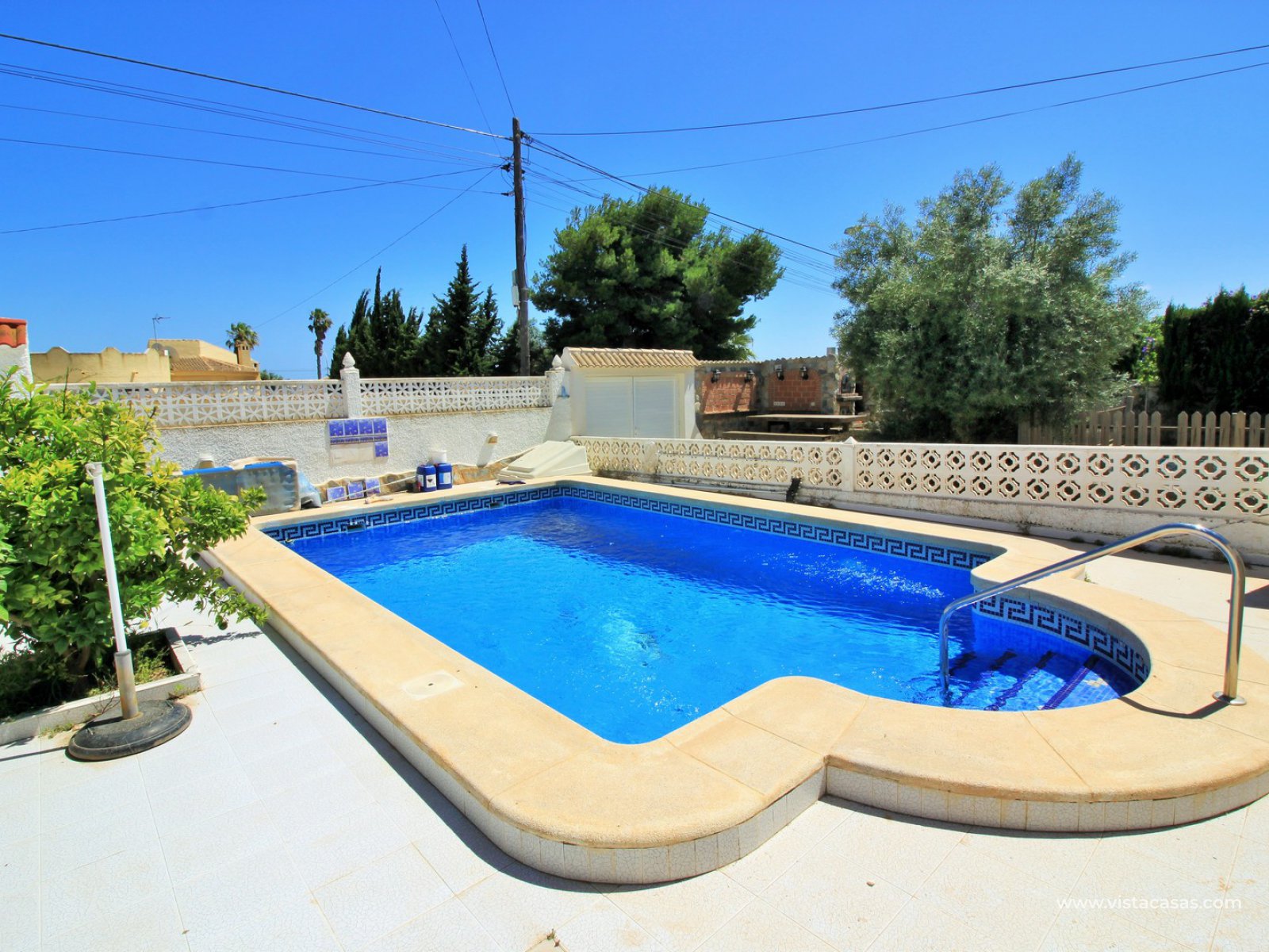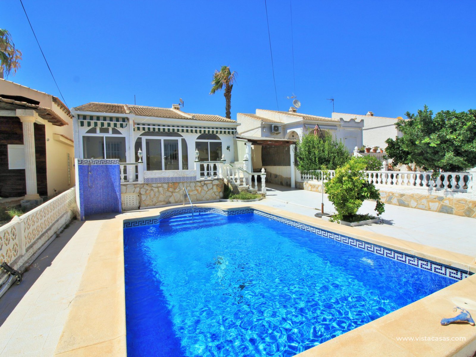 This South facing detached villa with private plot and pool is situated in a quiet and wide street in the popular residential area of La Siesta, close to Torrevieja.