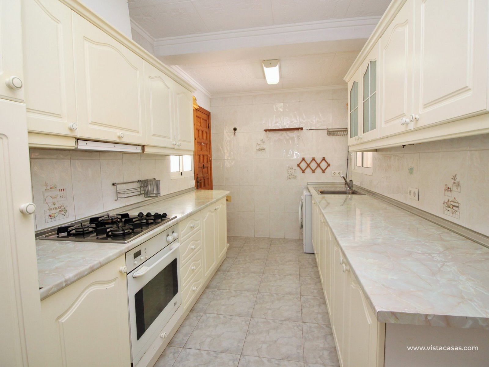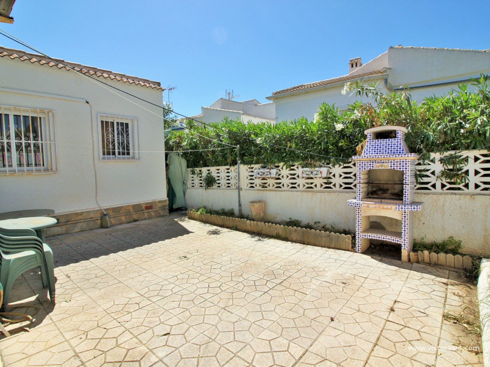 The original owners of the villa extended to make it 3 bedrooms and 2 bathrooms (1 en-suite) however 2 of the bedrooms are connected. If you only require 2 bedrooms then the extra room could become a dining room or office/study, or you could combine both to make a master suite with dressing room and the en-suite shower room which already exists. The galley kitchen is accessed through double doors off the living room and has another door leading to the side of the plot and the rear terrace area which has a built-in BBQ. The property has central heating and air-conditioning.