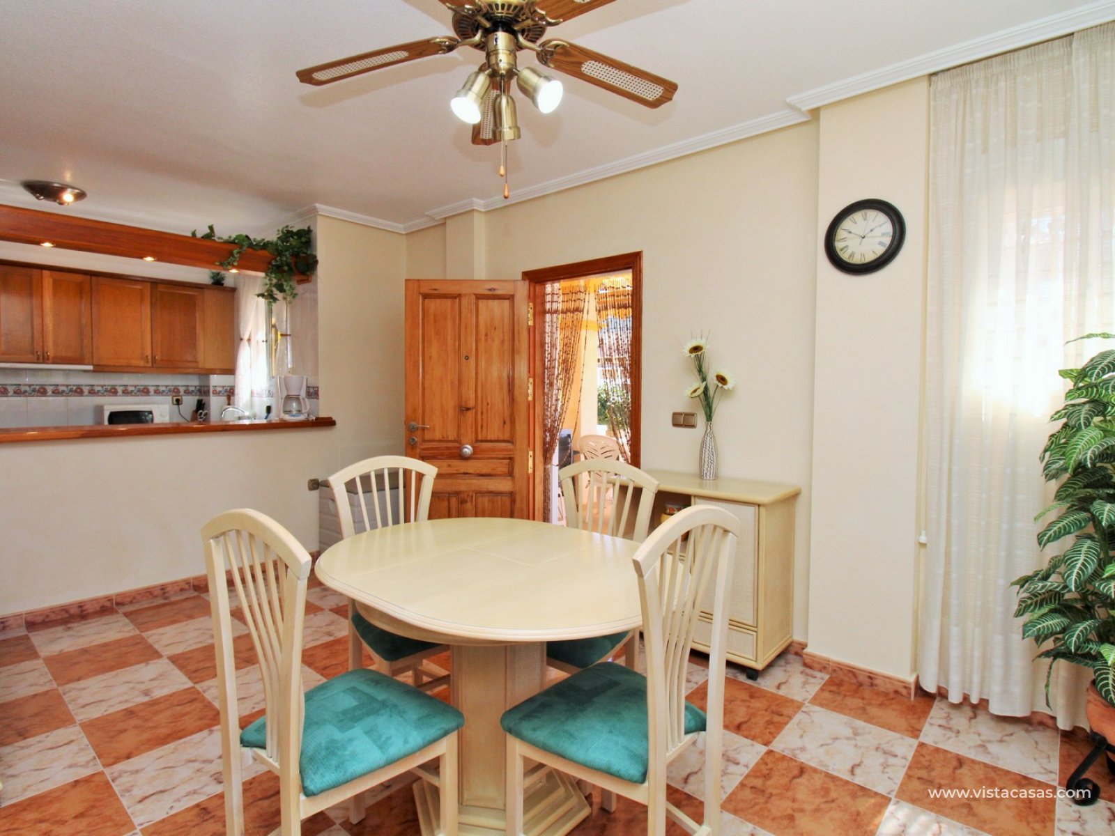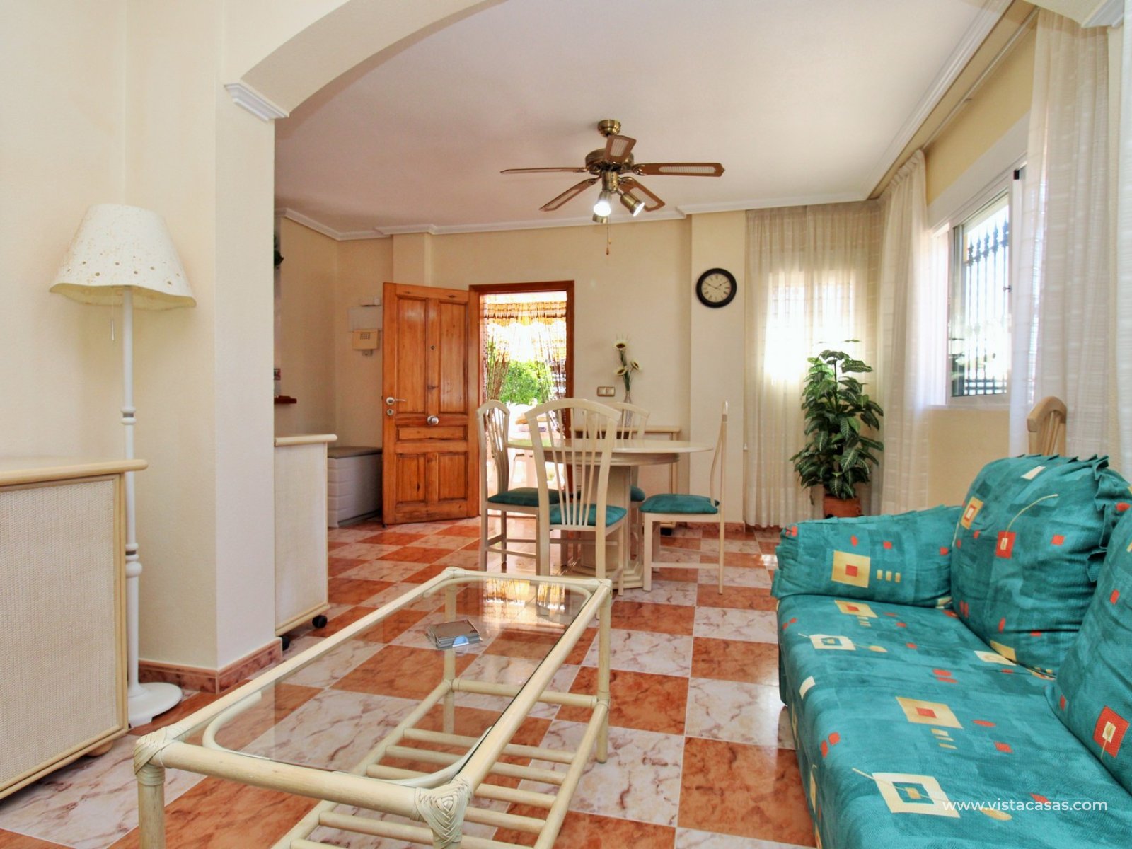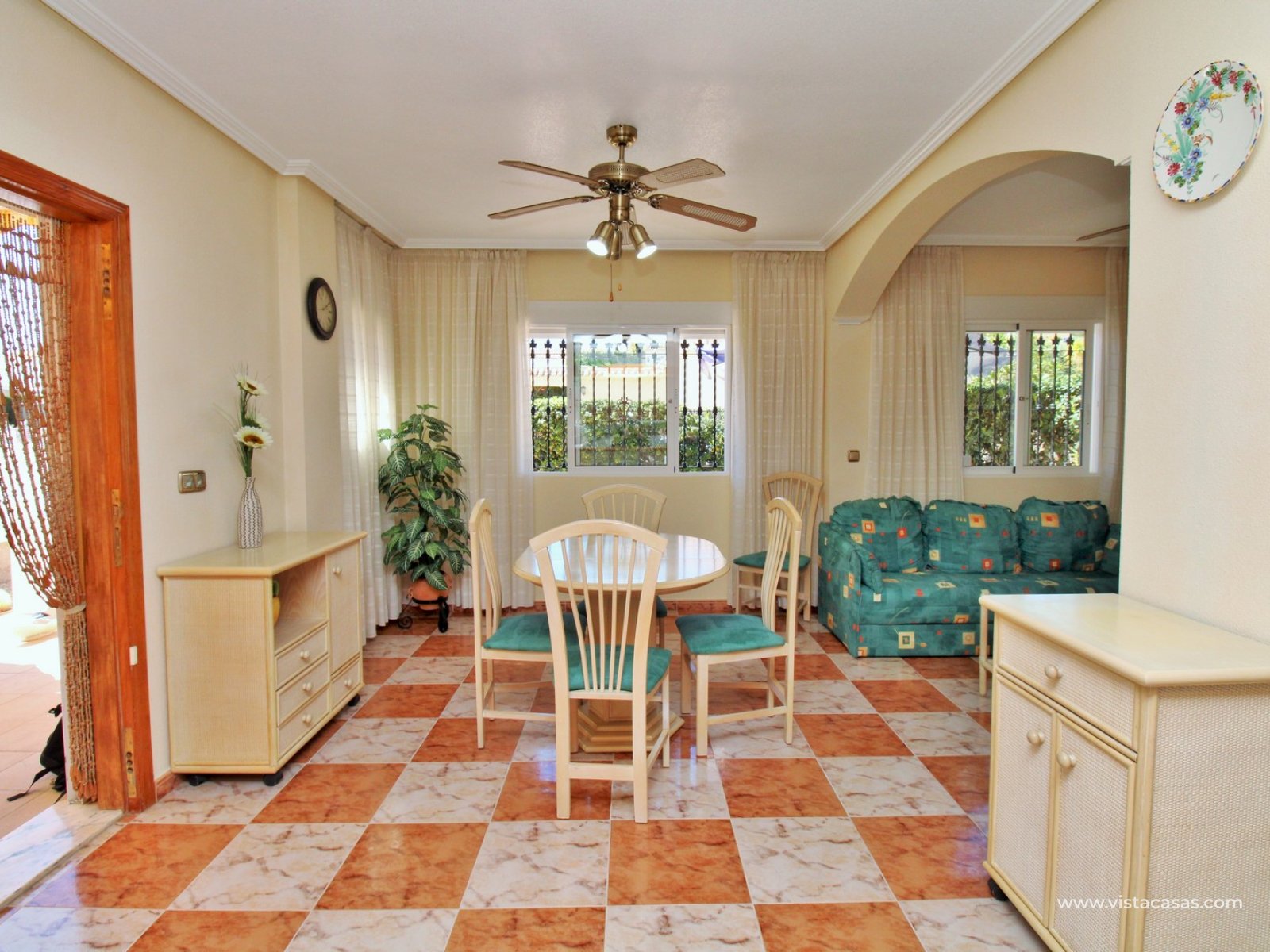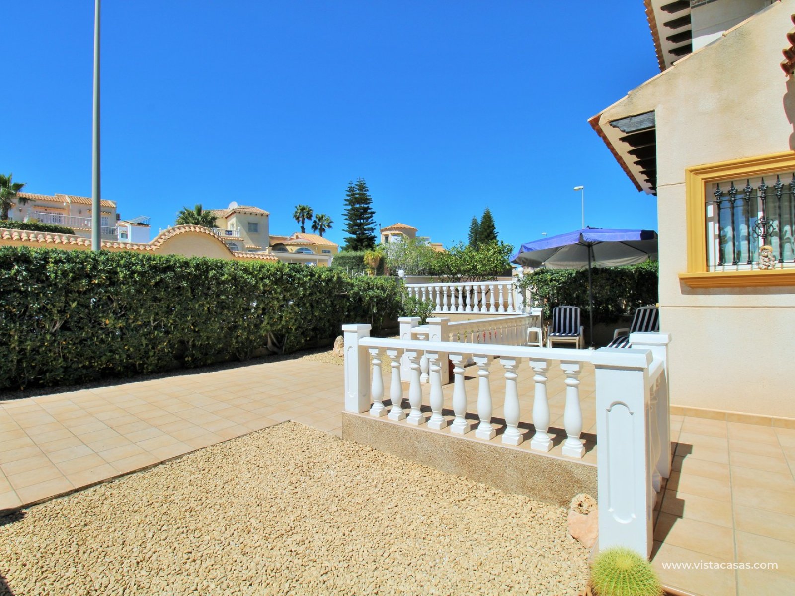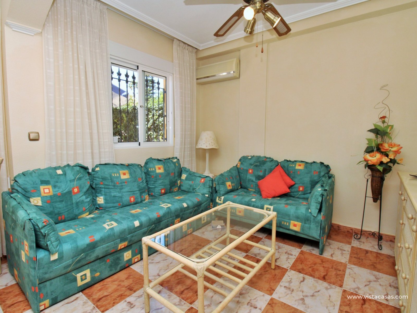 A rare opportunity to purchase this bright and airy south-facing quad, ideally positioned in the quiet and exclusive residential community of Pinada Golf I, Villamartin. Lovingly maintained, never rented, and used for just 10 weeks each year, this property is in excellent condition. Set on a generous and enviable 115m2 plot, there is ample space to add a private pool if desired. The front of the house features a spacious, sun-drenched terrace with four retractable awnings. A communal pool is located nearby, currently undergoing refurbishment in time for Easter.