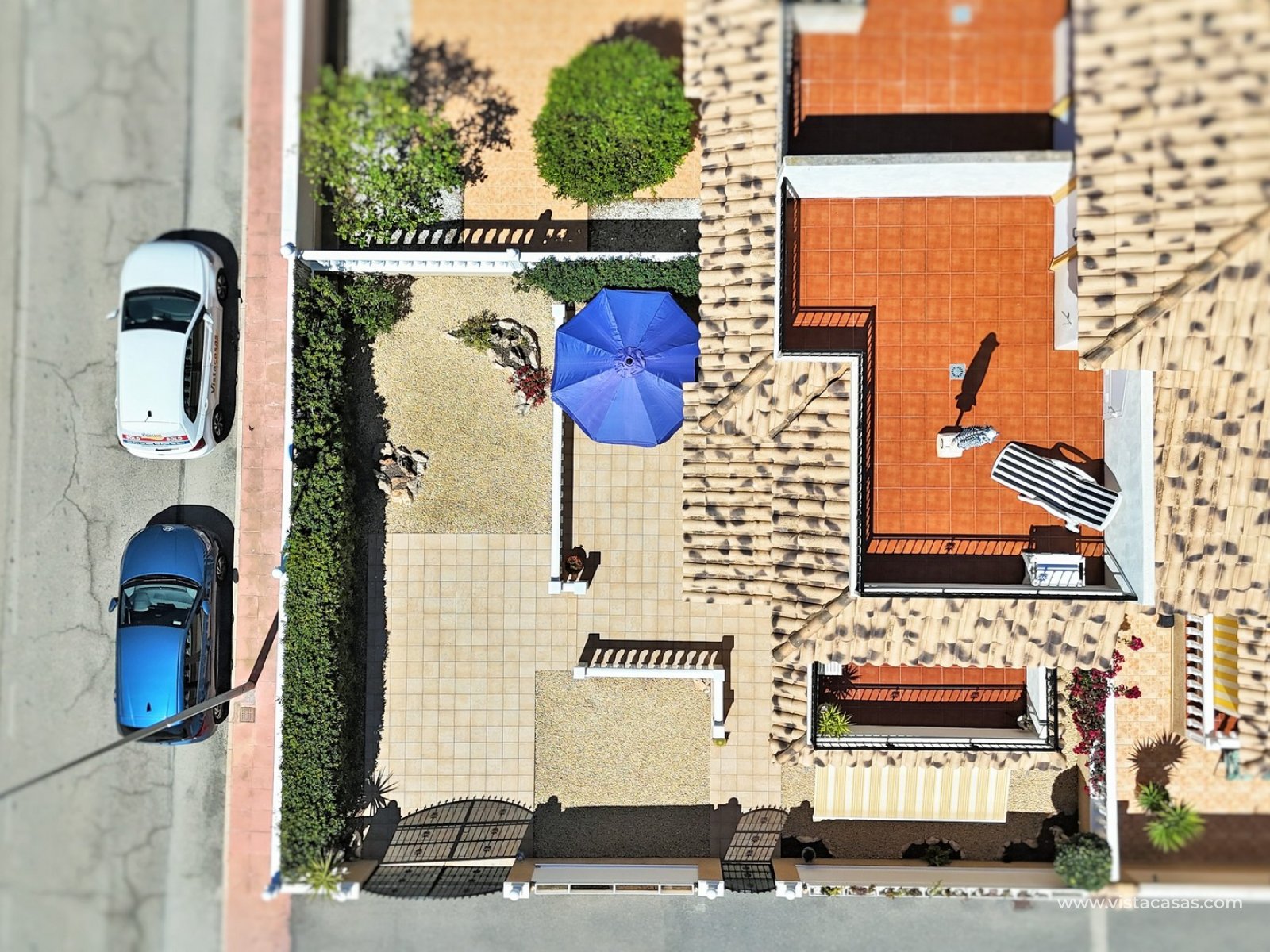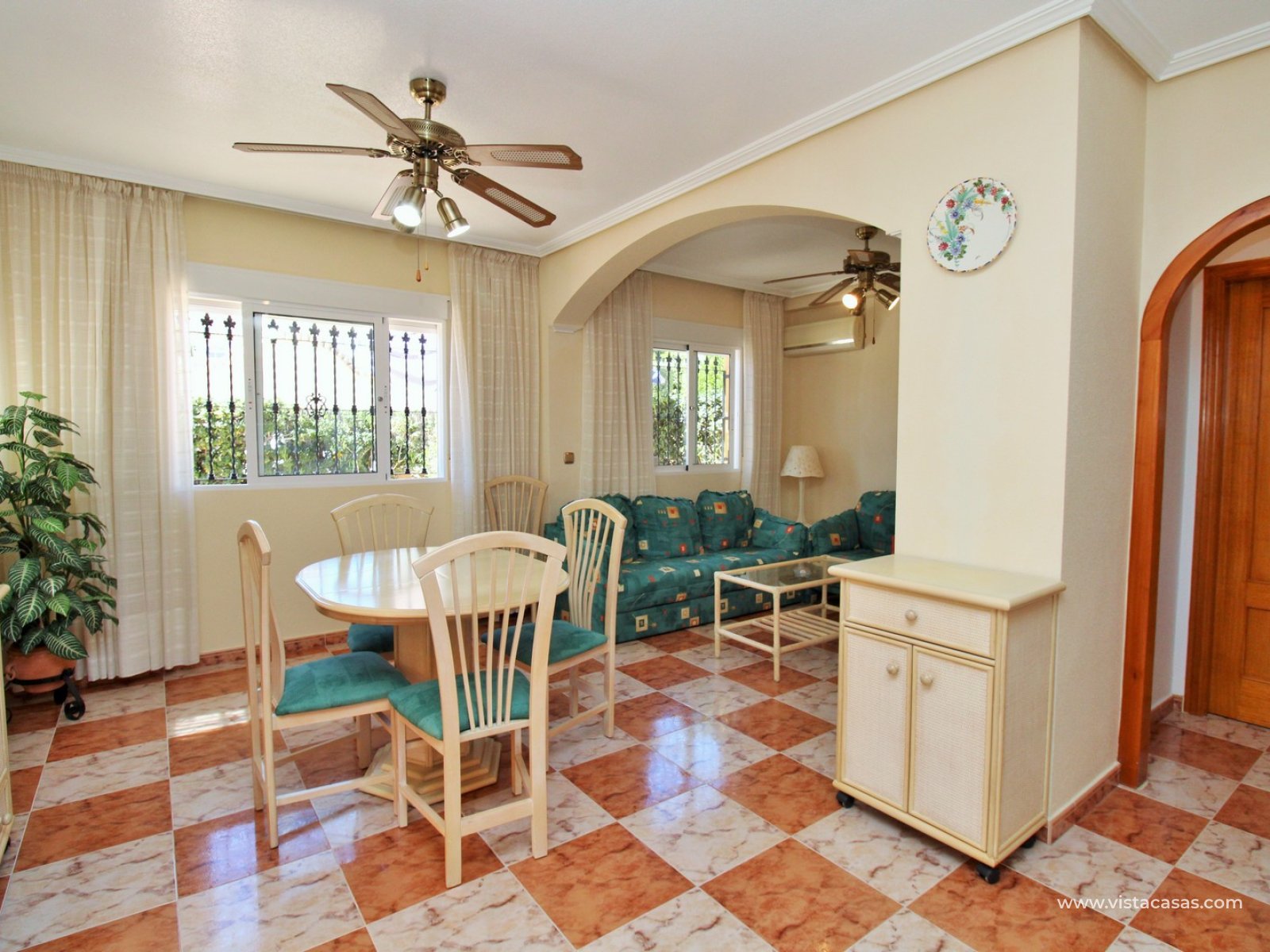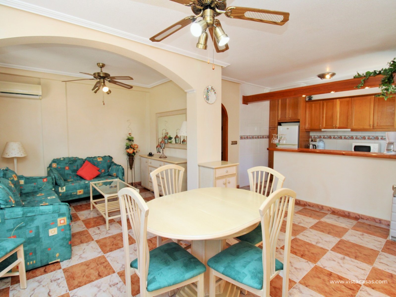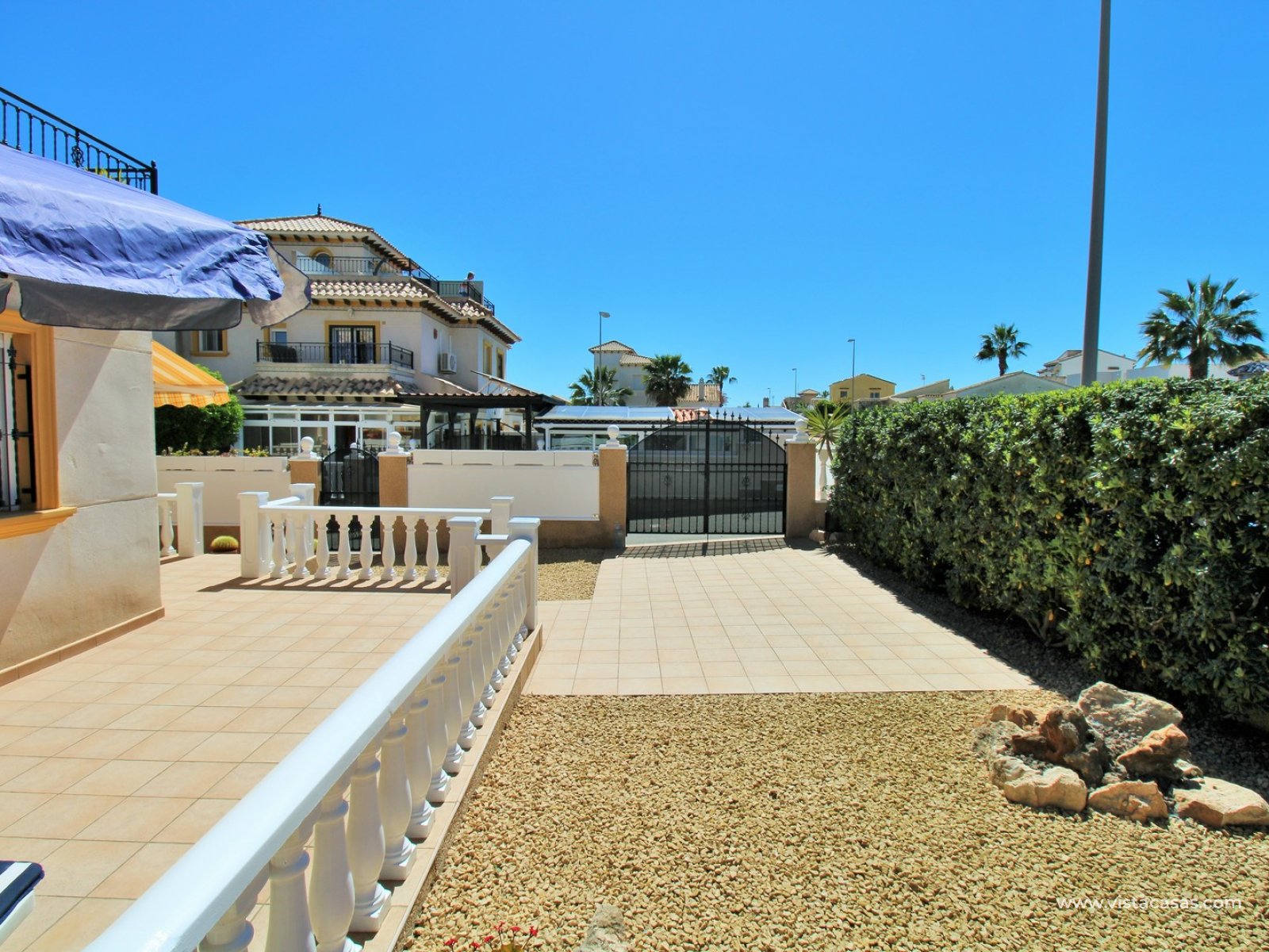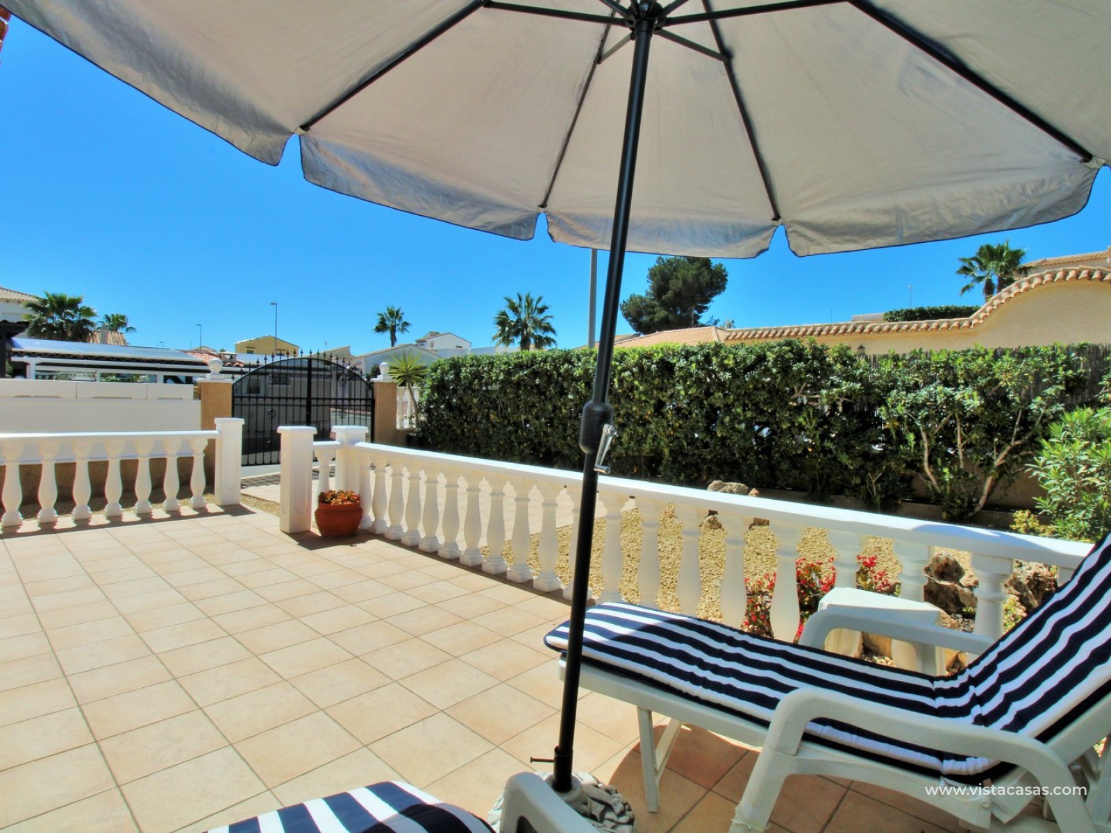A rare opportunity to purchase this bright and airy south-facing quad, ideally positioned in the quiet and exclusive residential community of Pinada Golf I, Villamartin. Lovingly maintained, never rented, and used for just 10 weeks each year, this property is in excellent condition. Set on a generous and enviable 115m2 plot, there is ample space to add a private pool if desired. The front of the house features a spacious, sun-drenched terrace with four retractable awnings. A communal pool is located nearby, currently undergoing refurbishment in time for Easter.