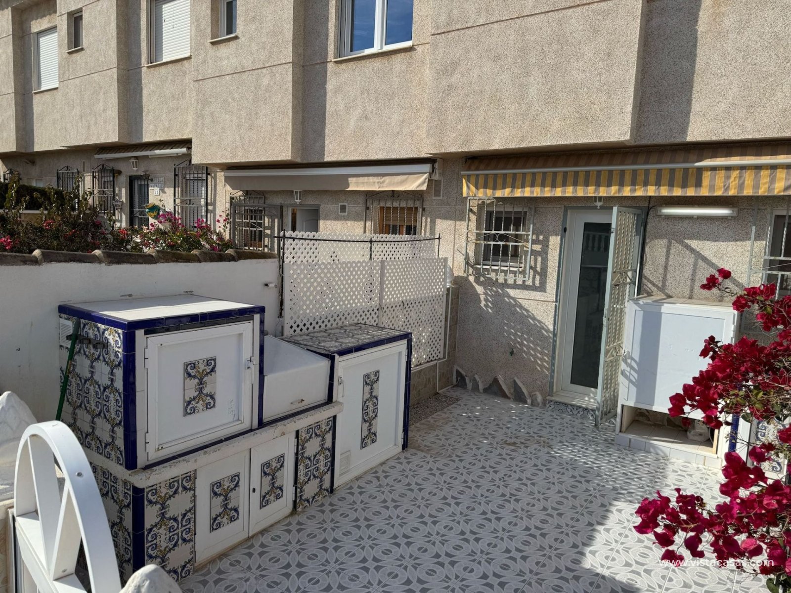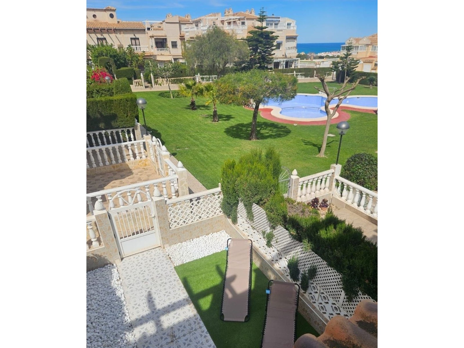 This townhouse is now available! It is conveniently located near to amenities and is walking distance to La Mata beach The house flows effortlessly and has an open plan lounge/diner and kitchen. There is a very convenient guest cloakroom on the ground floor. Stairs lead up and there are 2 bedrooms and a modern shower room. The master bedroom has a good sized balcony overlooking the pool and gardens and with sea views. From the master bedroom, stairs lead up to a bonus room which could be used as a bedroom, office, storage or a summer lounge. The property is located inside a gated community with parking, and has a garden to the front and rear, ensuring sun or shade at any time of the day. The front garden has an outdoor kitchen/BBQ and a cupboard housing the washing machine. The back garden has a gate giving direct access to the pool. EXTRAS INCLUDE : All furniture and white goods Fly screens Air conditioning This is a must see property, and is perfect as a full time residence or holiday home. We highly recommend a viewing.