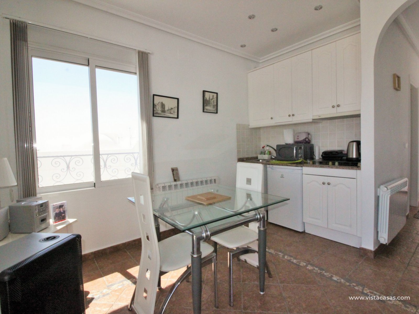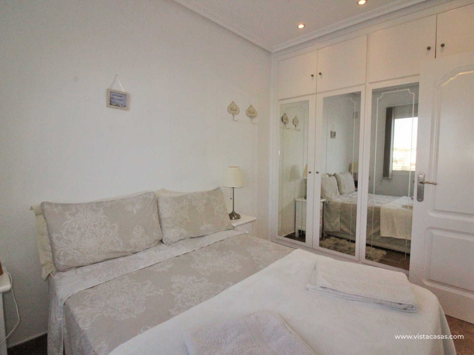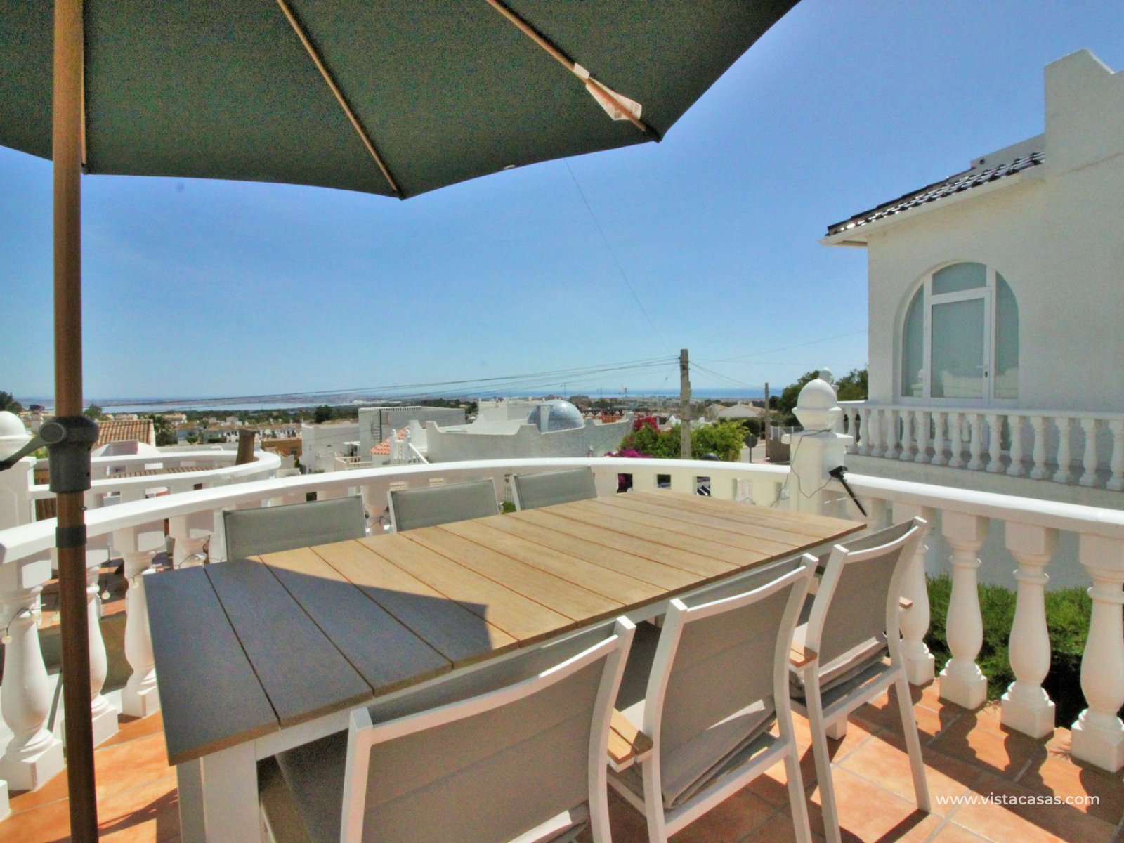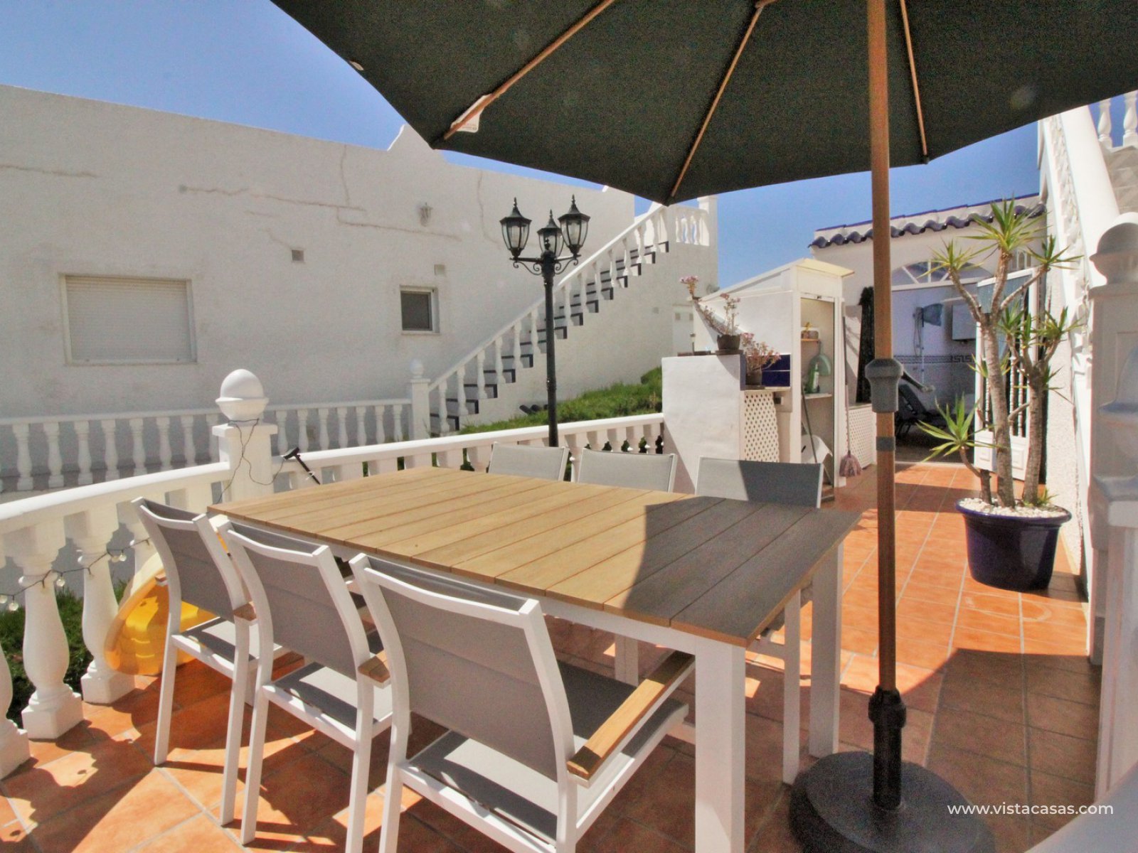 On the third level you will find the first separate annex which is accessible via an external staircase, and has an open plan lounge with dining area and kitchen, 1 bedroom with fitted wardrobes and a bathroom with corner shower. Patio doors from the living area leads to a large balcony with direct views of the salt lakes of Torrevieja and the sea. A spiral staircase leads to the roof solarium with stunning panoramic views of the Mediterranean Sea and countryside.
