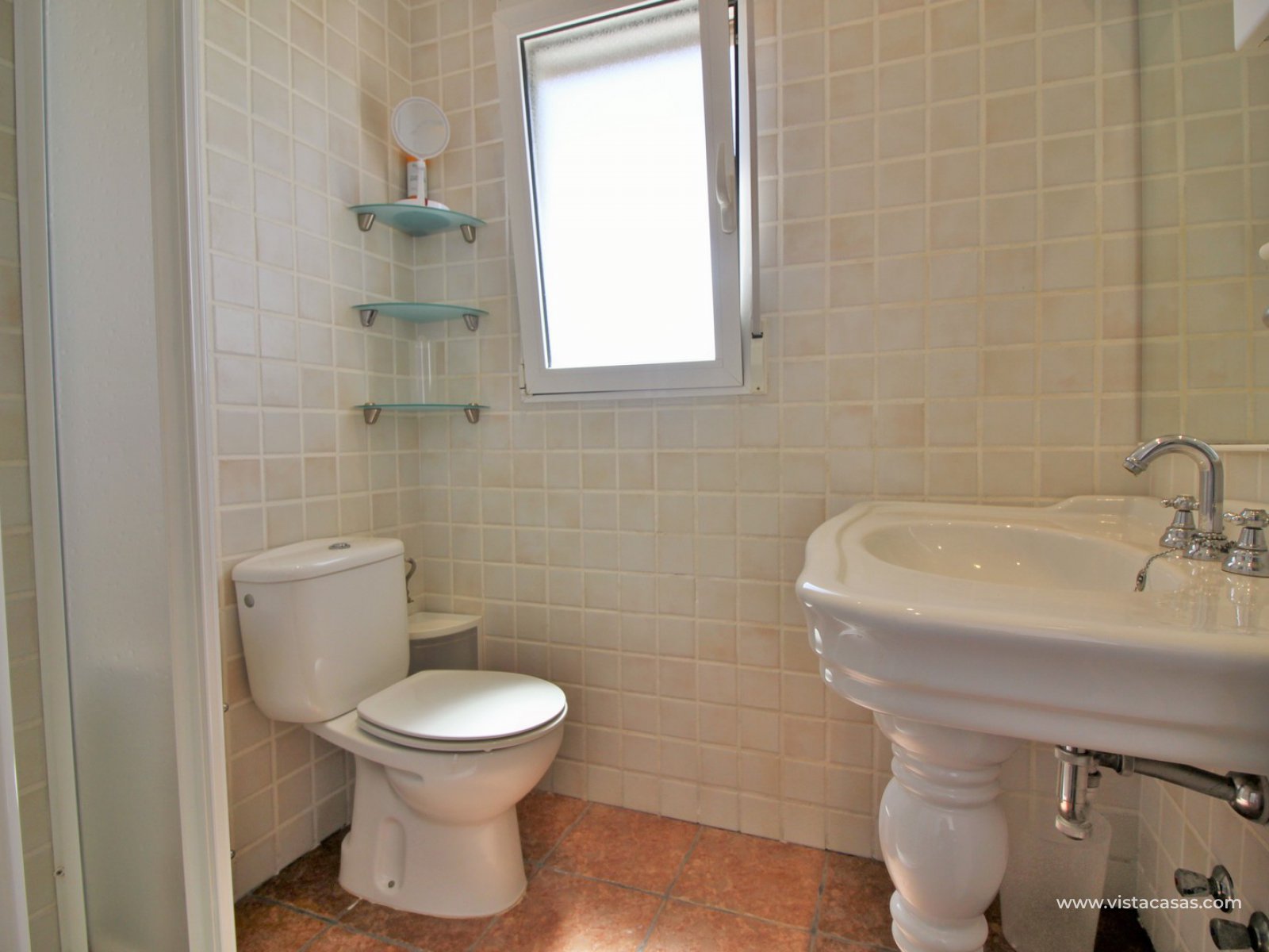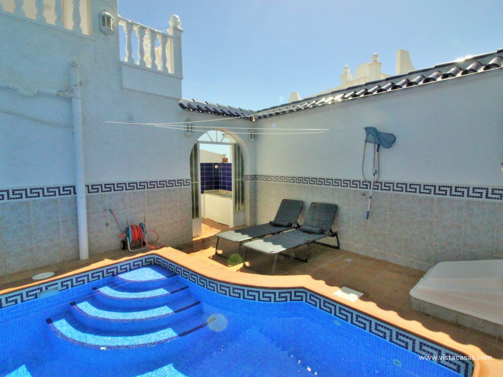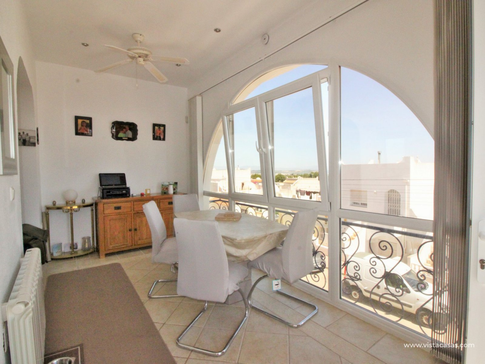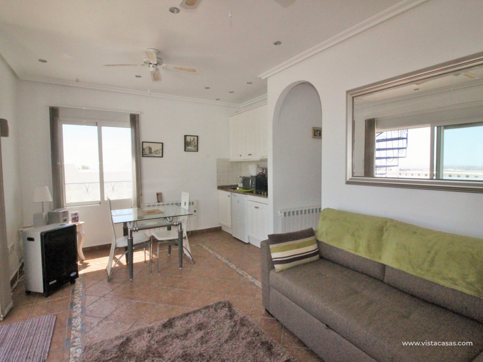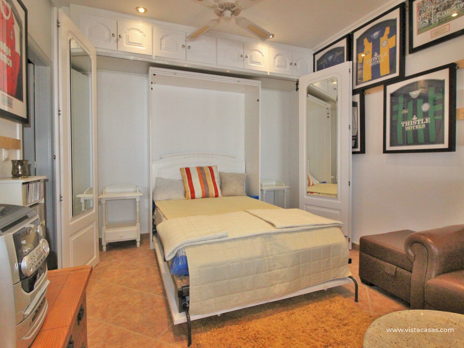On the third level you will find the first separate annex which is accessible via an external staircase, and has an open plan lounge with dining area and kitchen, 1 bedroom with fitted wardrobes and a bathroom with corner shower. Patio doors from the living area leads to a large balcony with direct views of the salt lakes of Torrevieja and the sea. A spiral staircase leads to the roof solarium with stunning panoramic views of the Mediterranean Sea and countryside.