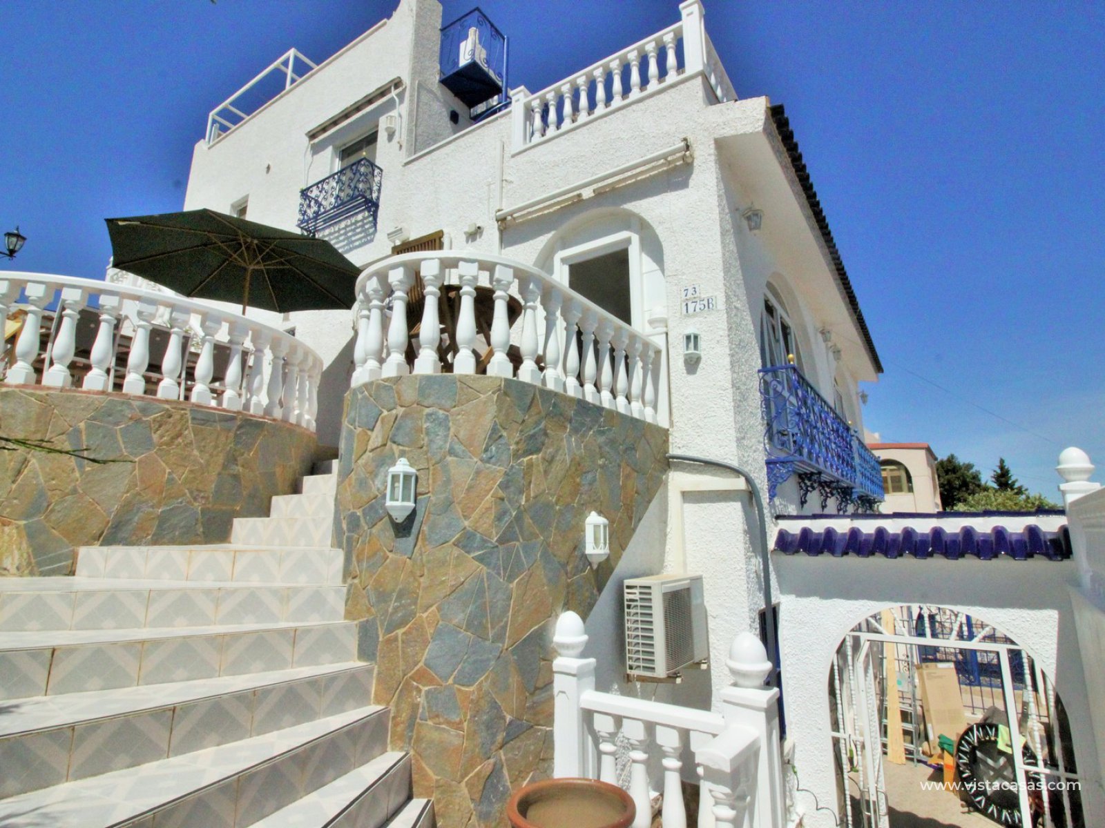 Unique semi-detached 4 bedroom villa with heated pool distributed over 3 separate levels of accommodation in Blue Lagoon. The villa has breathtaking views of the sea, salt lakes and Mar Menor. Comprising of 4 bedrooms, 3 bathrooms, 3 kitchens and 3 living rooms, this would be an ideal property for large families, with plenty of space to cater for guests.