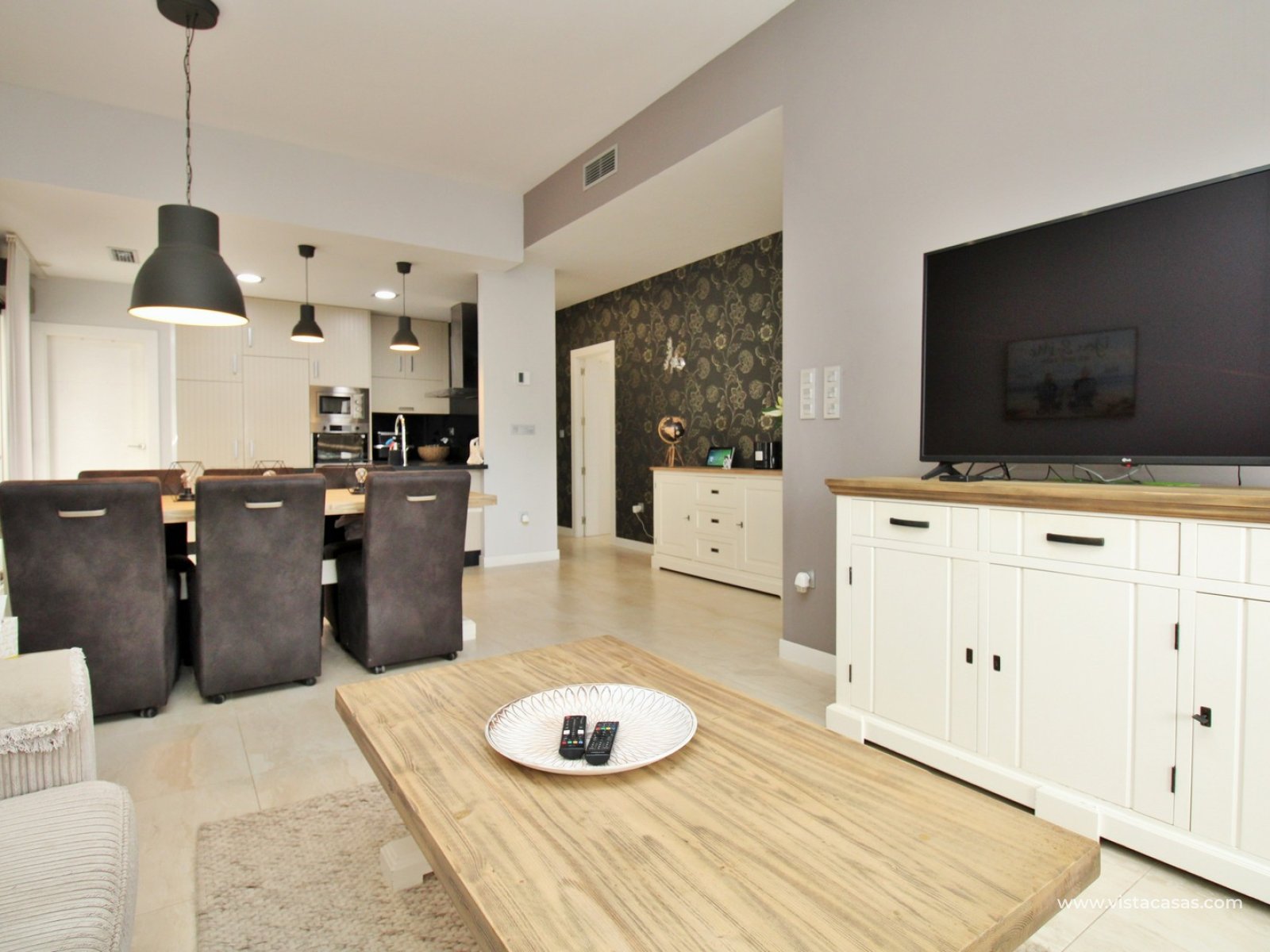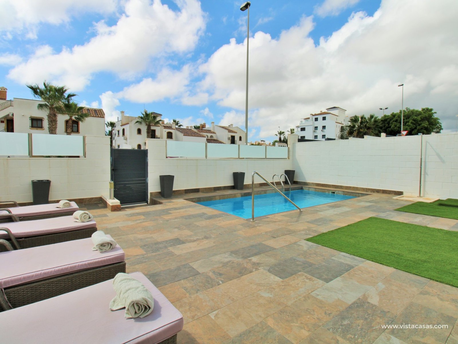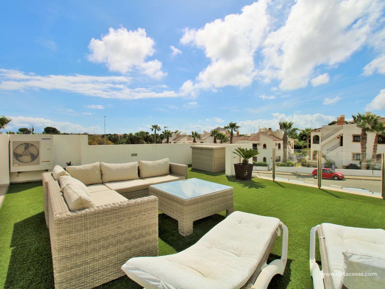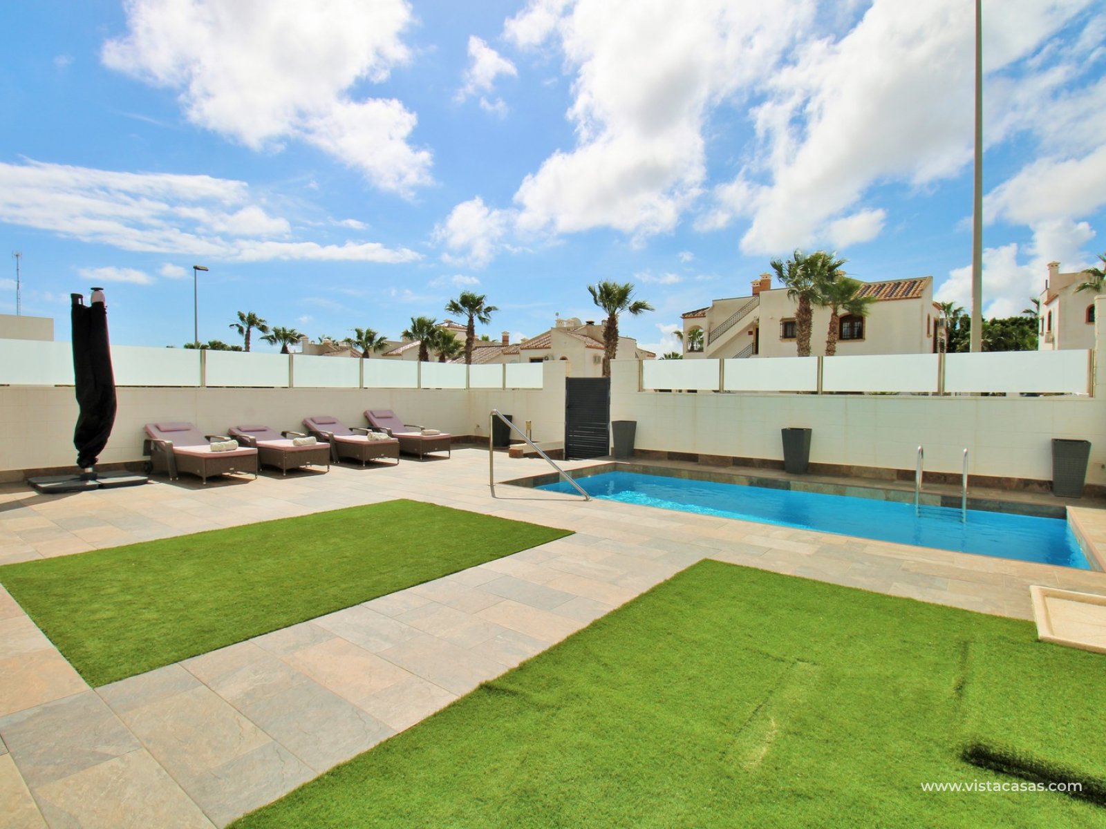Located in the sought-after Pau 8 area of Villamartin, this beautifully presented 3-bedroom detached Innova villa offers effortless living on one level. Designed with comfort and quality in mind, the home features a private swimming pool, spacious roof solarium, and a generous garden with a covered terrace – ideal for relaxing or entertaining guests.