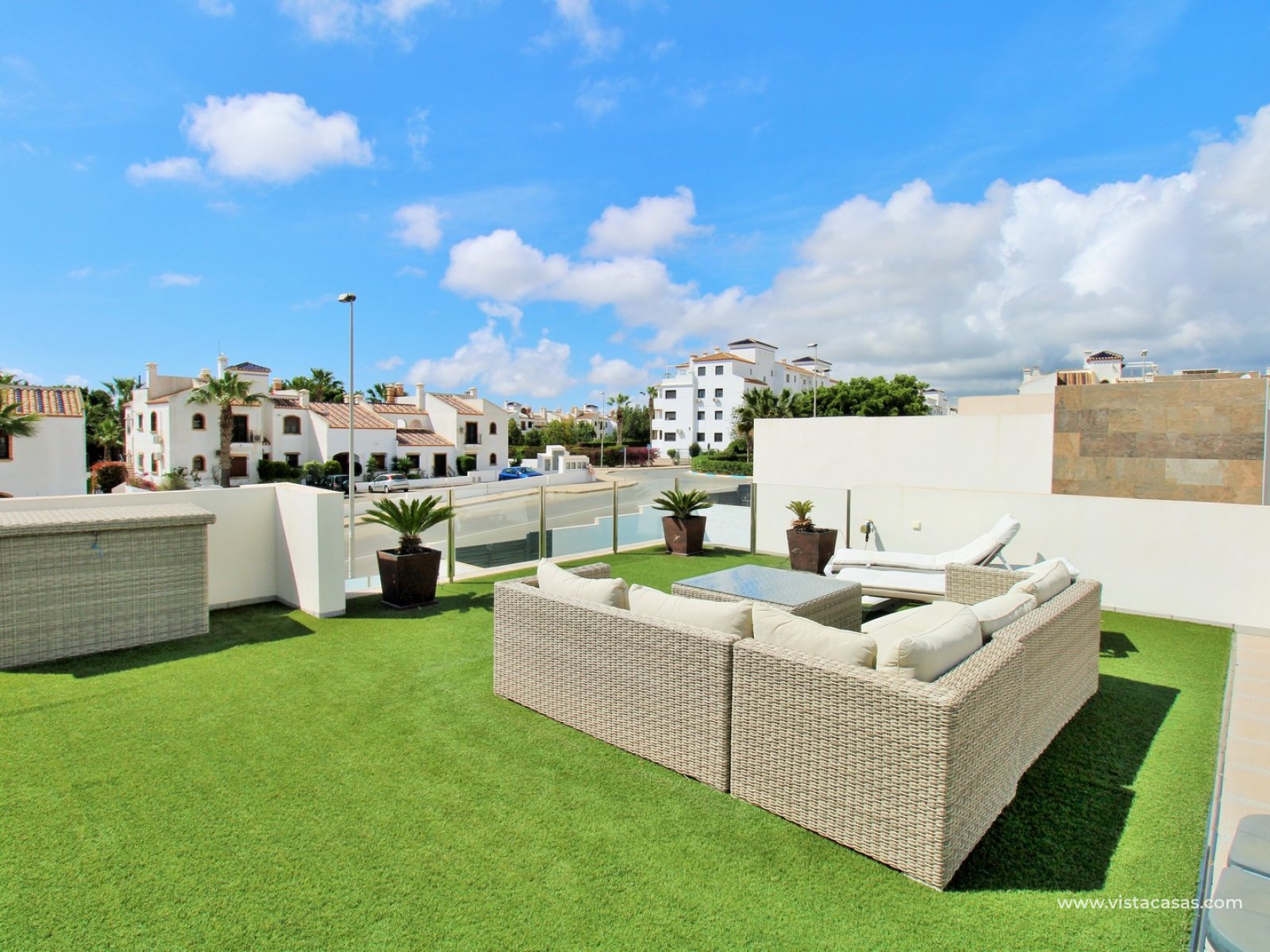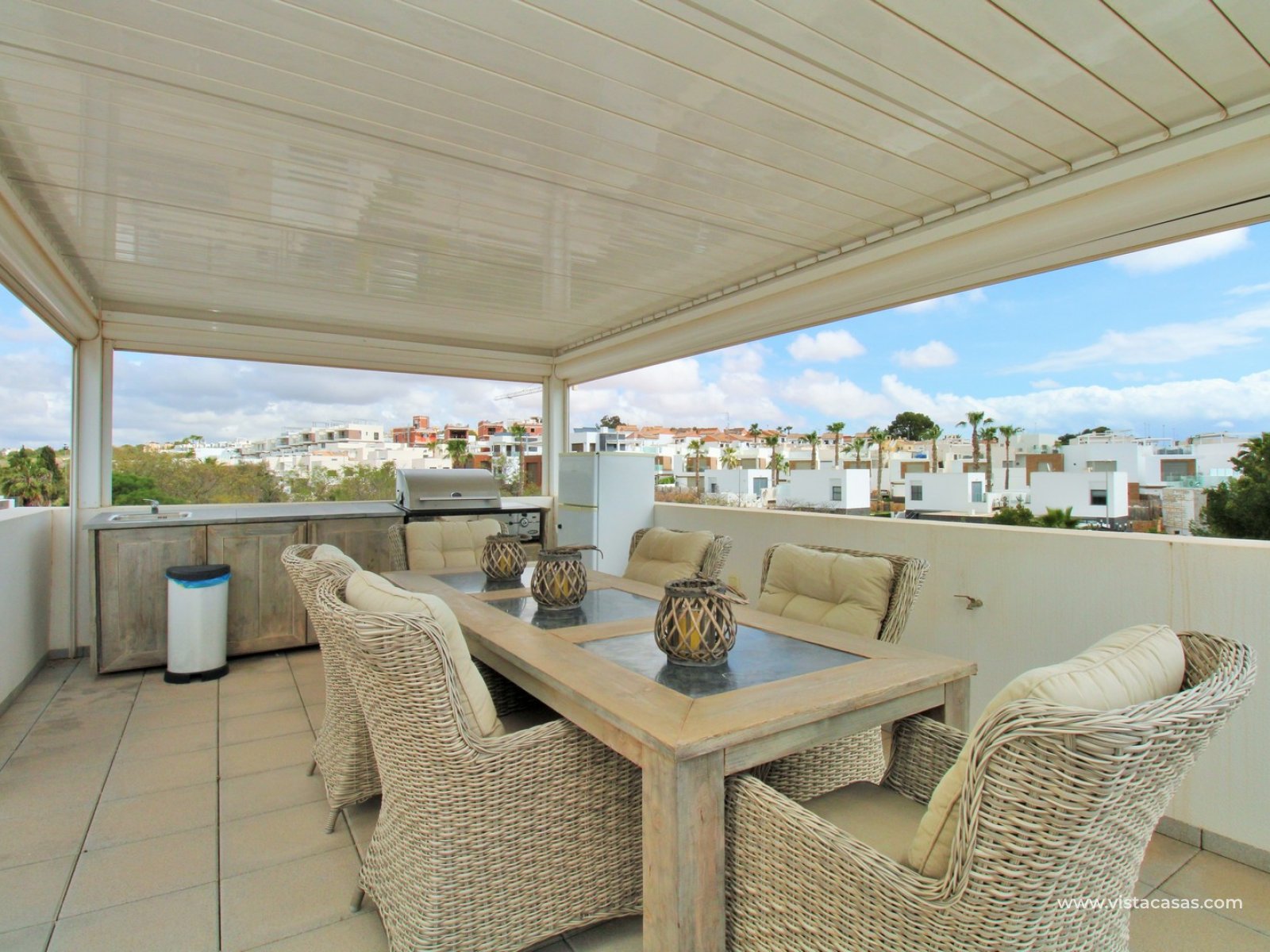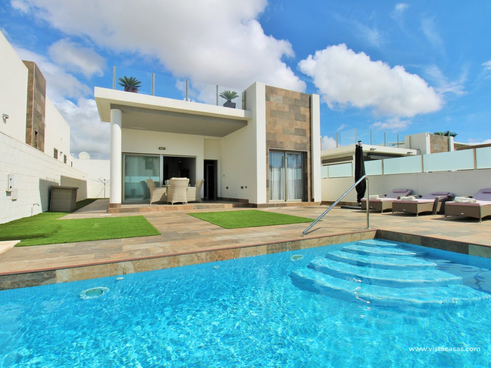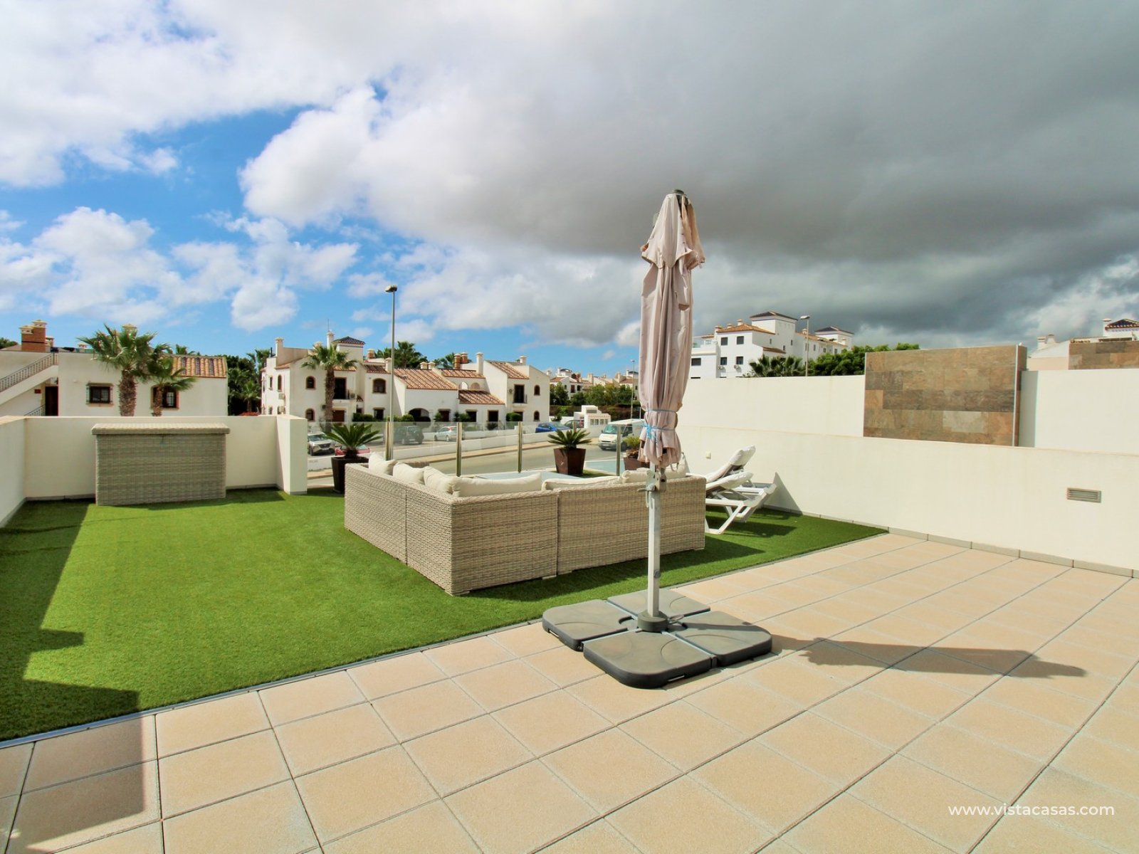 Located in the sought-after Pau 8 area of Villamartin, this beautifully presented 3-bedroom detached Innova villa offers effortless living on one level. Designed with comfort and quality in mind, the home features a private swimming pool, spacious roof solarium, and a generous garden with a covered terrace – ideal for relaxing or entertaining guests.
