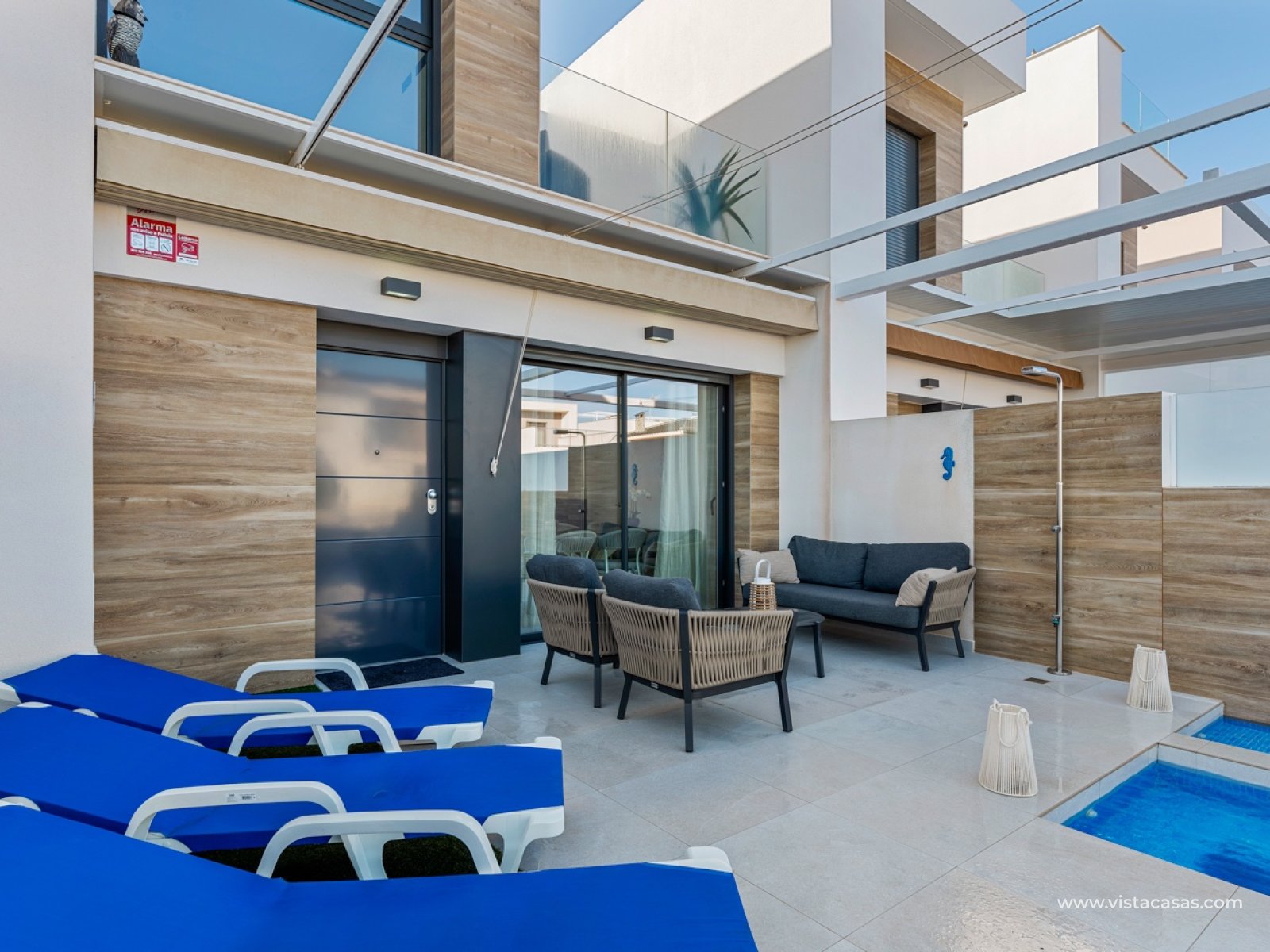 Come and view this recently completed, nearly new property in Rojales. Are you ready to live in the picturesque town of Rojales, just 15 minutes from the beach, in a stunning villa with 4 bedrooms and 2 bathrooms? This villa features a beautiful private pool, a spacious basement, and all the amenities to make it your dream home. It's a true eye-catcher for those who love luxury and tranquility. This luxuriously finished home is situated on a beautiful north-facing plot and comes fully equipped with high-quality finishes, sparing no expense. The property is immediately available and move-in ready. In short, whether you’re looking to enjoy a home in Spain or plan to rent it out, this is the perfect opportunity. The villa is divided across three levels: the ground floor, the first floor, and level -1. Ground Floor: Upon entering through the front door, you step into the living room. The spacious living area with a modern kitchen is fully equipped with all necessities. At the rear of the house, you’ll find access to the first bedroom with an en-suite bathroom. Don’t miss the garden, complete with a private pool and several cozy seating areas to soak up the Spanish sun. First Floor: Take the stairs to the first floor, where you’ll find two bedrooms, one of which has an en-suite bathroom. This floor also includes a lovely outdoor area, perfect for unwinding. Level -1: From the ground floor, head down to the basement. This spacious area includes a living room/bedroom and is ideal for creating two additional bedrooms, making this property a potential 5-bedroom home! Key Features: Living area: 192 m²Plot size: 137 m²Year of construction: 20213 bedrooms2 bathroomsPrivate swimming poolFully finished basementFully equipped kitchen & bathroomsIncludes furniture This advertisement is indicative, and no rights can be derived from the above-mentioned information.