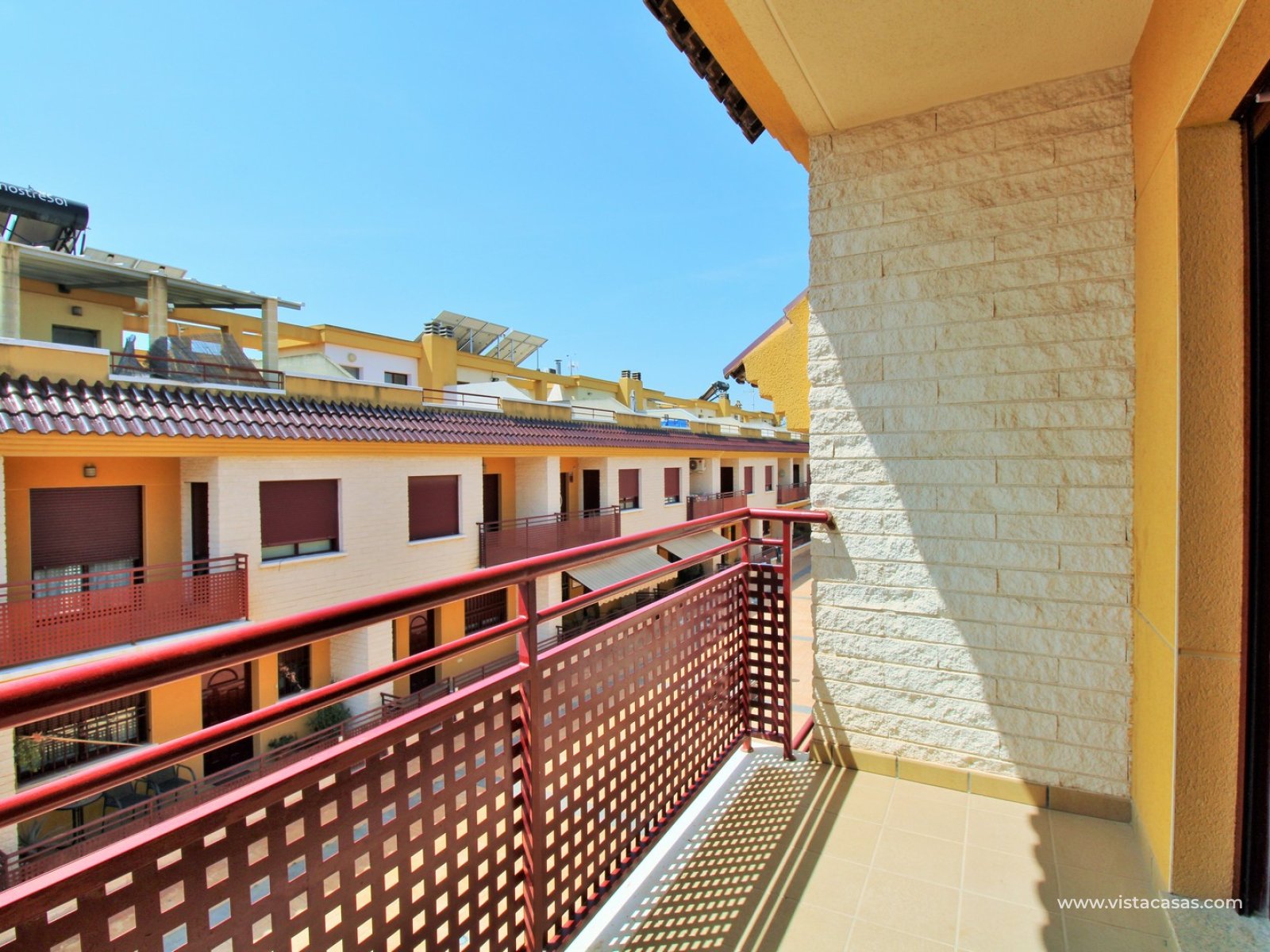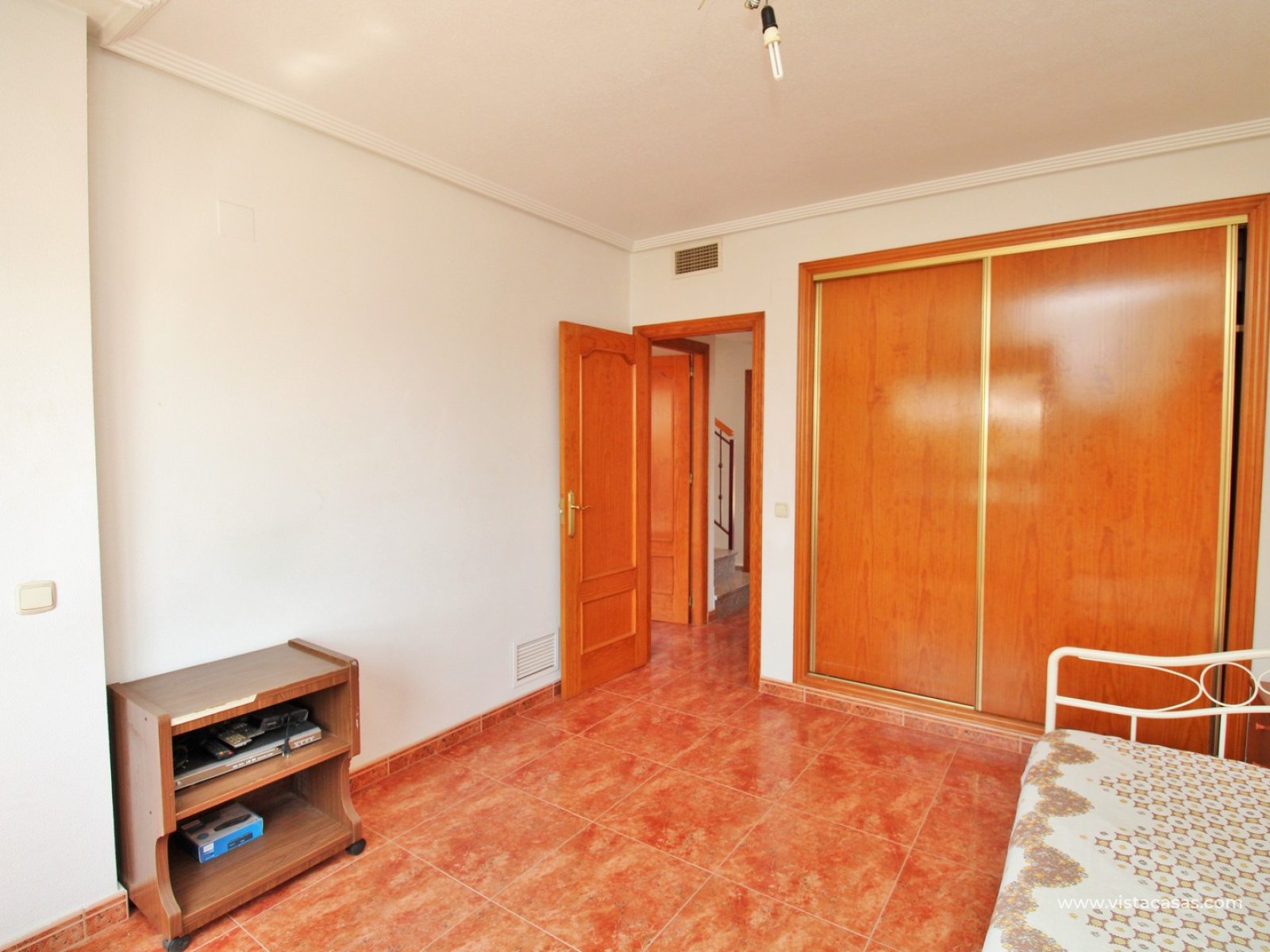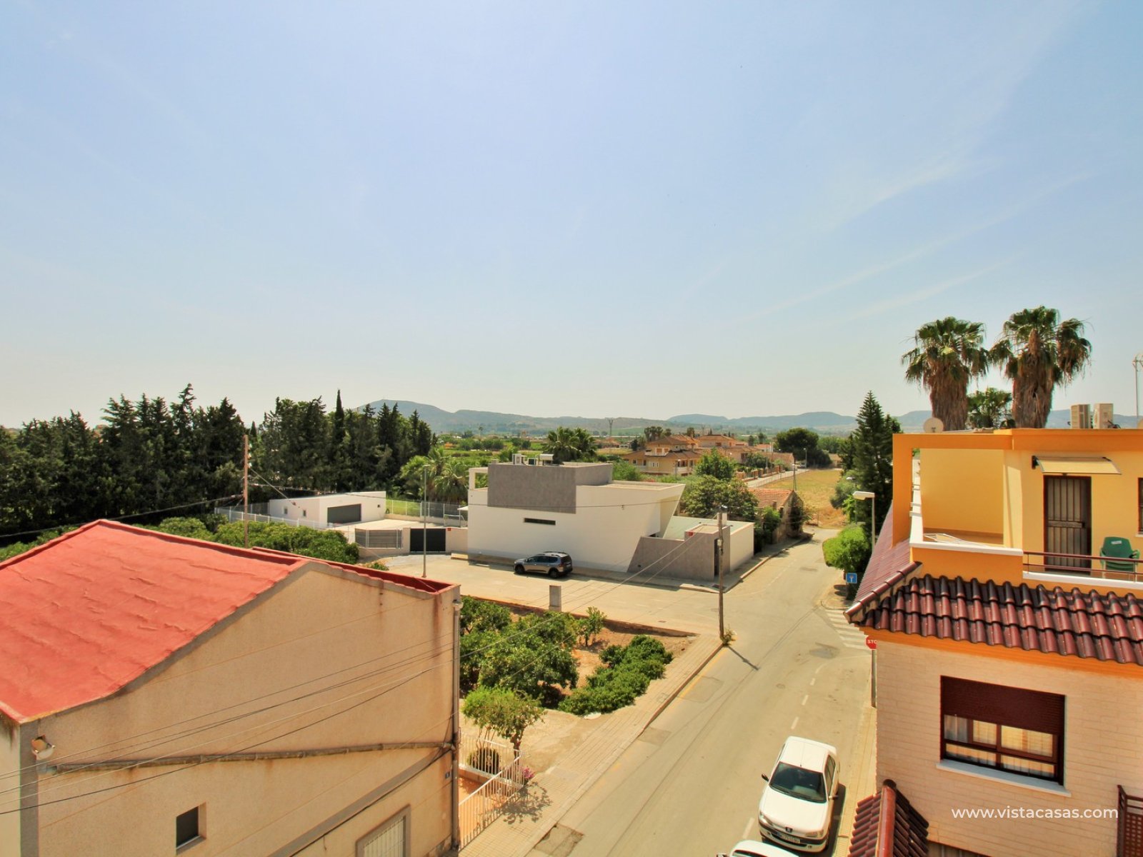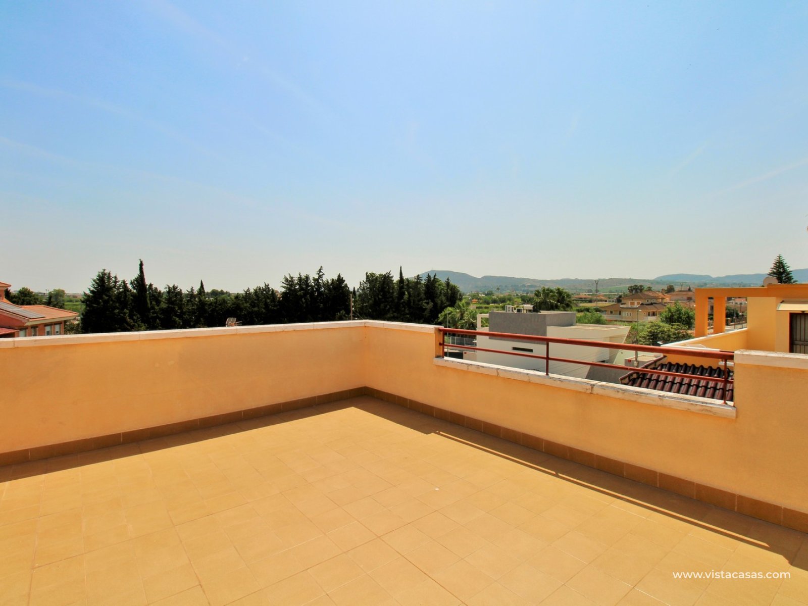 Upstairs, the home features three comfortable bedrooms, each with built-in wardrobes. The master bedroom boasts its own private en-suite and access to an expansive solarium — the largest in the entire complex — providing an impressive private outdoor space for sunbathing, entertaining, or simply unwinding. The two front bedrooms share access to a balcony that overlooks the quiet community street and lush park below. A family bathroom is also located on this floor, serving the additional bedrooms. Above, a private roof solarium crowns the home, offering panoramic views of the surrounding countryside, including the Orihuela campo and the dramatic Redován mountains. Whether you're hosting gatherings or enjoying a quiet sunset, this rooftop retreat is truly special.