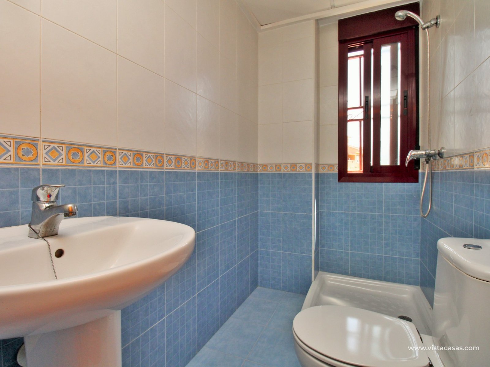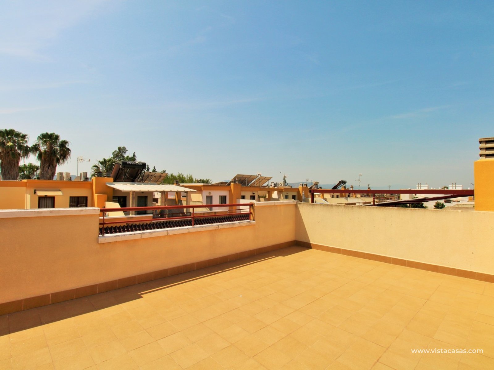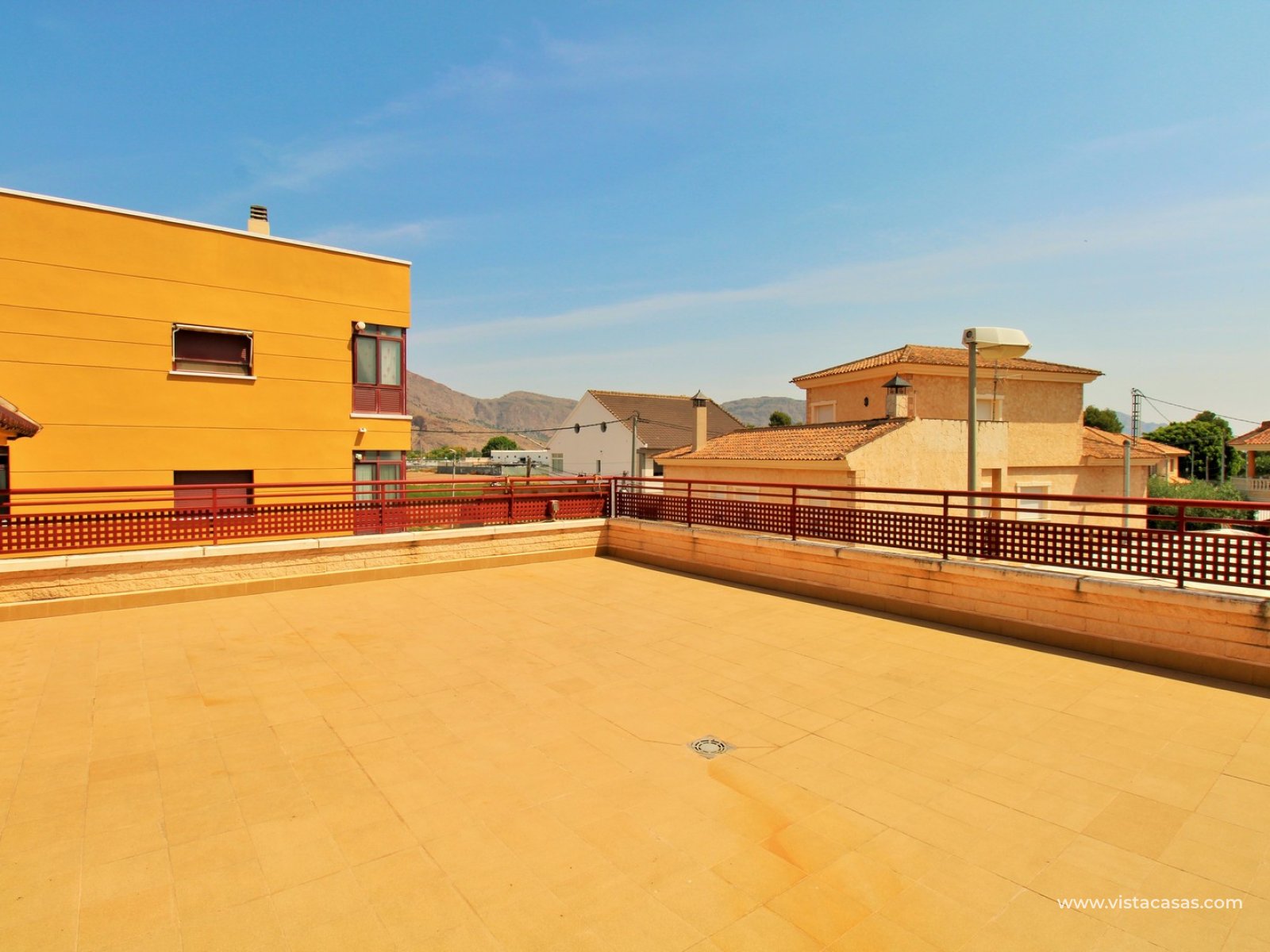 Upstairs, the home features three comfortable bedrooms, each with built-in wardrobes. The master bedroom boasts its own private en-suite and access to an expansive solarium — the largest in the entire complex — providing an impressive private outdoor space for sunbathing, entertaining, or simply unwinding. The two front bedrooms share access to a balcony that overlooks the quiet community street and lush park below. A family bathroom is also located on this floor, serving the additional bedrooms. Above, a private roof solarium crowns the home, offering panoramic views of the surrounding countryside, including the Orihuela campo and the dramatic Redován mountains. Whether you're hosting gatherings or enjoying a quiet sunset, this rooftop retreat is truly special.