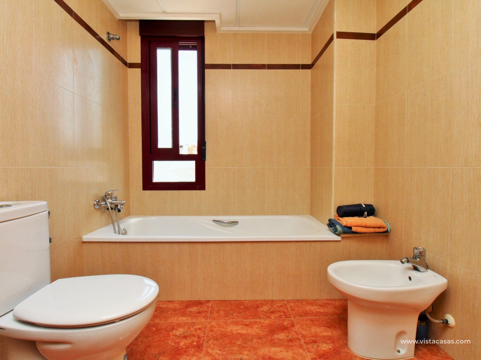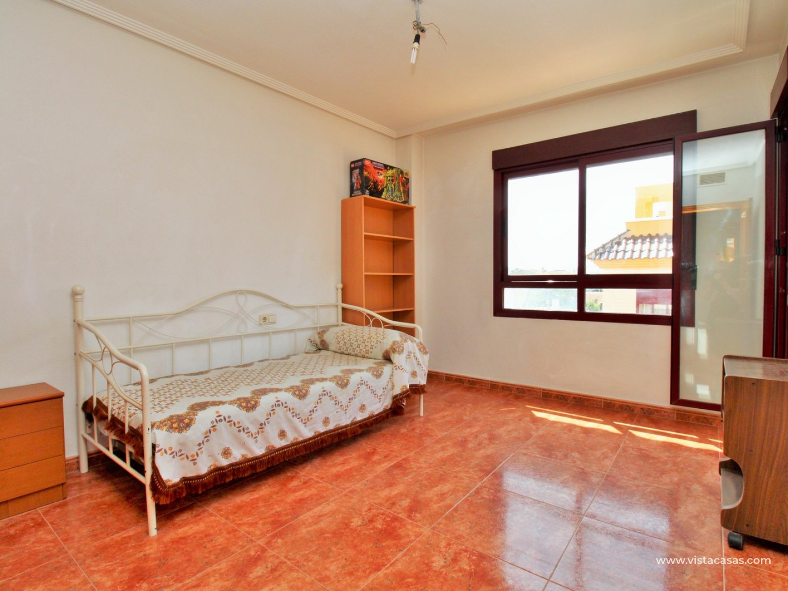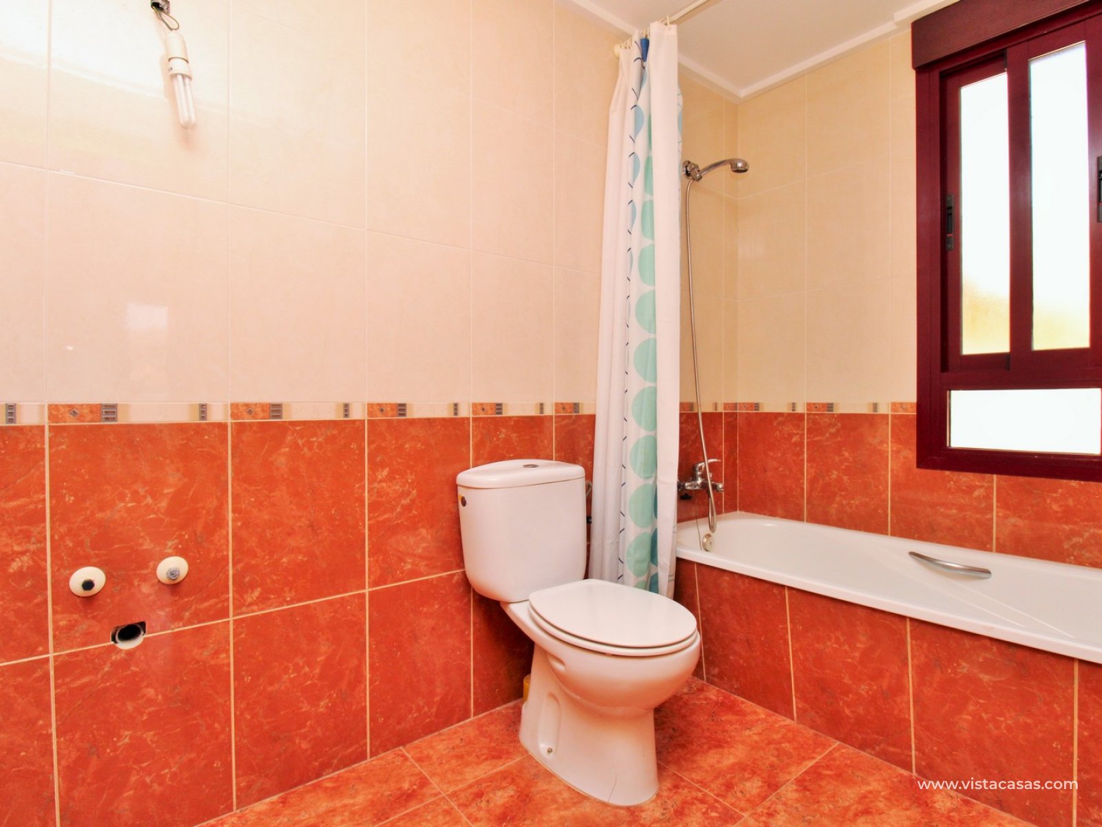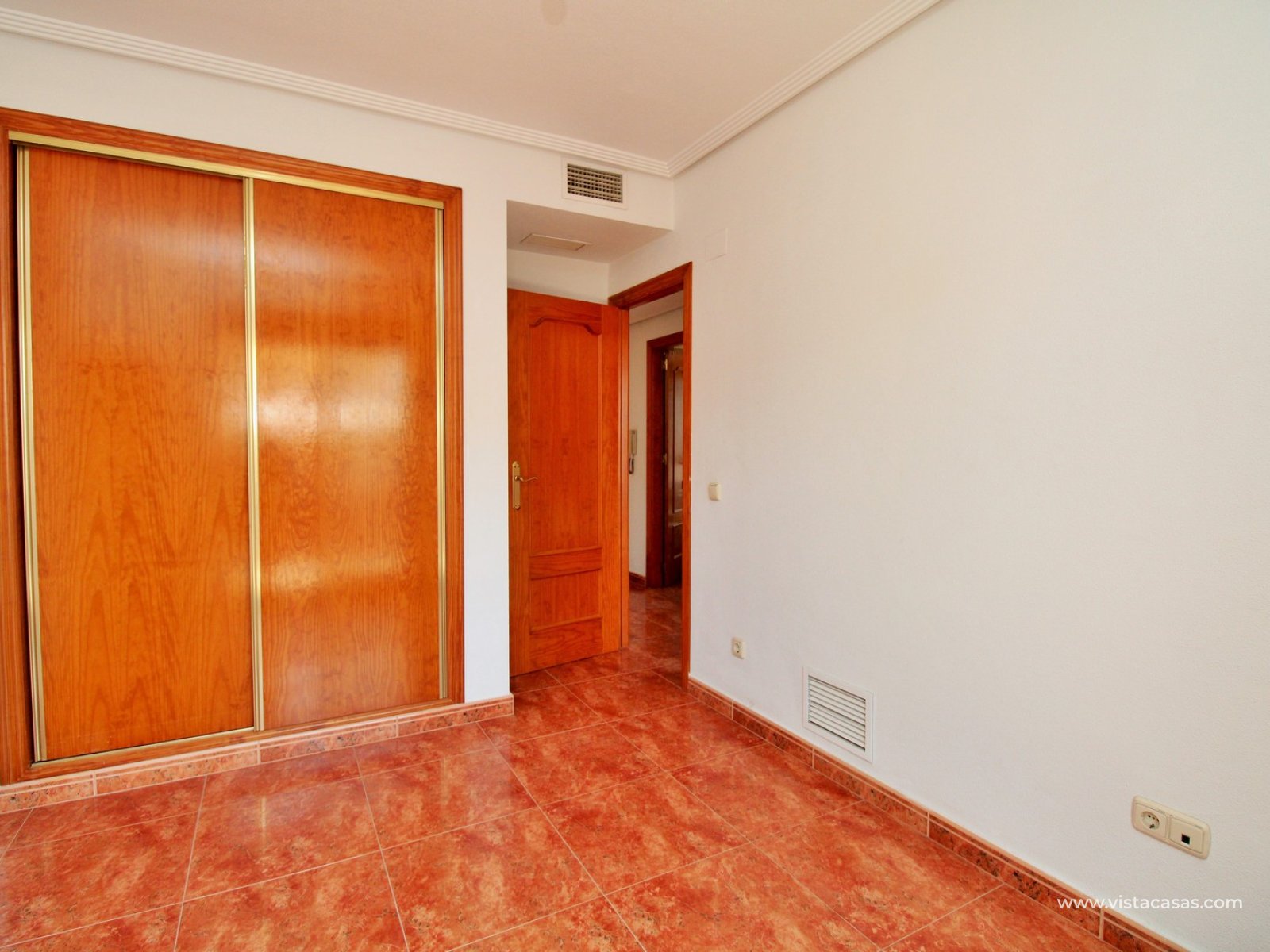 Upstairs, the home features three comfortable bedrooms, each with built-in wardrobes. The master bedroom boasts its own private en-suite and access to an expansive solarium — the largest in the entire complex — providing an impressive private outdoor space for sunbathing, entertaining, or simply unwinding. The two front bedrooms share access to a balcony that overlooks the quiet community street and lush park below. A family bathroom is also located on this floor, serving the additional bedrooms. Above, a private roof solarium crowns the home, offering panoramic views of the surrounding countryside, including the Orihuela campo and the dramatic Redován mountains. Whether you're hosting gatherings or enjoying a quiet sunset, this rooftop retreat is truly special.