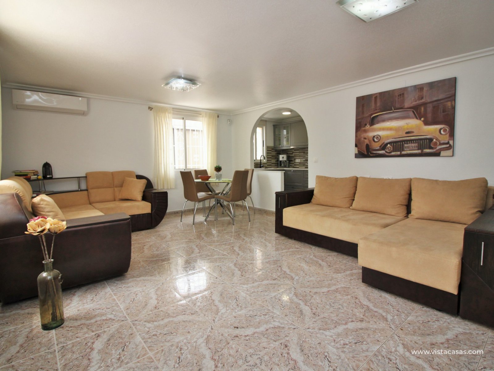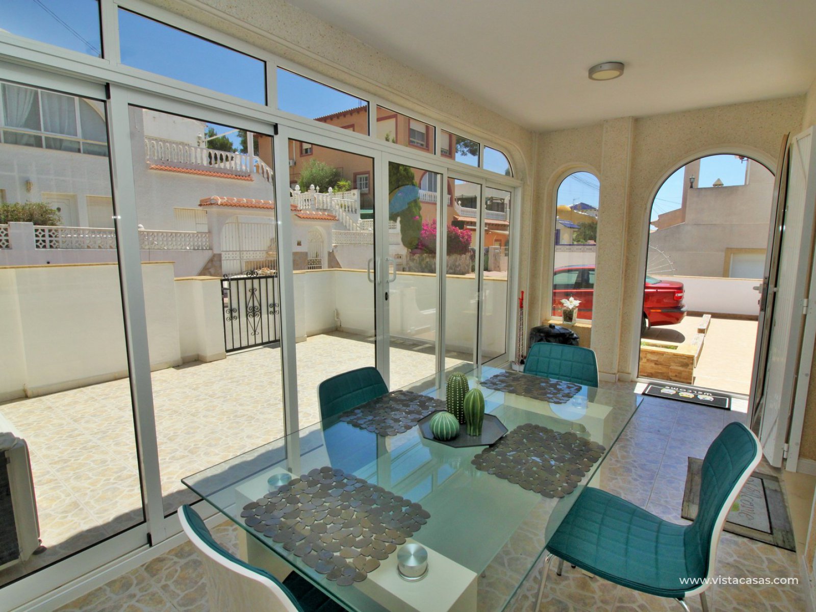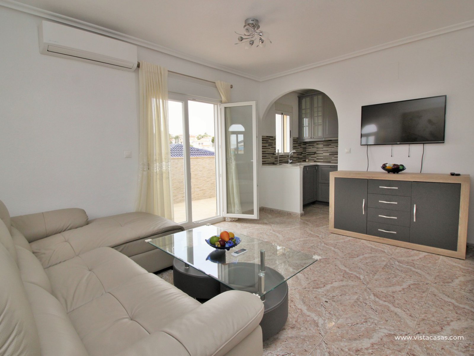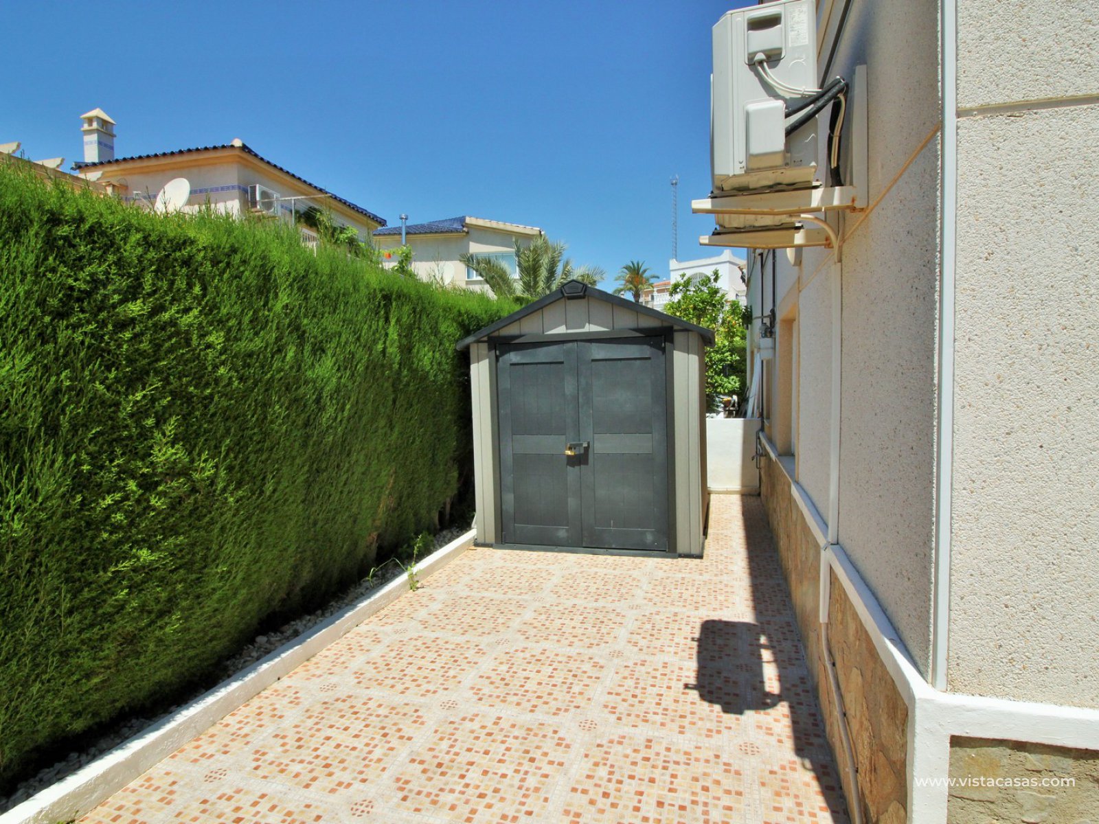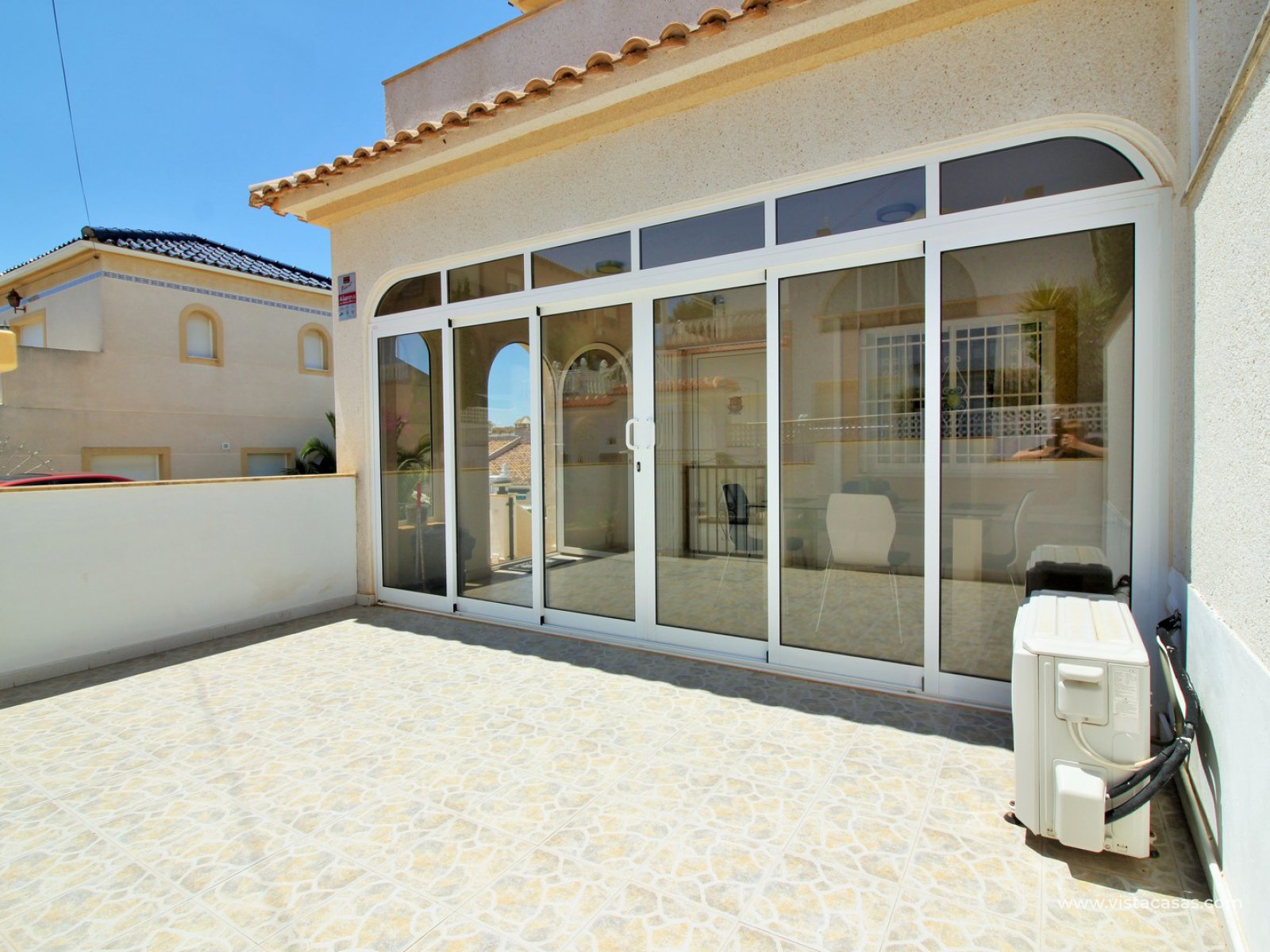 Exterior stairs lead down to the lovely pool area with plenty of space for sunbathing and entertaining. From here you can access the self contained annex, which comprises of a large lounge-dining area with fully fitted kitchen, utility room, bathroom with shower, and a bedroom with fitted wardrobes. The annex is very open and has lots of natural light going into the lounge area. There is also an off-road parking space just beside the property. Sold furnished with air-conditioning.