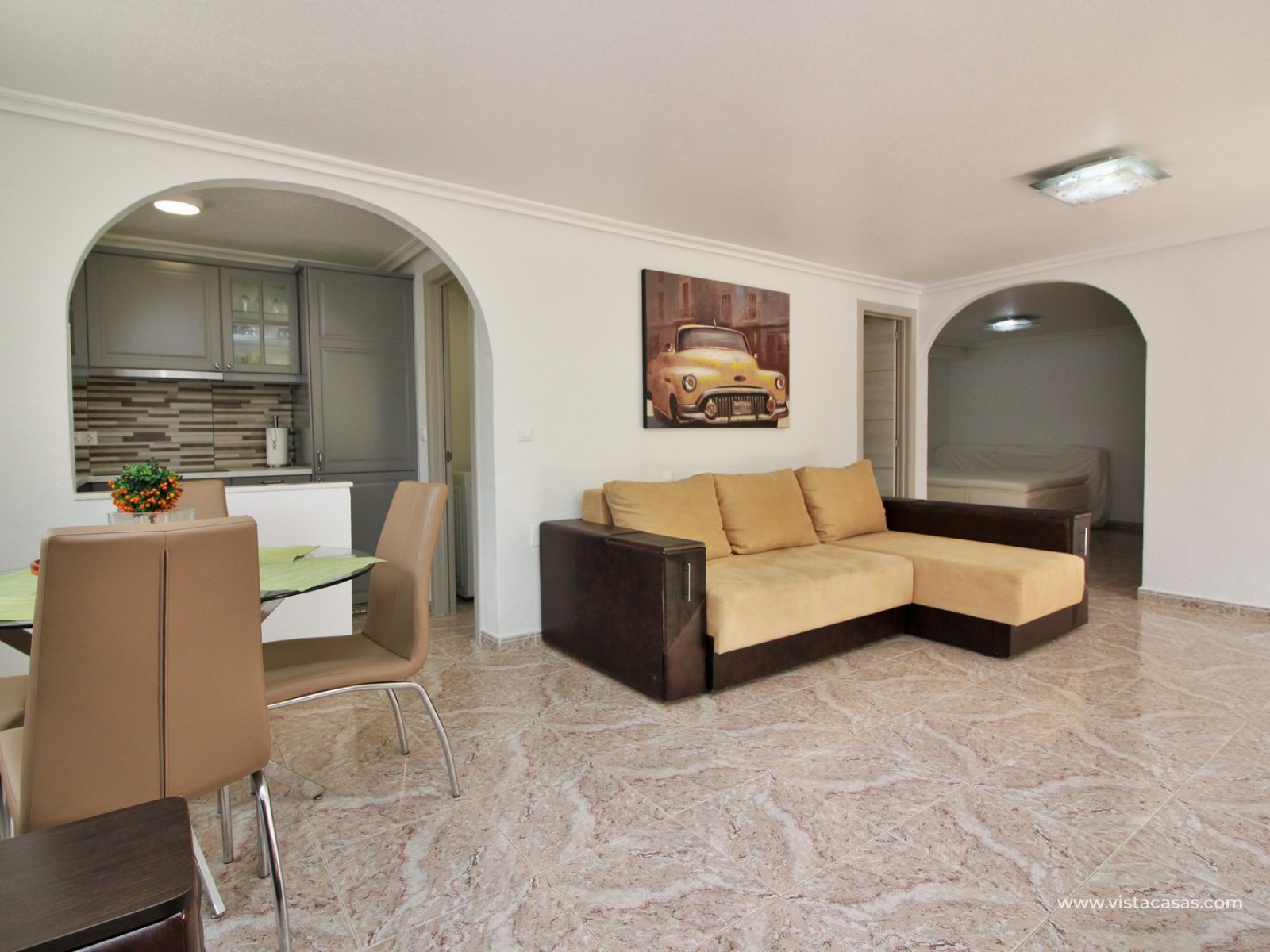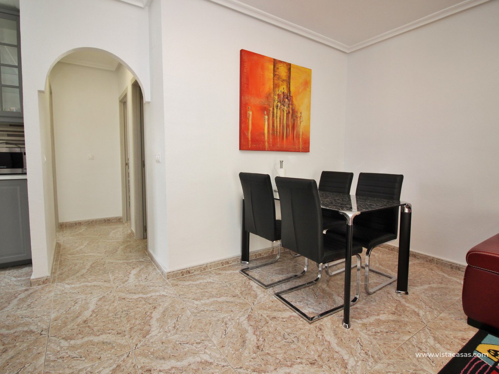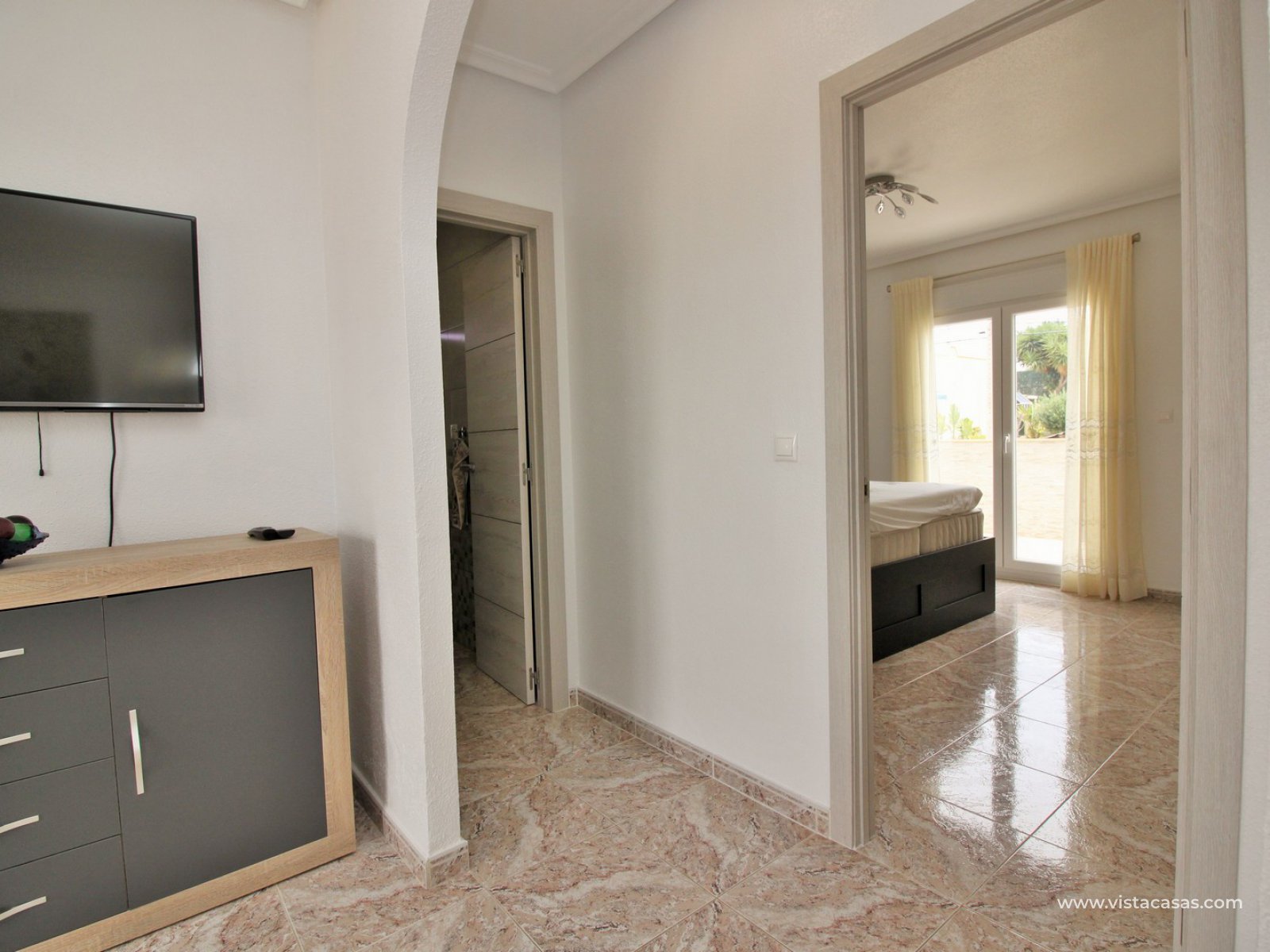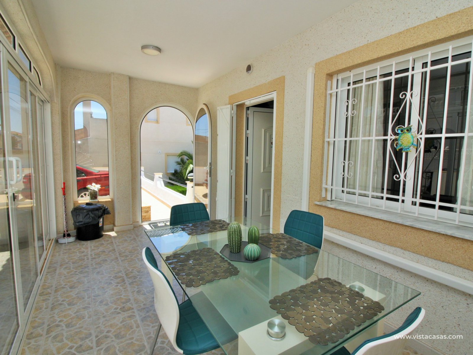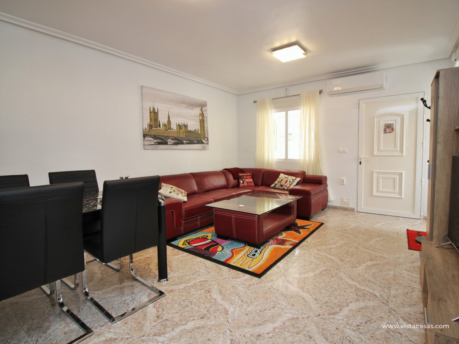 Exterior stairs lead down to the lovely pool area with plenty of space for sunbathing and entertaining. From here you can access the self contained annex, which comprises of a large lounge-dining area with fully fitted kitchen, utility room, bathroom with shower, and a bedroom with fitted wardrobes. The annex is very open and has lots of natural light going into the lounge area. There is also an off-road parking space just beside the property. Sold furnished with air-conditioning.