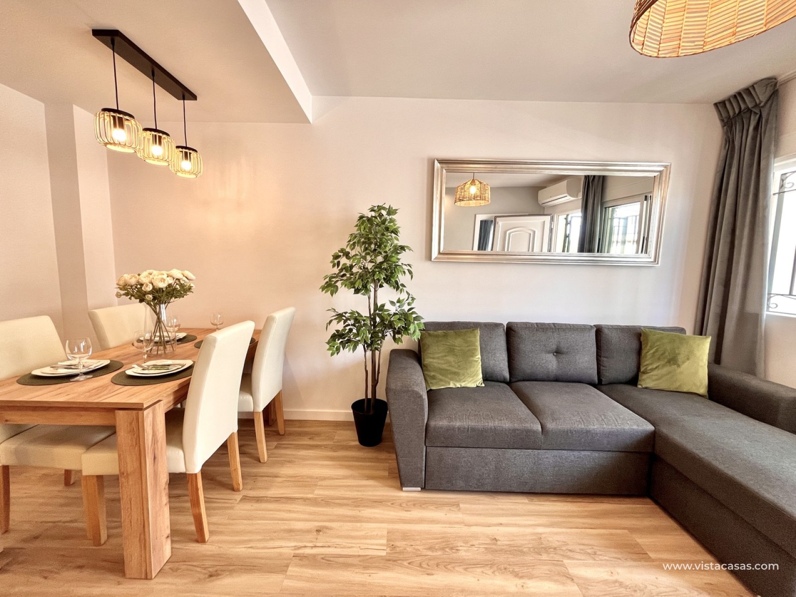 Presenting this beautifully renovated 3-bedroom, 2-bathroom townhouse perfectly situated in a quiet and well-maintained residential area of Playa Flamenca. The property has been stylishly updated throughout, offering a bright open-plan living and dining space with a modern, fully fitted kitchen. On the ground floor, there’s a convenient double bedroom and a beautifully refurbished bathroom. Upstairs, you’ll find two further spacious bedrooms and an additional modern bathroom. Set within a secure, peaceful community, residents can also enjoy a lovely communal pool and landscaped gardens. Located just a short drive from beaches, golf courses, shops and restaurants, this home is ideal as a permanent residence, holiday getaway or investment opportunity.