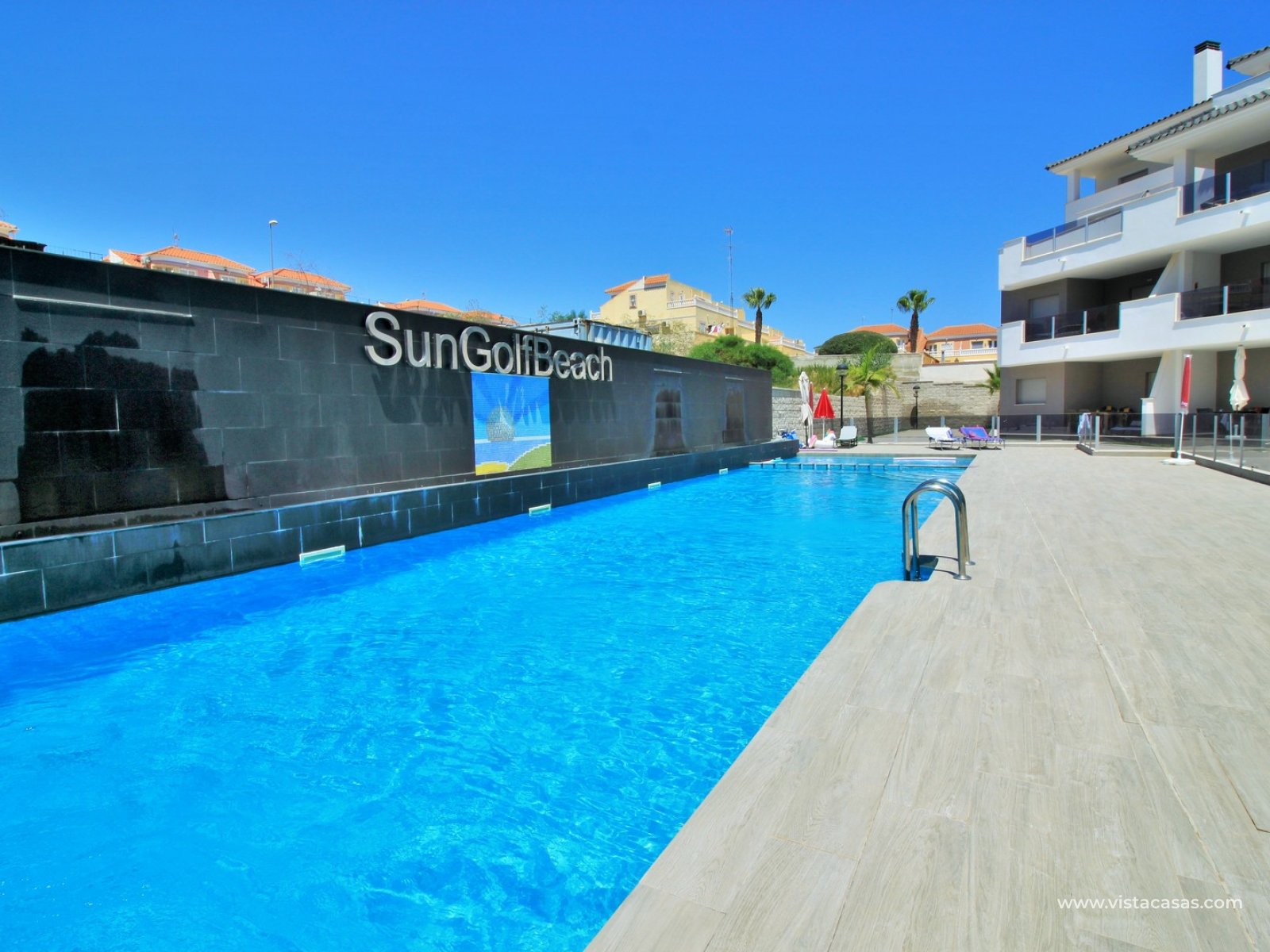 Immaculately presented two-bedroom apartment located on the second floor with lift access, located within the recently built Sungolf Beach complex in Villamartin, Orihuela Costa. Set within a secure gated community, residents have access to well-maintained communal facilities including a swimming pool, jacuzzi, and petanca court. The apartment is in excellent condition and is offered fully furnished to a high standard. It features ducted air-conditioning throughout and includes an underground parking space. Ideal as a holiday home or a buy-to-let investment with strong rental potential.