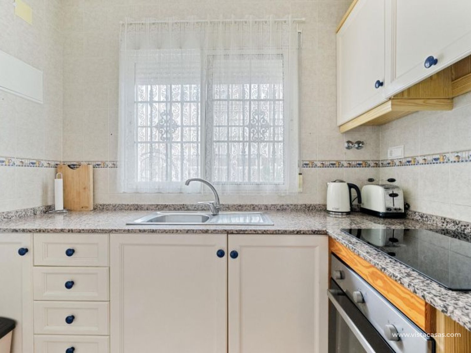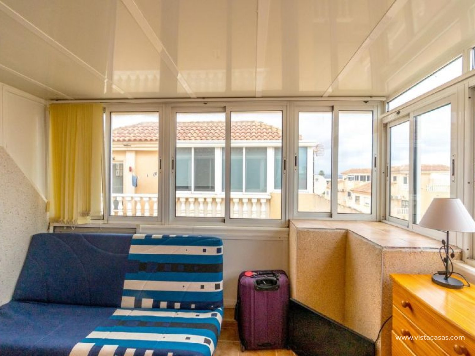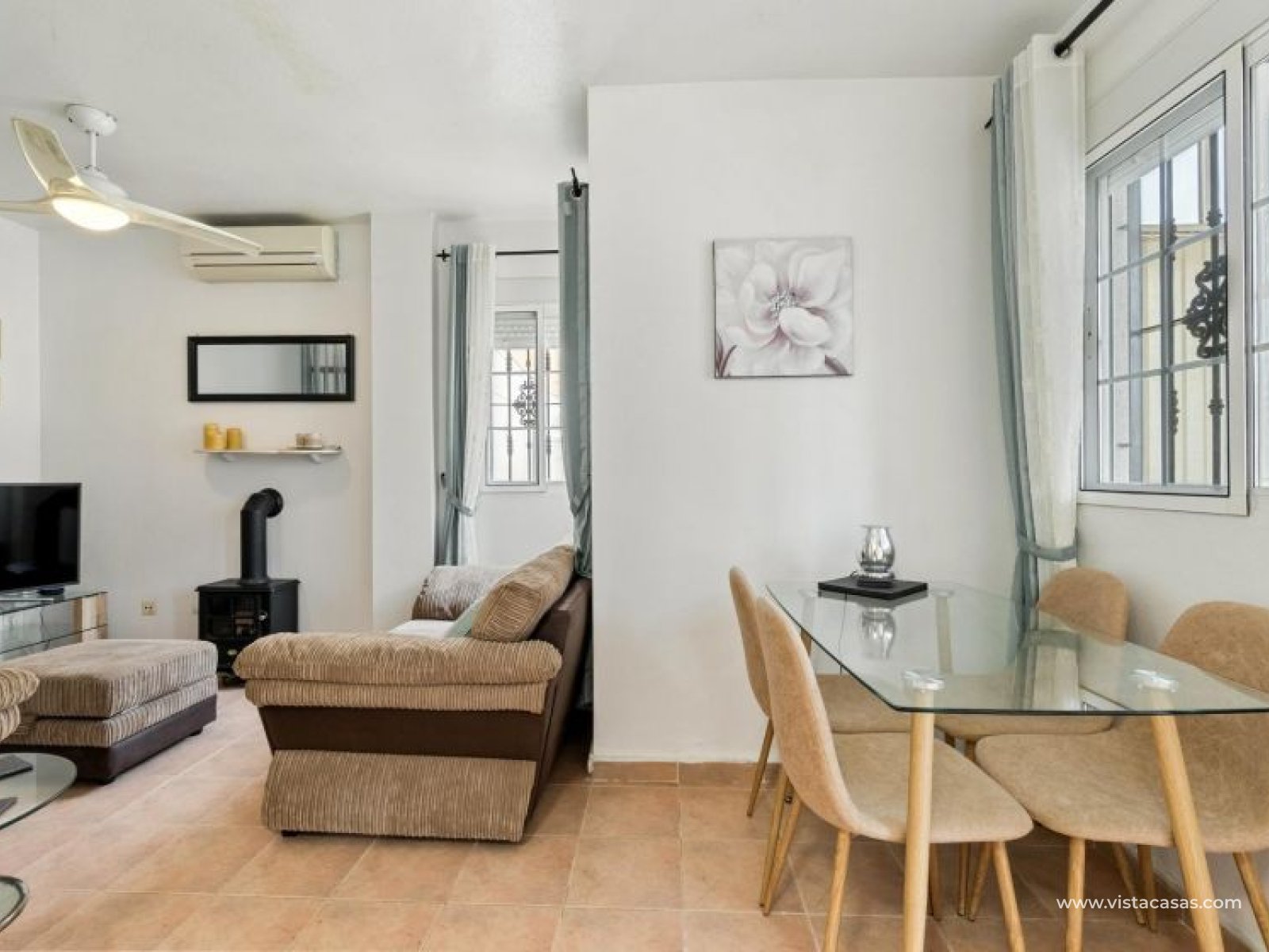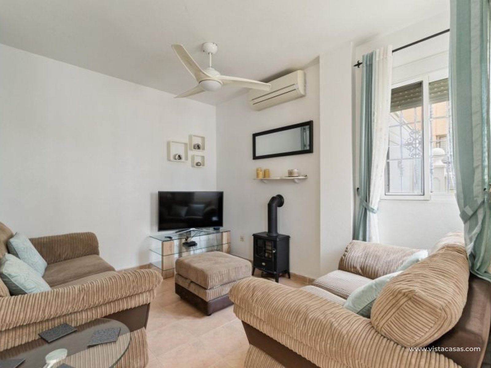 Your new home on the Costa Blanca is waiting for you! Imagine living under the Mediterranean sun in a bright, comfortable home, ready to move in from day one. This beautiful quad-style townhouse in Residencial El Coral II, Torrevieja, has everything you need: space, location, and an ideal setting for year-round living, holidays, or a solid investment. The property is distributed over two floors plus a private roof terrace. At the entrance, you’ll find a spacious tiled garden, perfect for relaxing or entertaining outdoors. There’s also off-street parking on the plot and a practical storage room. The ground floor features a bright glazed terrace – where you can enjoy sunny breakfasts – a light-filled living-dining room, a fully equipped independent kitchen, a closed utility room, and a guest toilet. On the first floor, there are two bedrooms, one with a private terrace, and a renovated bathroom with a walk-in shower. The roof terrace has been enclosed and converted into a third bedroom or multipurpose room. A marble staircase adds a touch of elegance. The home is sold furnished and ready to move into. The community offers a communal pool and is located in a peaceful yet well-connected area: supermarkets, schools, pharmacy, restaurants, sport zones, cinemas, and the beautiful La Siesta park nearby. And best of all: only 2.5 km from the beaches, 600 meters from the Pink Lake, and 40 km from Alicante airport. Don’t miss this opportunity – come and visit with no obligation. Call or message us today to schedule your viewing. Your new home in Torrevieja is waiting!