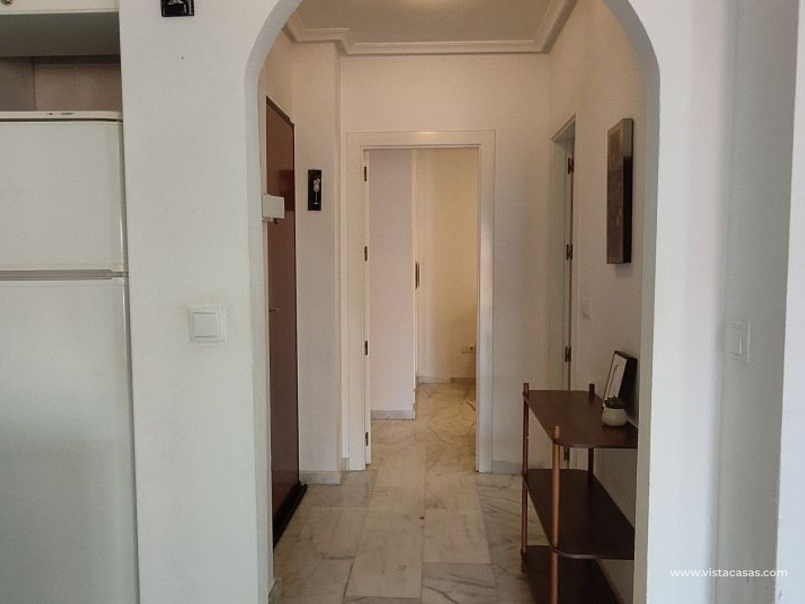 The layout is ideal for comfort and privacy: The main bedroom boasts its own en-suite bathroom, while the second bedroom is located right next to the main family bathroom – perfect for guests or family living. The property is finished to a high standard with marble flooring, built-in wardrobes, and plenty of natural light throughout. Outside, residents can enjoy a beautiful communal pool set in lush green gardens, perfect for soaking up the Costa Blanca sunshine. There’s also gated parking and lift access in the building for your convenience. Whether you're looking for a holiday getaway, a full-time home, or a great rental investment, this apartment ticks all the boxes. - Top location – walk to shops, bars, restaurant - Excellent layout with en-suite + separate main bathroom - Gated community with pool and parking - Move-in ready and full of charm Don’t miss this chance to own a slice of the good life in Villamartin!