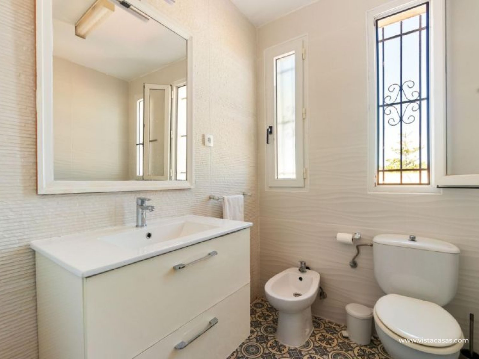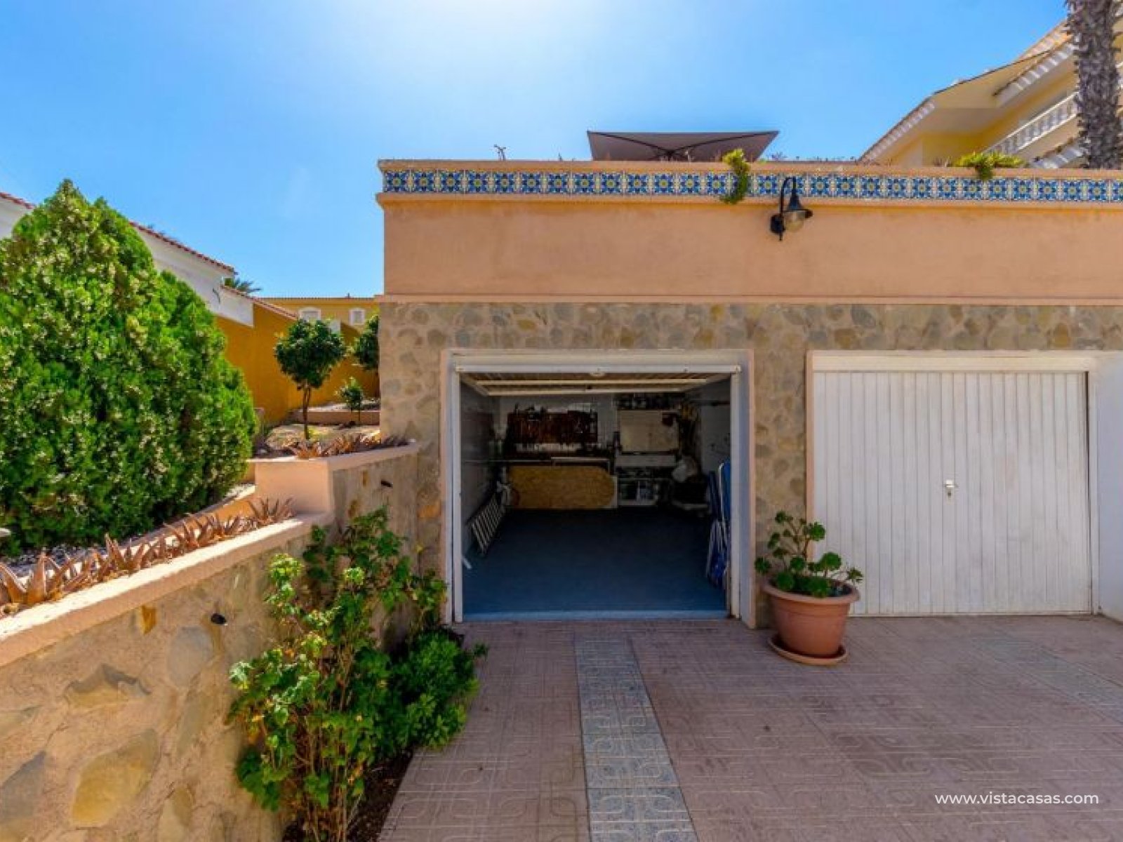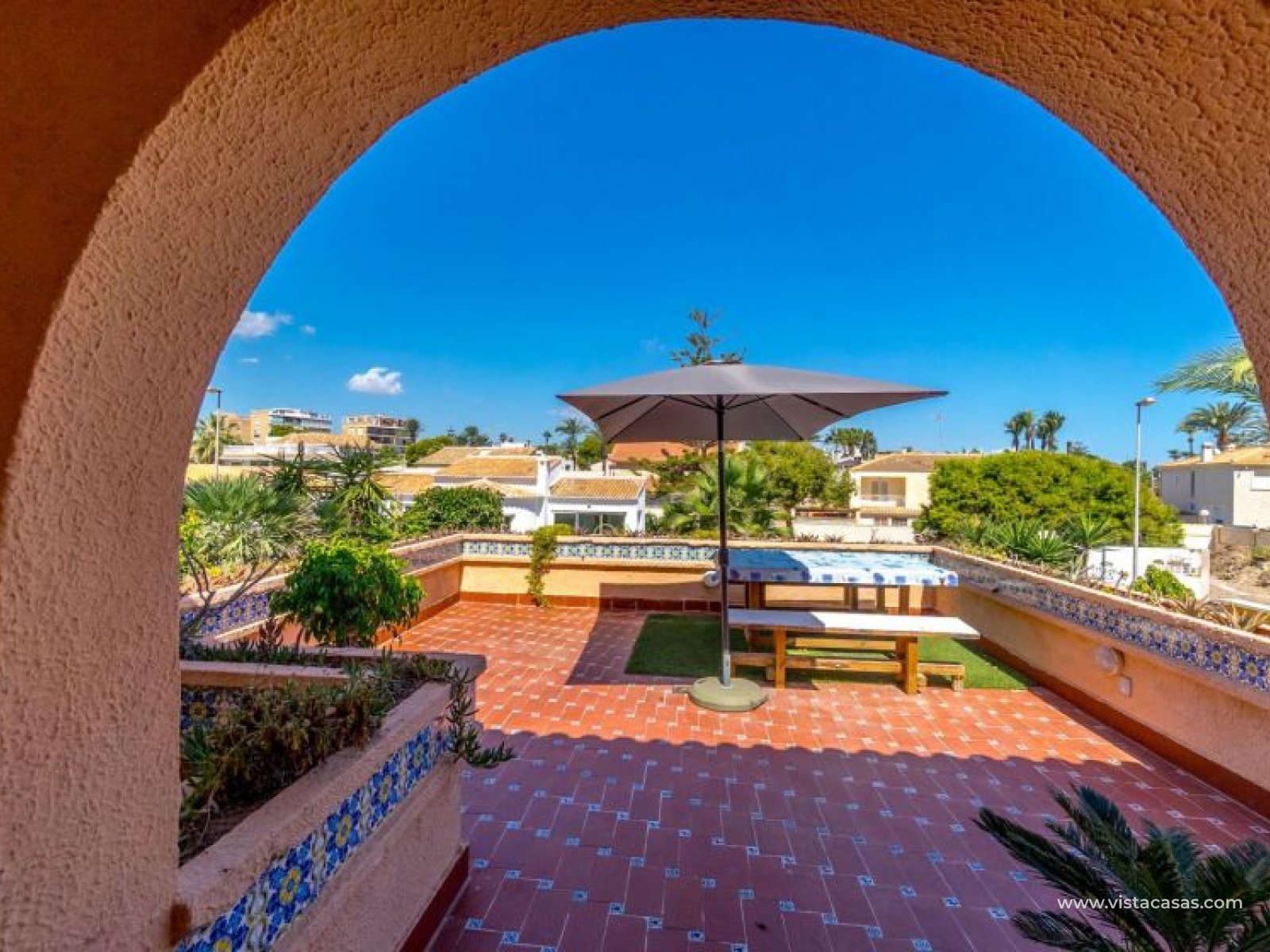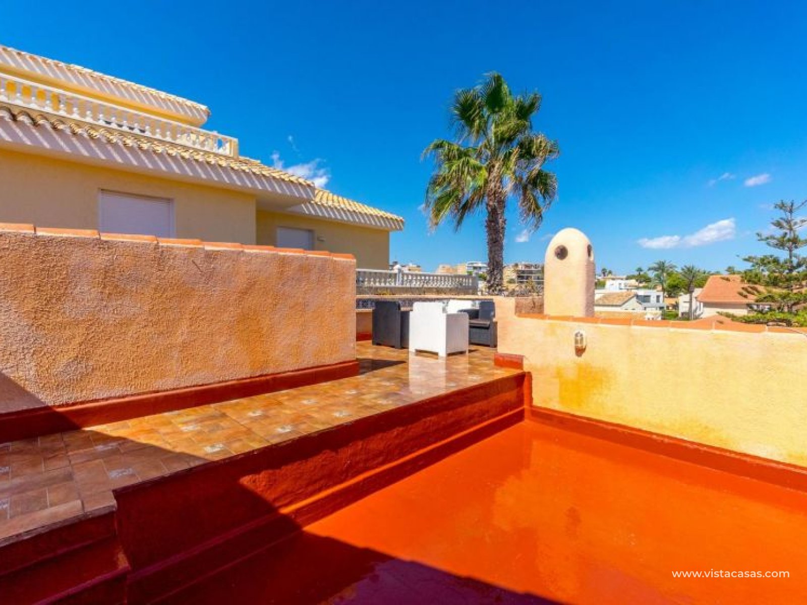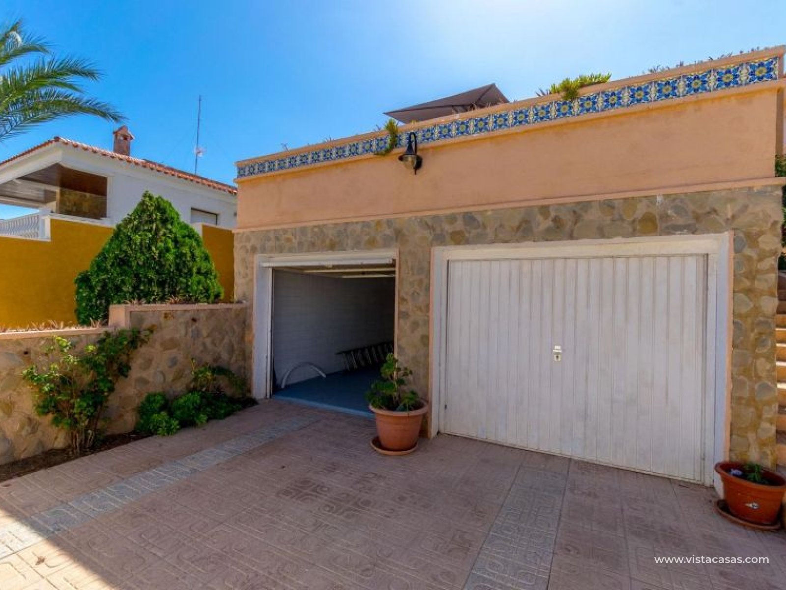 Spectacular detached villa by La Zenia Beach Can you imagine living with your feet almost in the sand? This stunning home makes it possible. Located in La Zenia (Orihuela Costa), one of the most exclusive areas of the Mediterranean Coast, you will enjoy sunshine all year round, the sea just a few steps away, and a lively environment with shops, restaurants, leisure options, and the famous La Zenia Boulevard shopping centre. The property offers a 600 m² private plot and a 220 m² house distributed over three staggered floors adapted to the terrain. Layout of the property: Ground floor: large terrace with direct sea views, covered porch, living room with fireplace, separate dining room, fully equipped kitchen with office area, laundry room and guest bathroom. Perfect for family gatherings or entertaining friends. First floor: 3 bedrooms, the master with walk-in wardrobe, en-suite bathroom and private terrace. Plus another full bathroom and a spectacular solarium-terrace to enjoy the sun and sea views all year round. Street level: closed garage with direct access. Outdoors: private garden, swimming pool, barbecue area and several spaces to relax under the Mediterranean sun. This villa is ideal as a permanent residence thanks to its size and comfort, or as a dream holiday home by the sea. La Zenia is one of the most sought-after areas of the Costa Blanca, famous for its sandy beaches, crystal-clear waters, wide range of restaurants, services, sports areas and its excellent connections to Alicante and Murcia. Don’t miss the chance to live by the sea. Book your visit today and discover your new home in La Zenia.