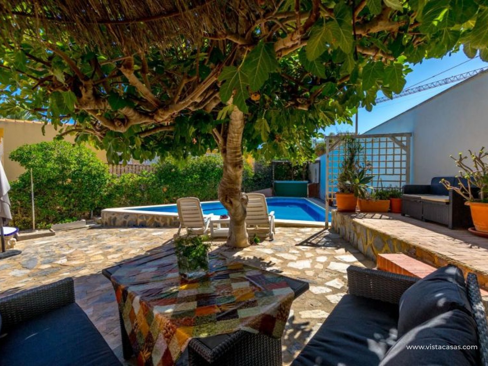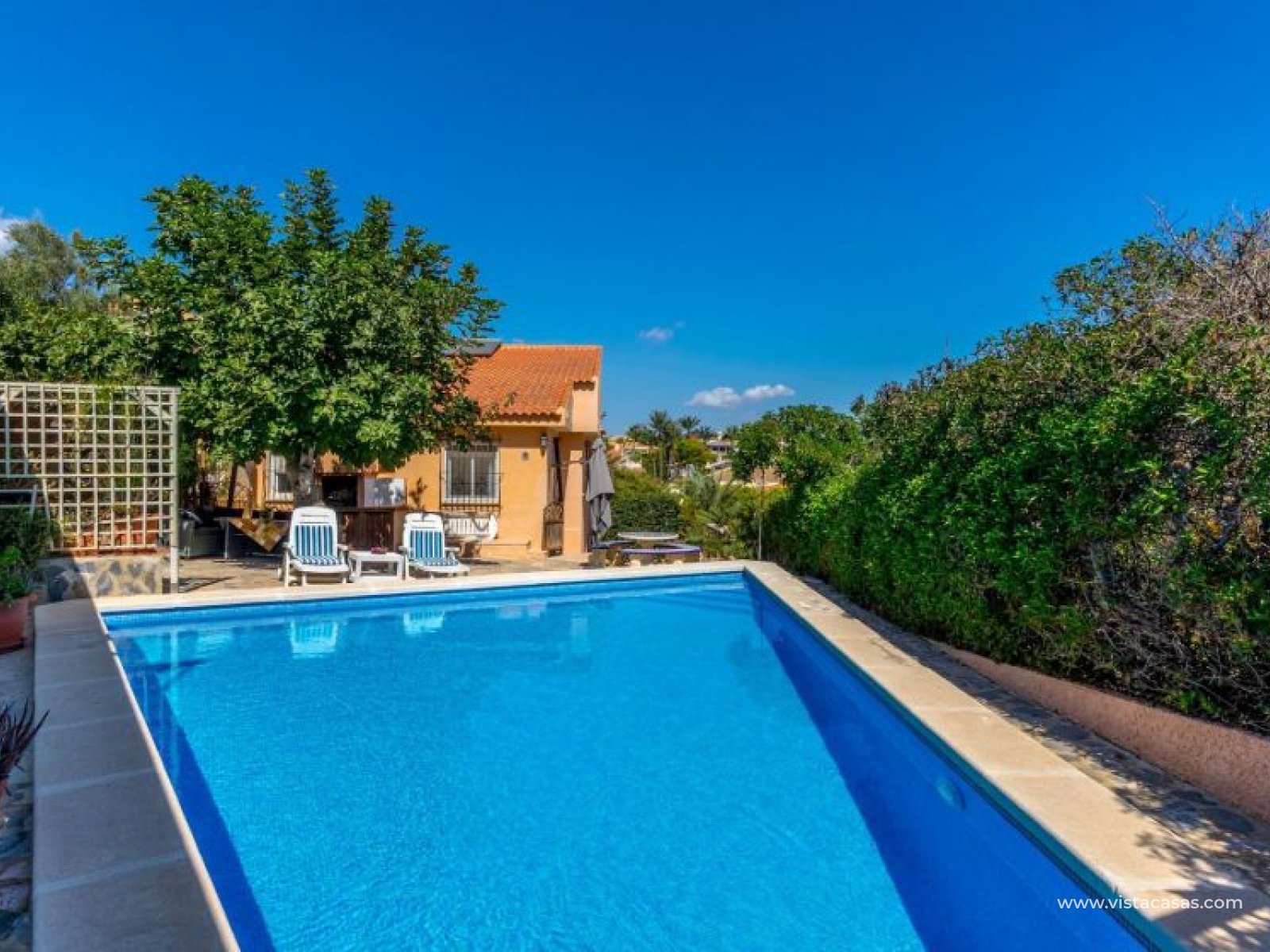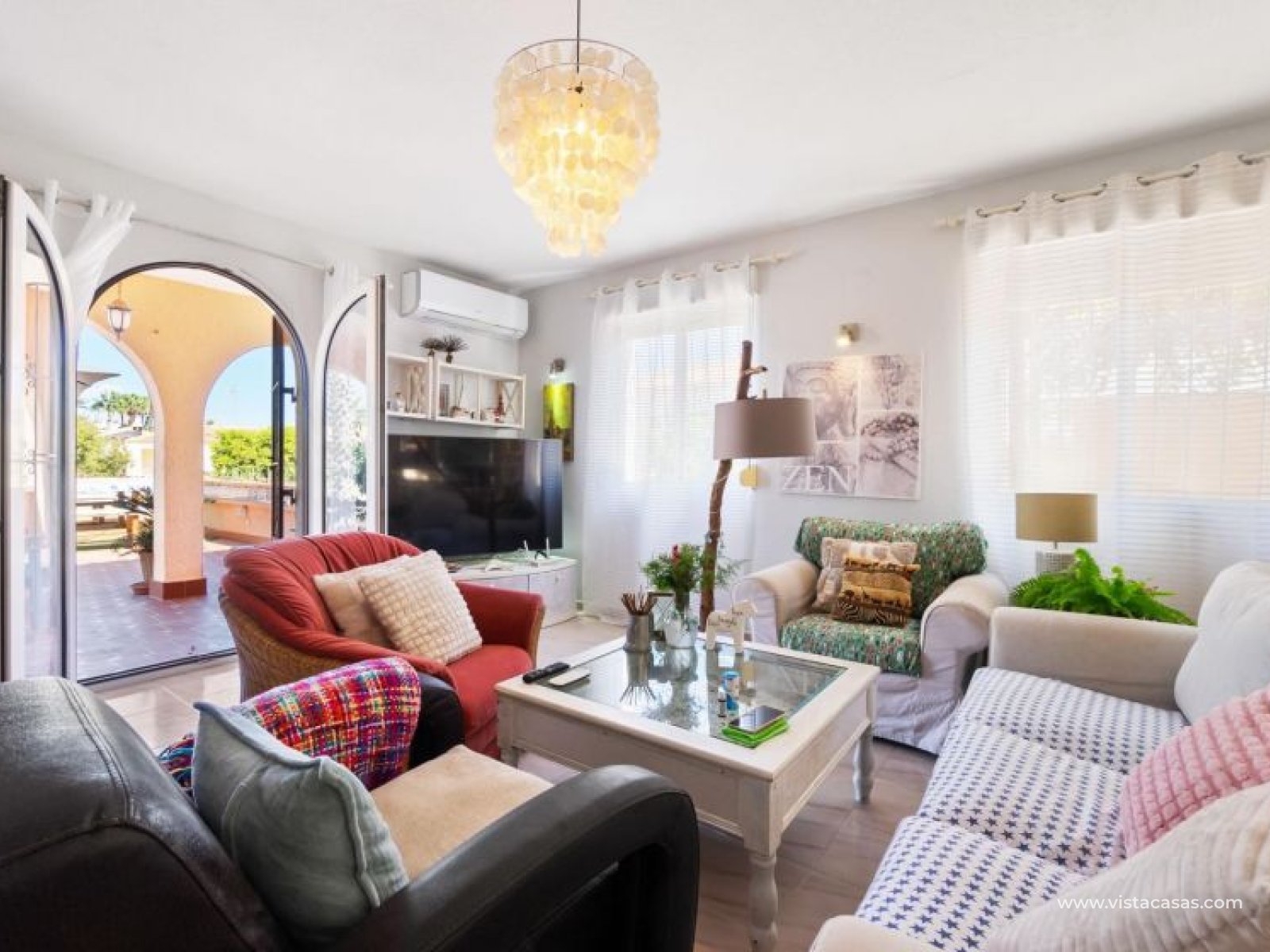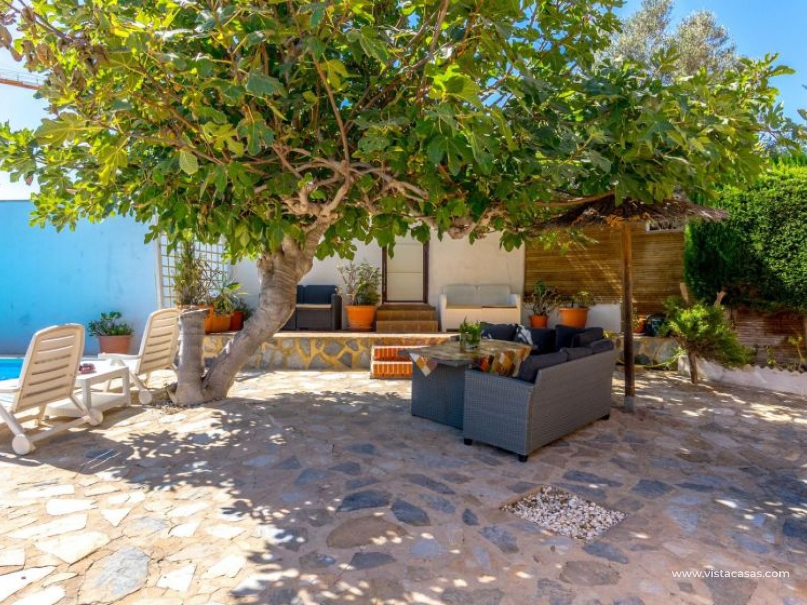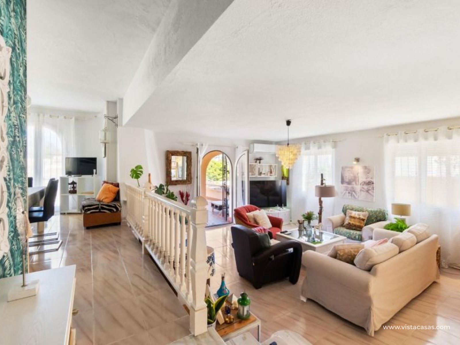 Spectacular detached villa by La Zenia Beach Can you imagine living with your feet almost in the sand? This stunning home makes it possible. Located in La Zenia (Orihuela Costa), one of the most exclusive areas of the Mediterranean Coast, you will enjoy sunshine all year round, the sea just a few steps away, and a lively environment with shops, restaurants, leisure options, and the famous La Zenia Boulevard shopping centre. The property offers a 600 m² private plot and a 220 m² house distributed over three staggered floors adapted to the terrain. Layout of the property: Ground floor: large terrace with direct sea views, covered porch, living room with fireplace, separate dining room, fully equipped kitchen with office area, laundry room and guest bathroom. Perfect for family gatherings or entertaining friends. First floor: 3 bedrooms, the master with walk-in wardrobe, en-suite bathroom and private terrace. Plus another full bathroom and a spectacular solarium-terrace to enjoy the sun and sea views all year round. Street level: closed garage with direct access. Outdoors: private garden, swimming pool, barbecue area and several spaces to relax under the Mediterranean sun. This villa is ideal as a permanent residence thanks to its size and comfort, or as a dream holiday home by the sea. La Zenia is one of the most sought-after areas of the Costa Blanca, famous for its sandy beaches, crystal-clear waters, wide range of restaurants, services, sports areas and its excellent connections to Alicante and Murcia. Don’t miss the chance to live by the sea. Book your visit today and discover your new home in La Zenia.